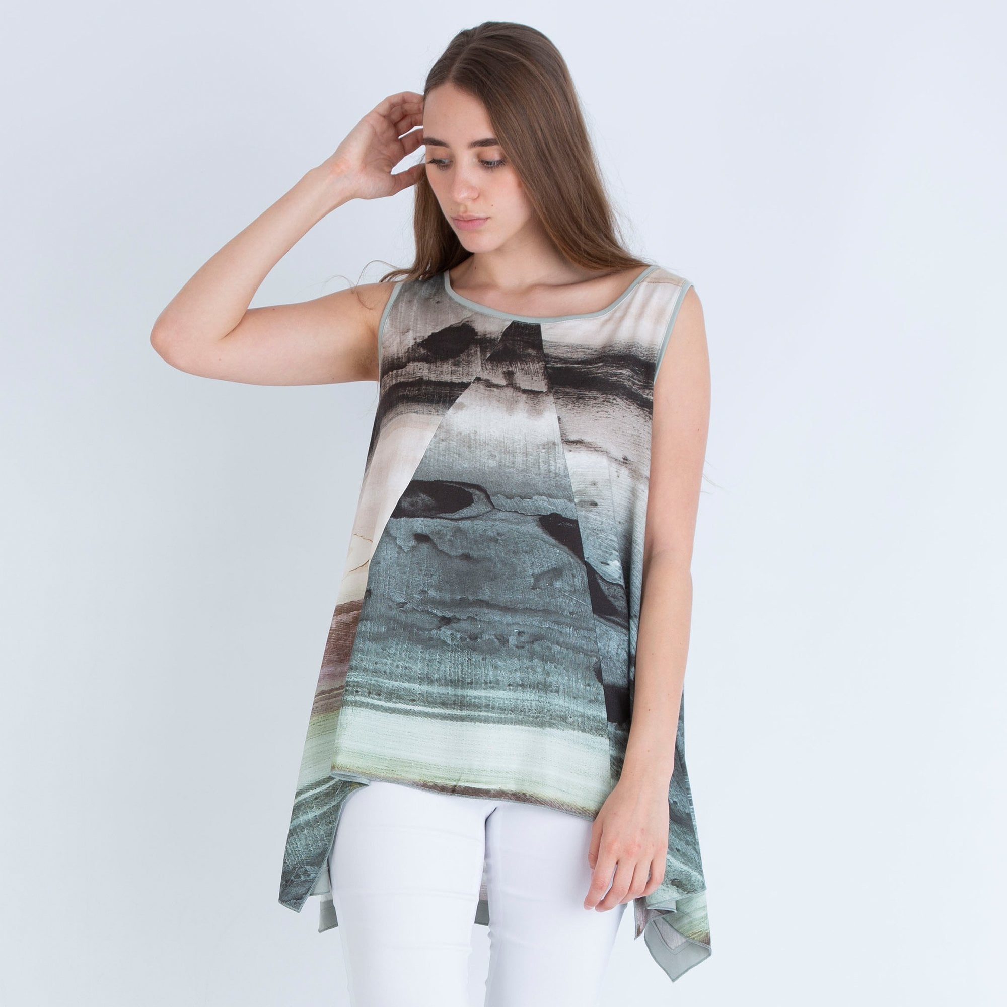 Ozai N Ku Hazard Soft Stripe Sleeveless Dip Side Tunic Multi
