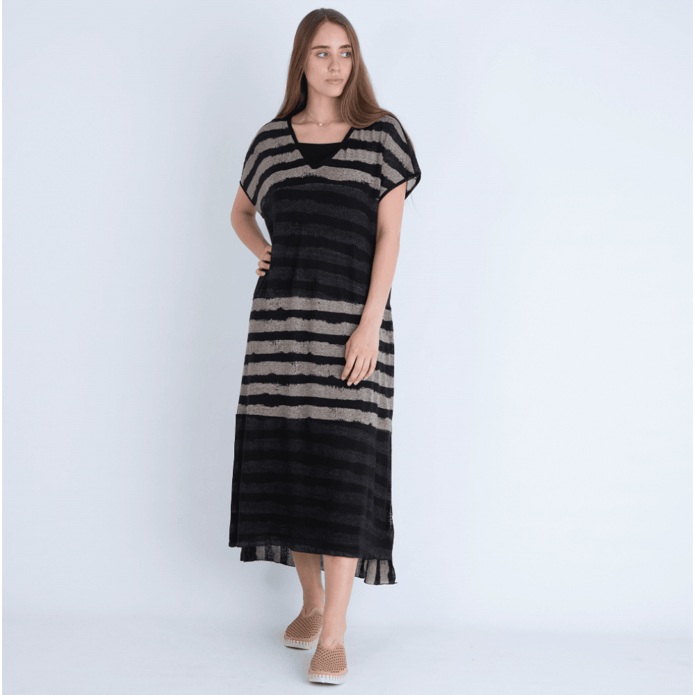 Ozai N Ku House V Neck Stripe Knitted Maxi Dress Beige/black
