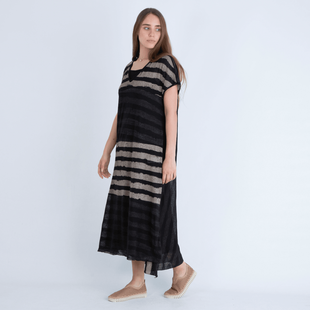 Ozai N Ku Habitat Round Neck Sleeveless Stripe Dress Multi