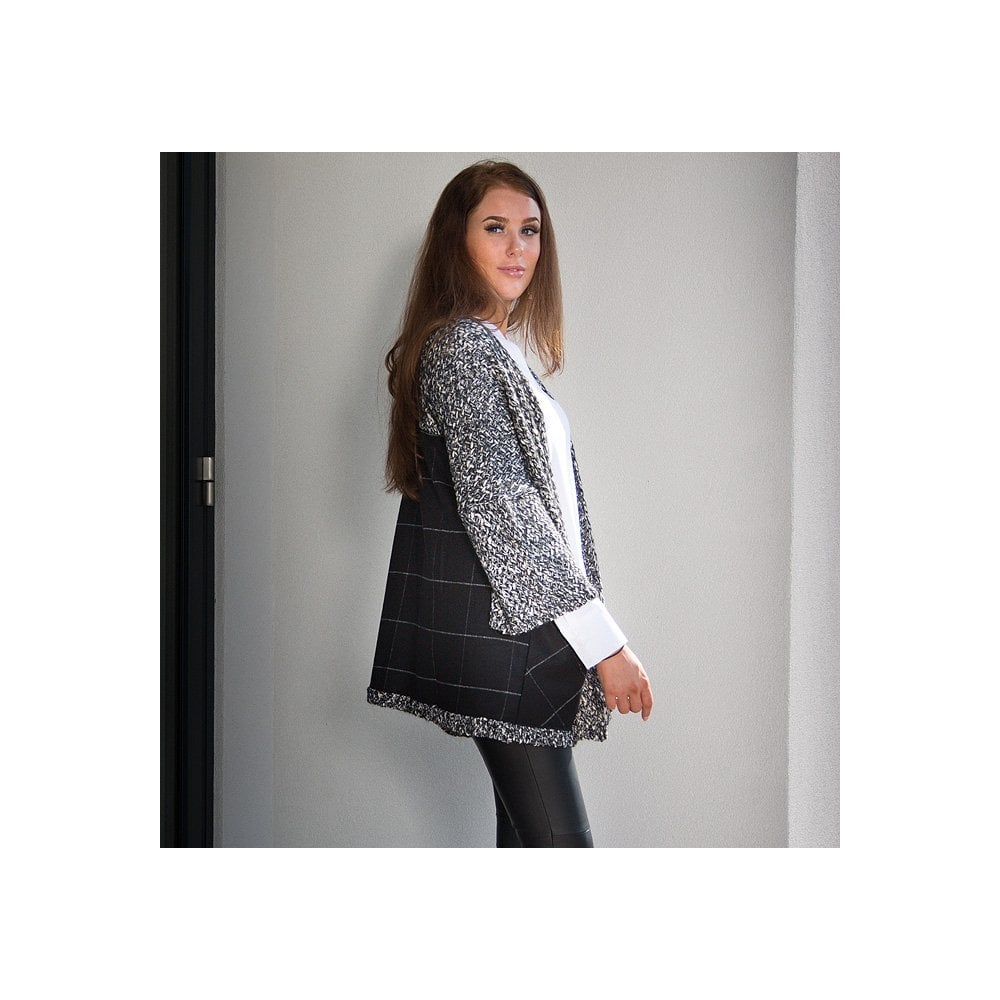 Ozai N Ku Knitted Jacket With Fabric Back Grey/black