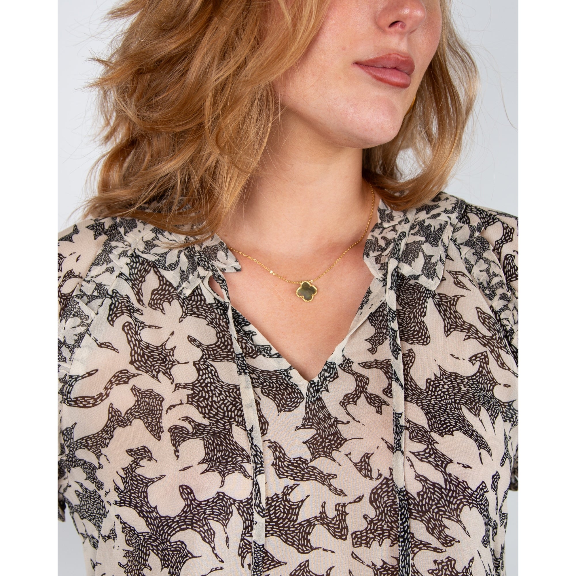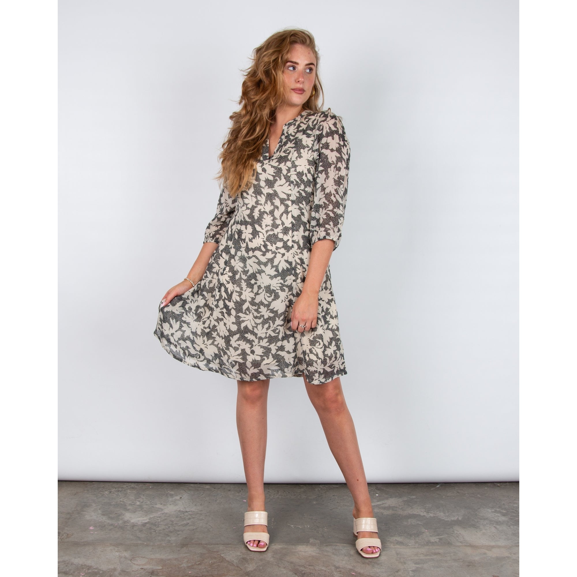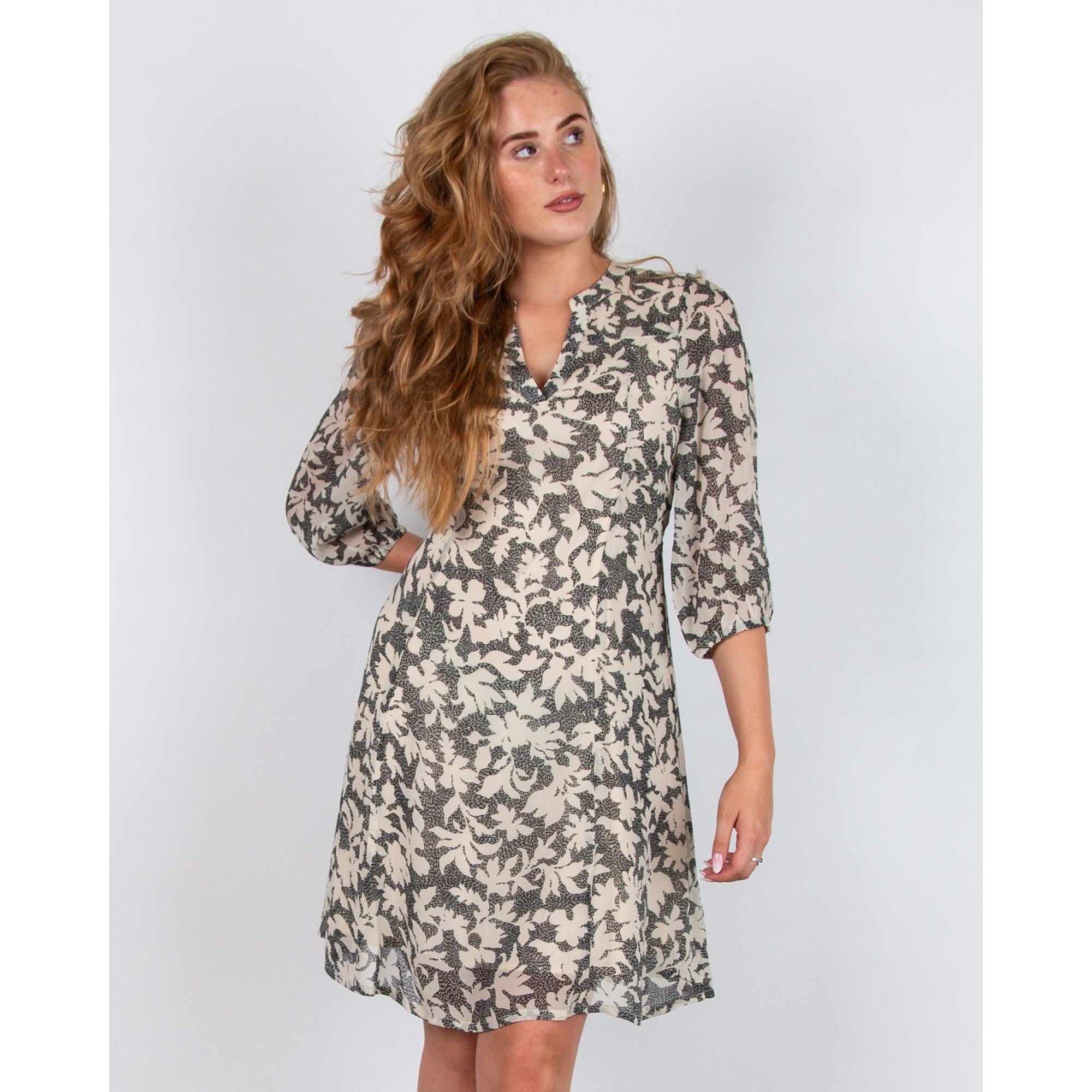 Part Two Botelle Stitch Leaf Print Knee Length Dress Black/ecru
