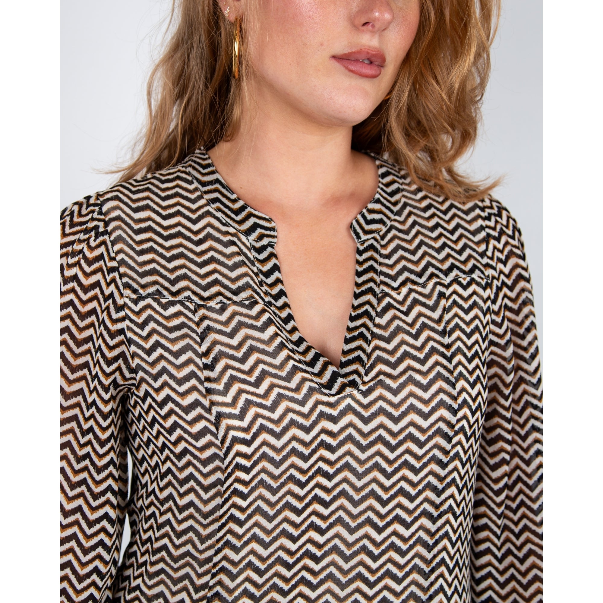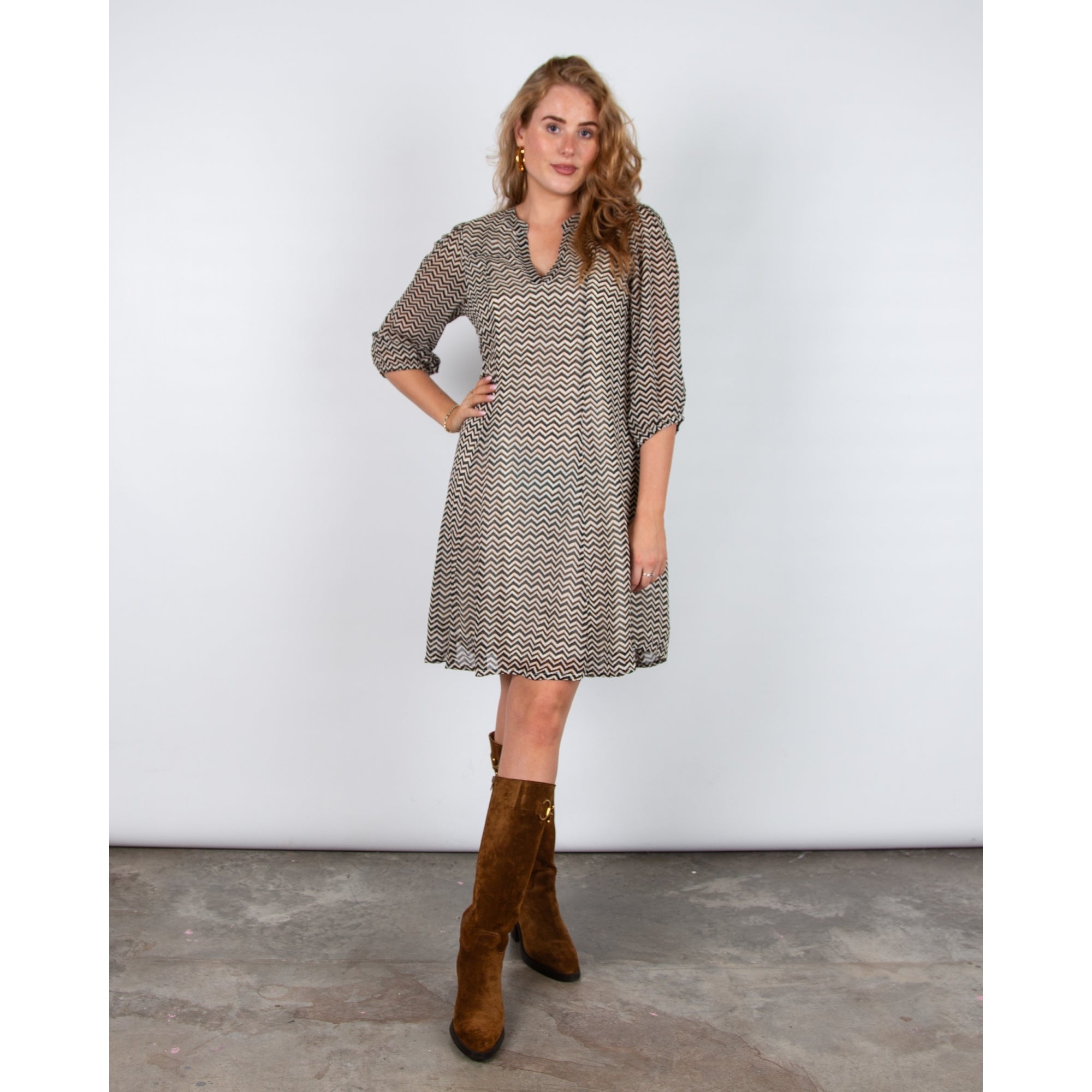 Part Two Botelle Zigzag Print Knee Length Viscose Dress Brown/black