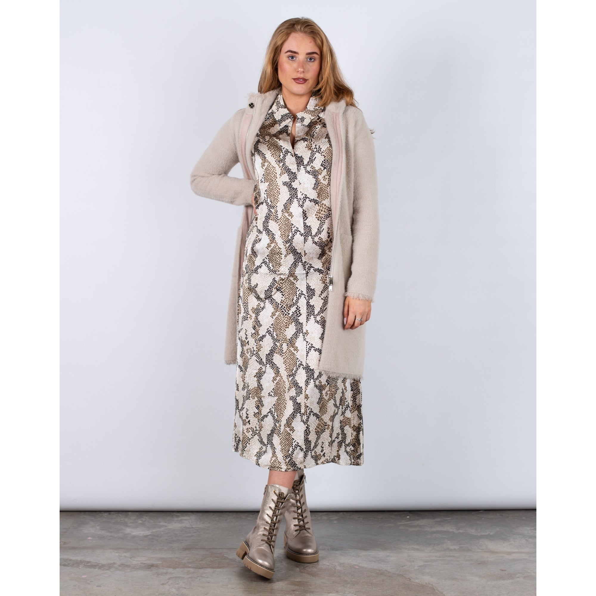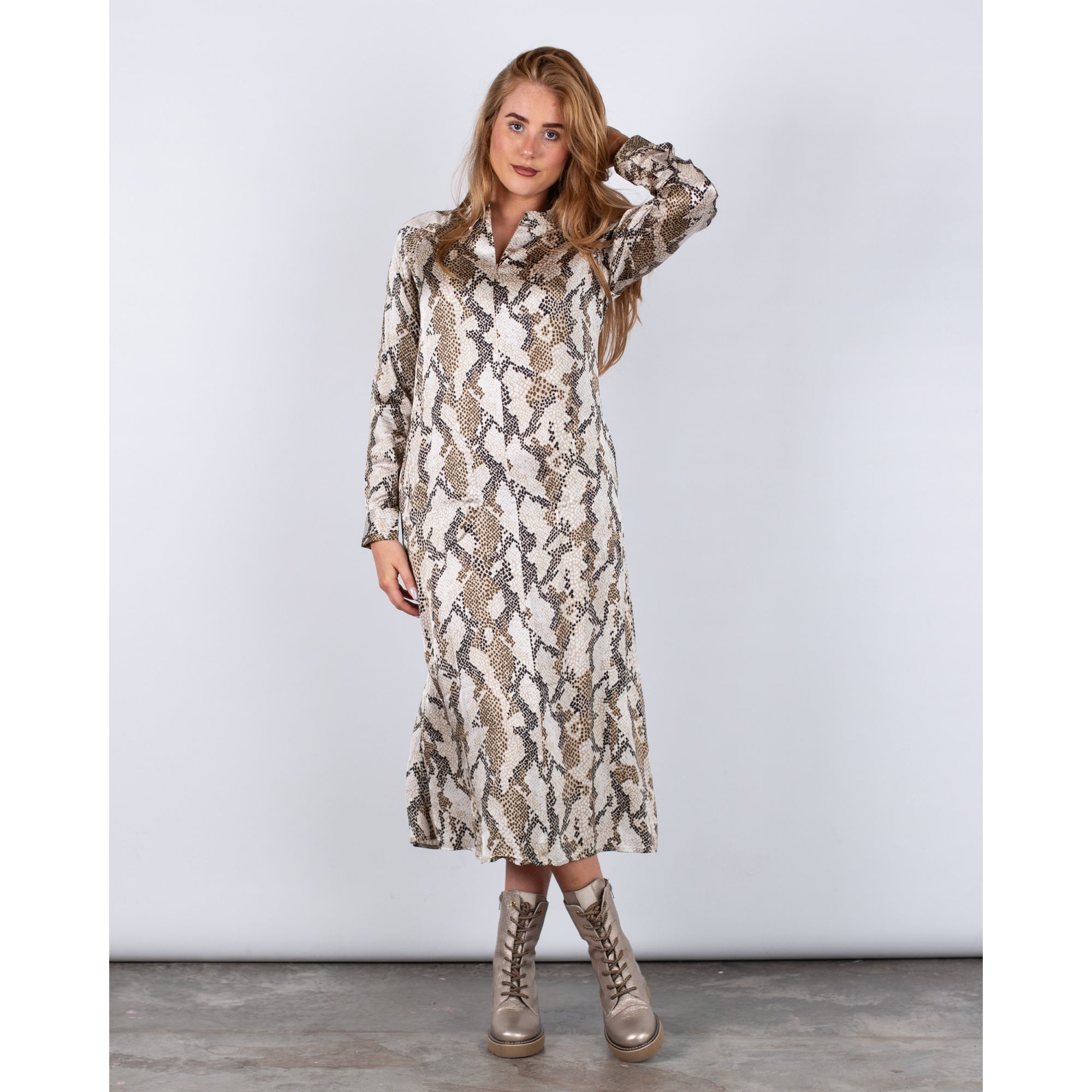 Part Two Lamiya Snake Print Zip Through Shirt Dress Cream/brown