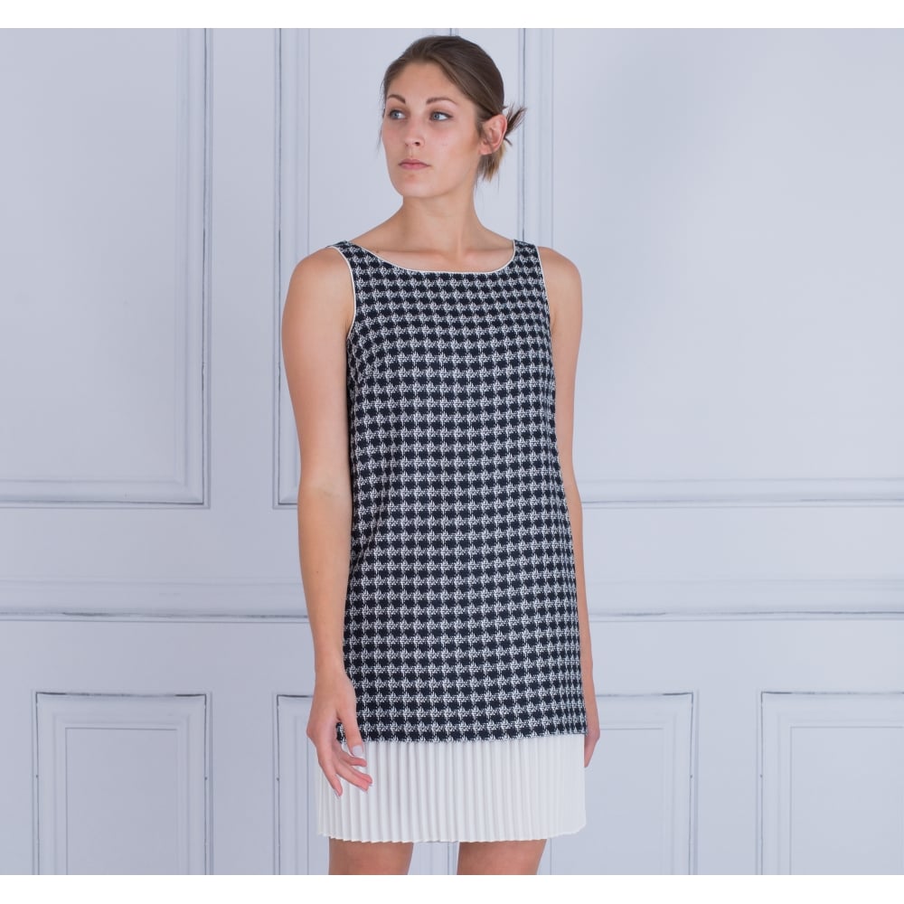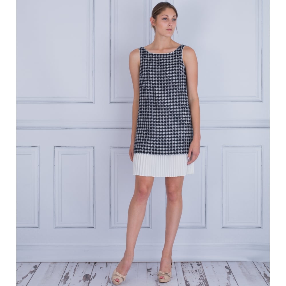 Penny Black Pleat Hem Houndstooth Dress Navy/White