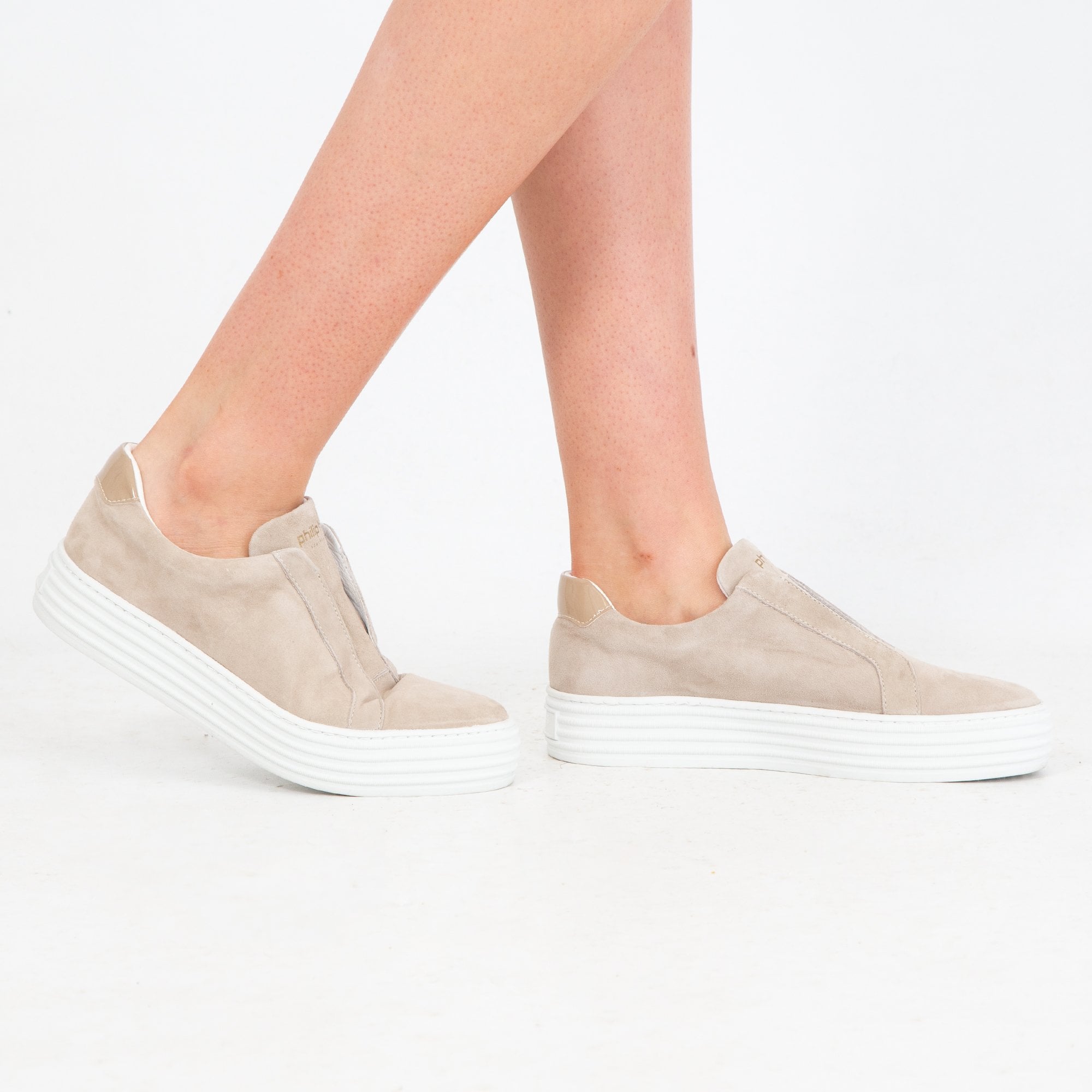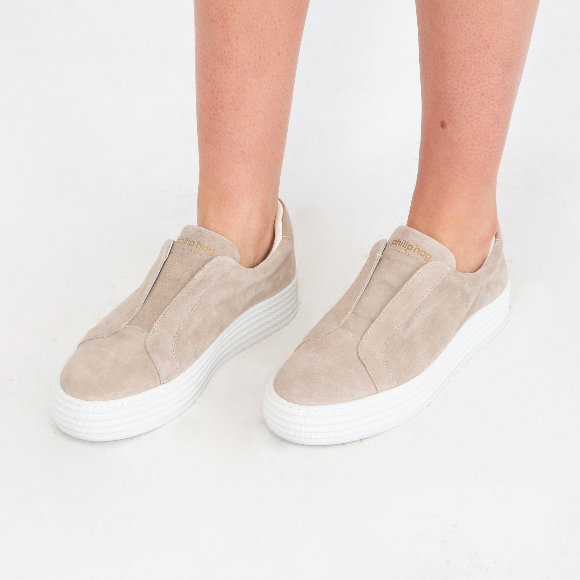 Philip Hog May Pull On Flatform Plain Leather Trainer Mushroom