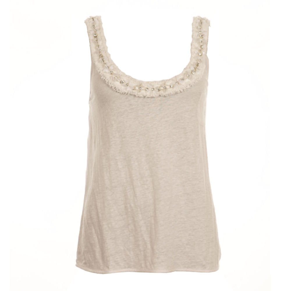 Pinko Spaghetti Strap Ruffle Front Diamonte Vest Cream