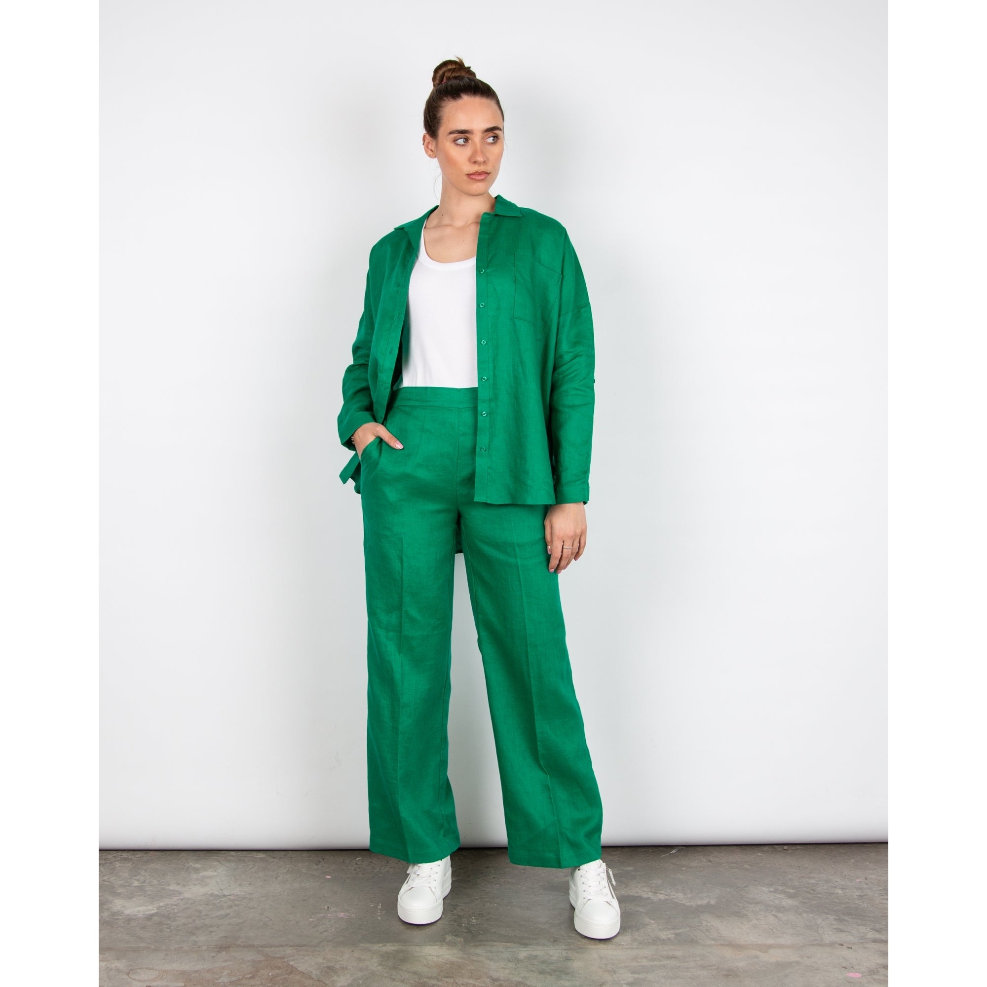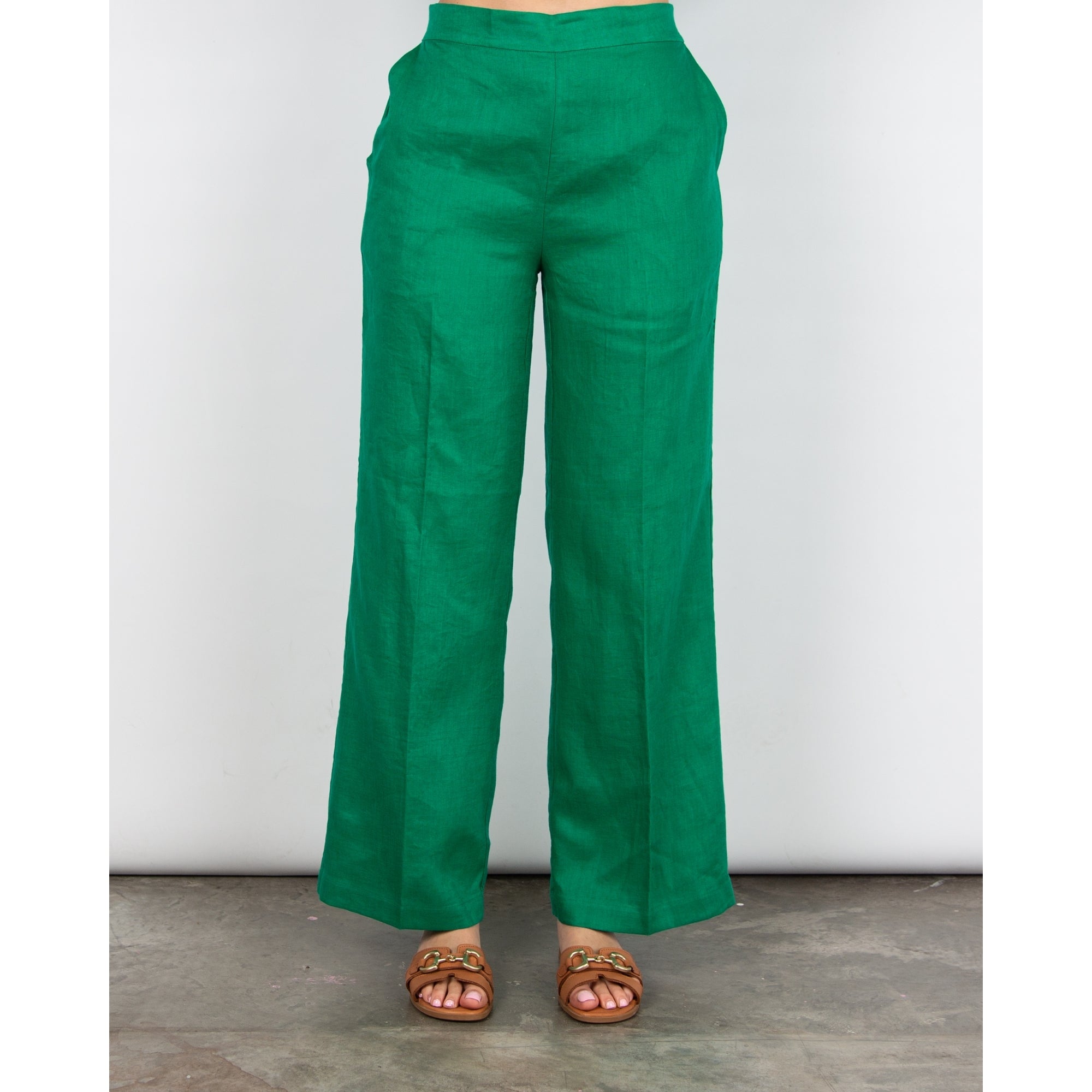 Pomodoro Smart Wide Leg Linen Trouser Green