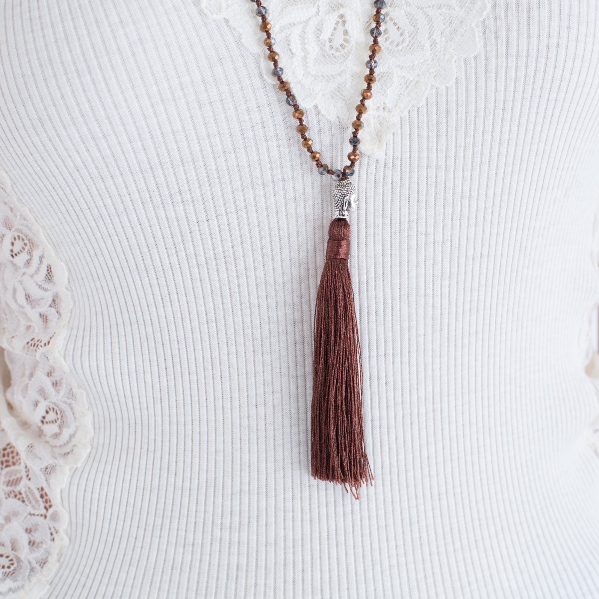 Pranella Buddha Necklace With Tassel Bronze