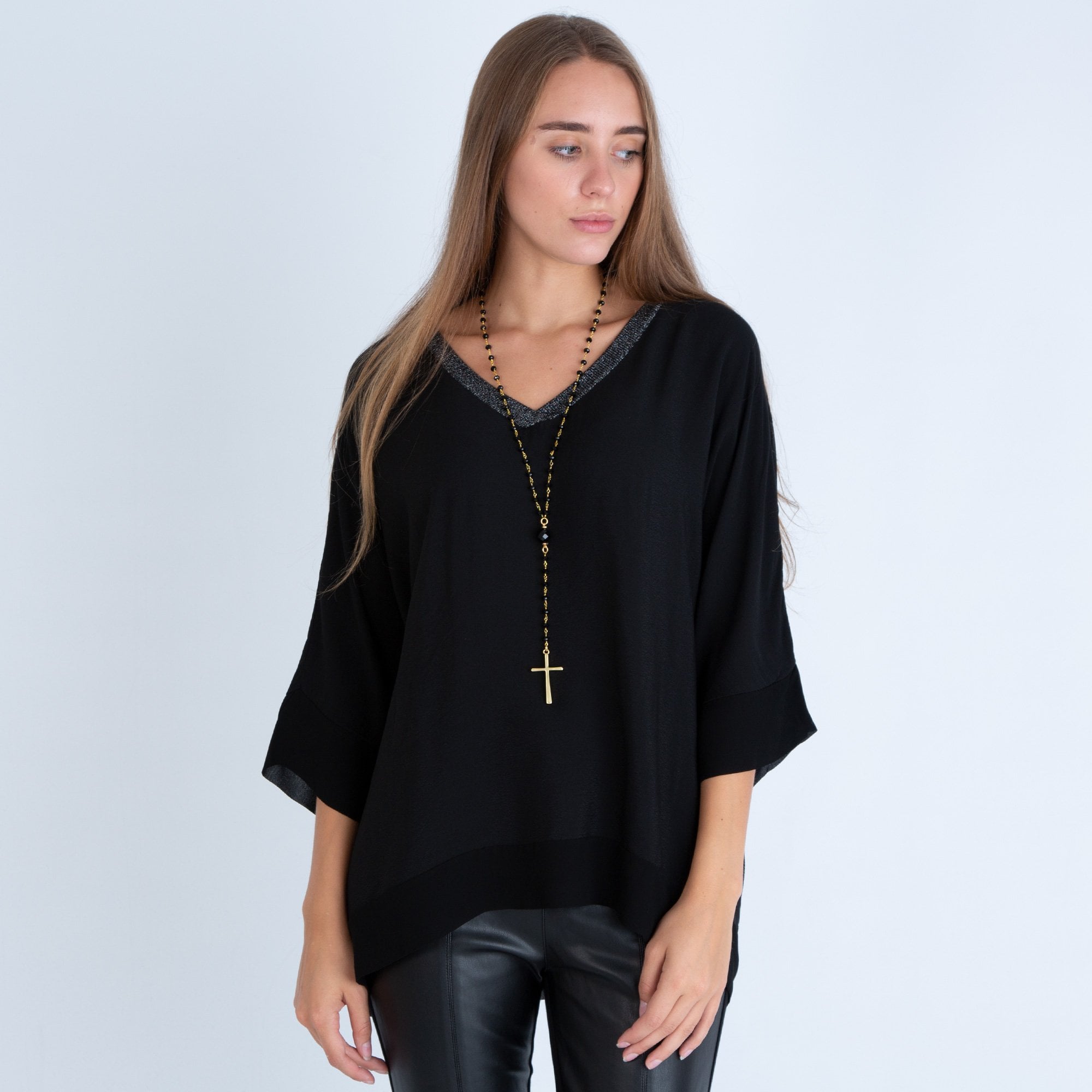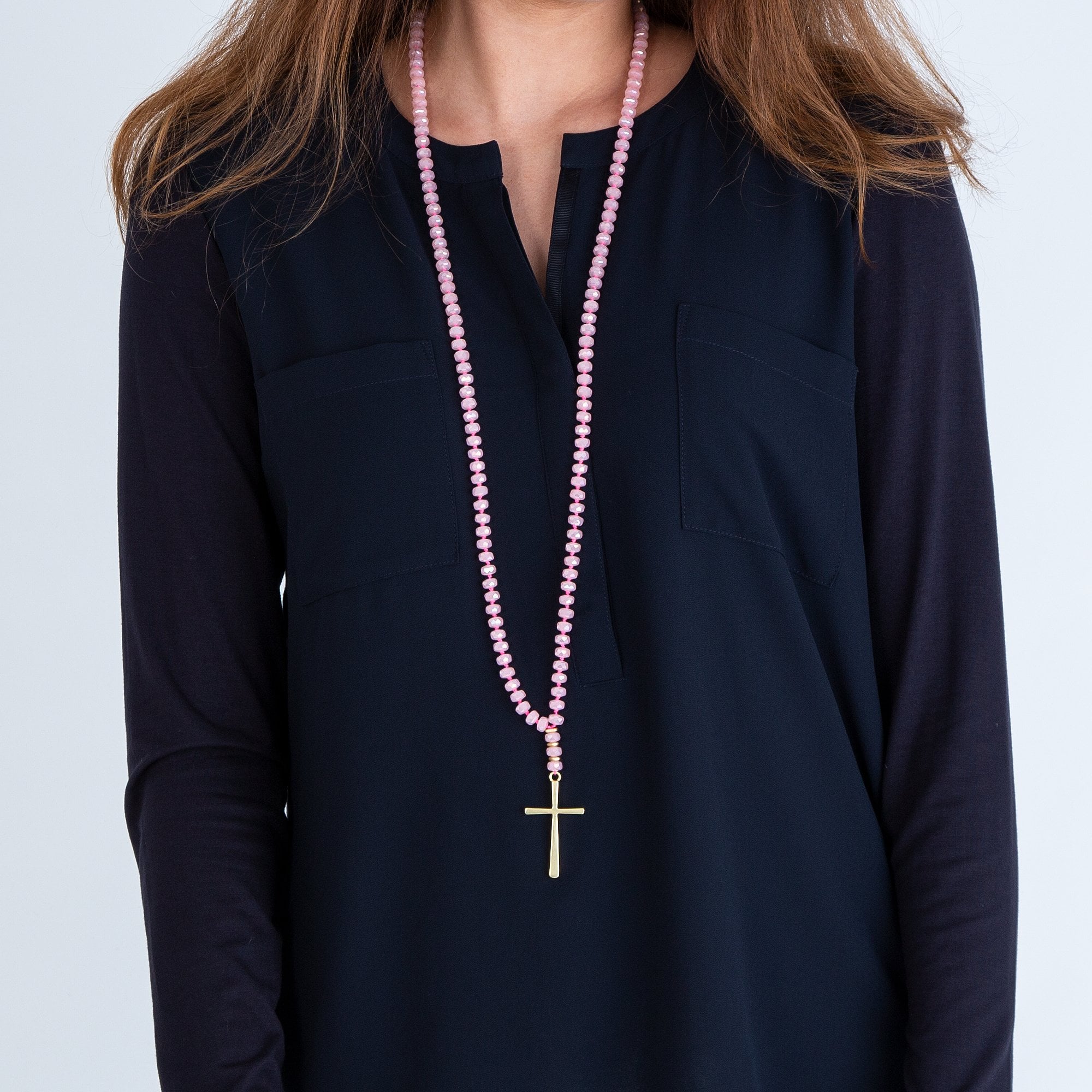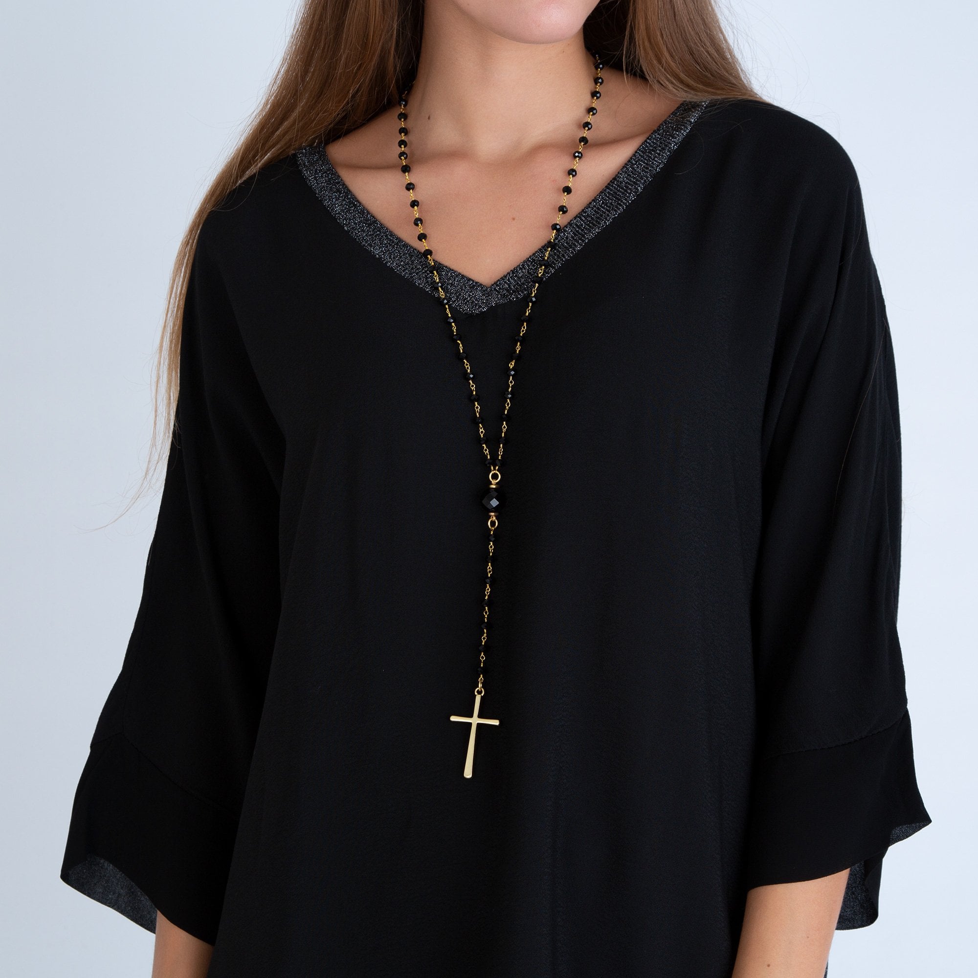 Pranella Eboni Parnu Beaded Cross Pendant Necklace Black & Gold