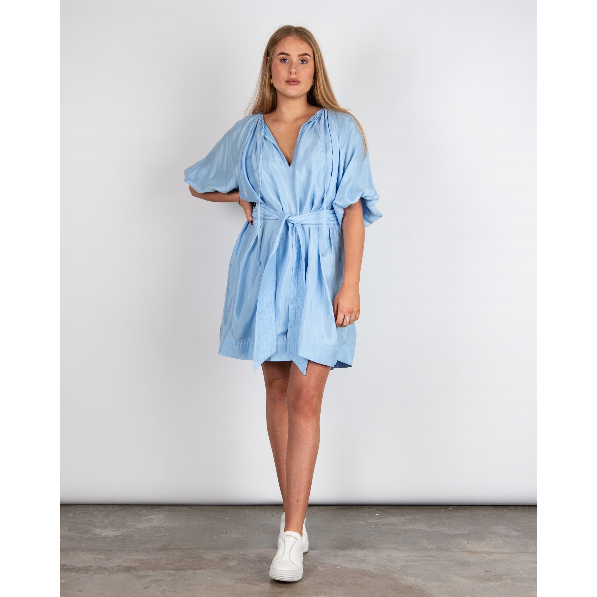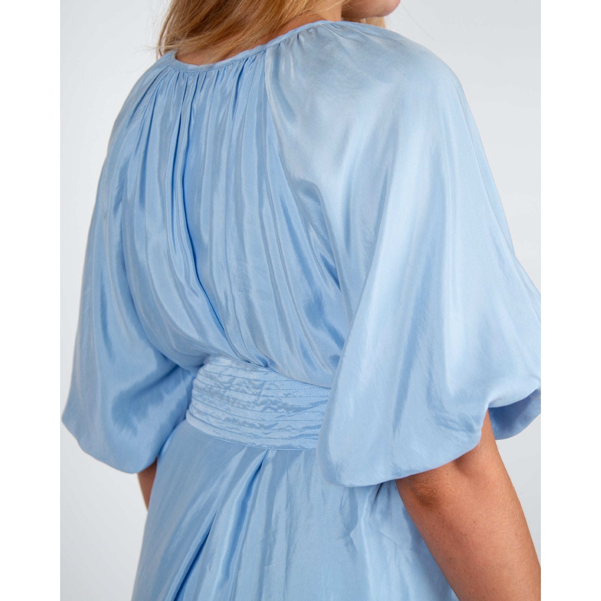 Pranella Arena Cupro Tie Neck Belted Summer Dress Cornflower