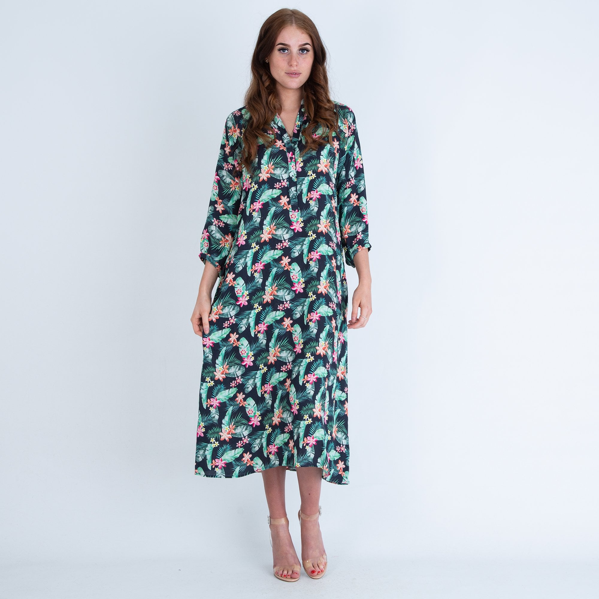 Primrose Park A Line Tropical Print Button Through Dress Black Multi