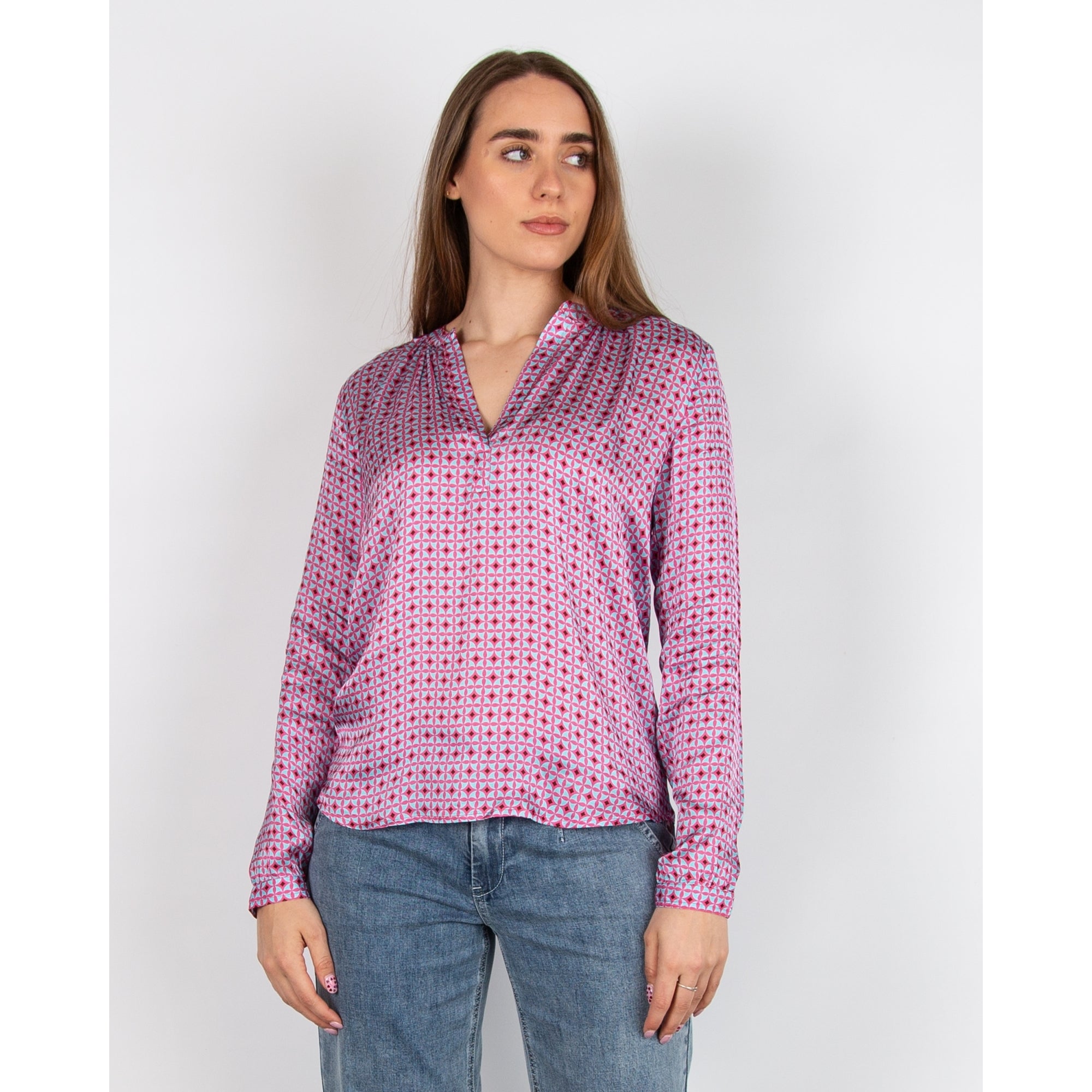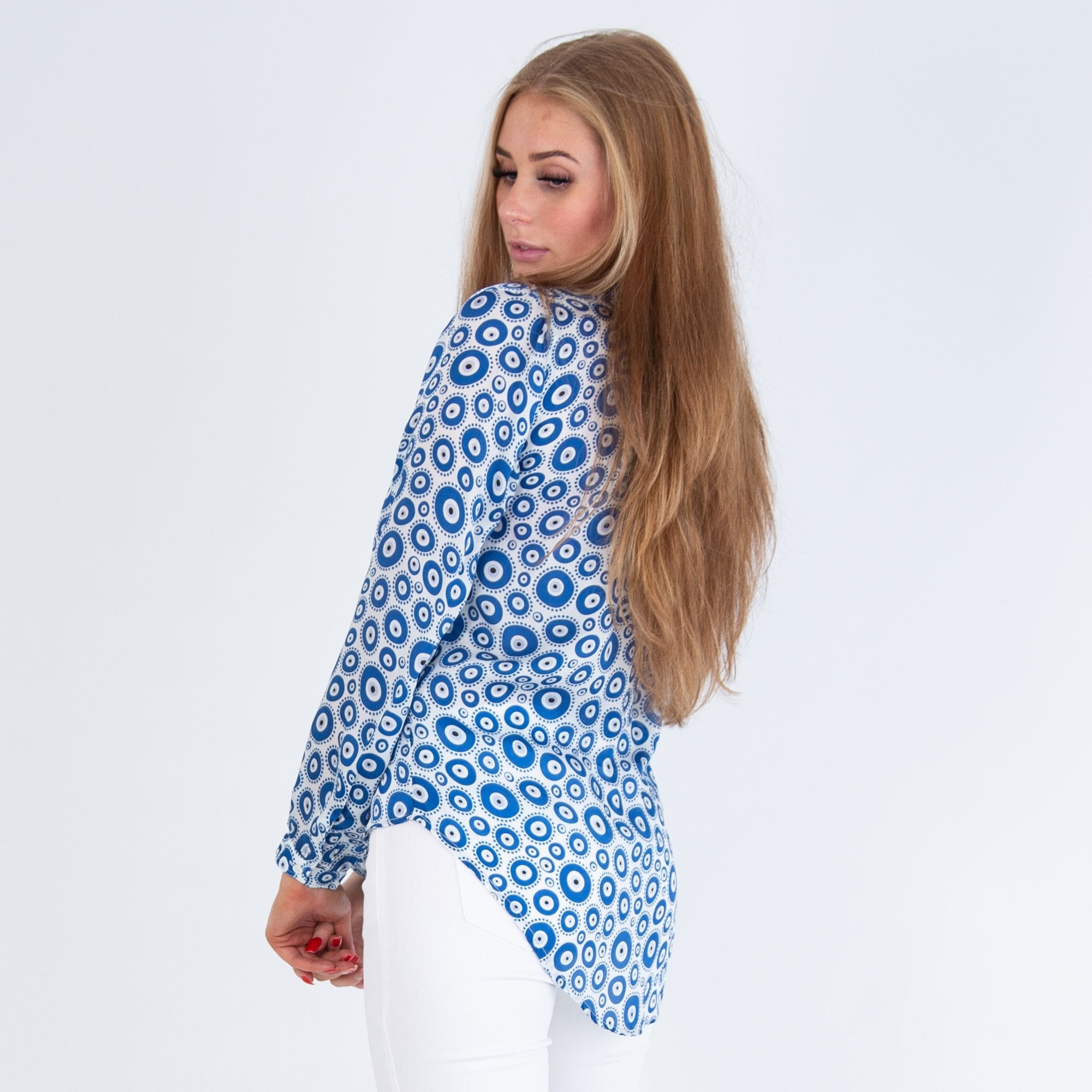 Primrose Park Sandy Evil Eye Print Split Neck Blouse Blue/white