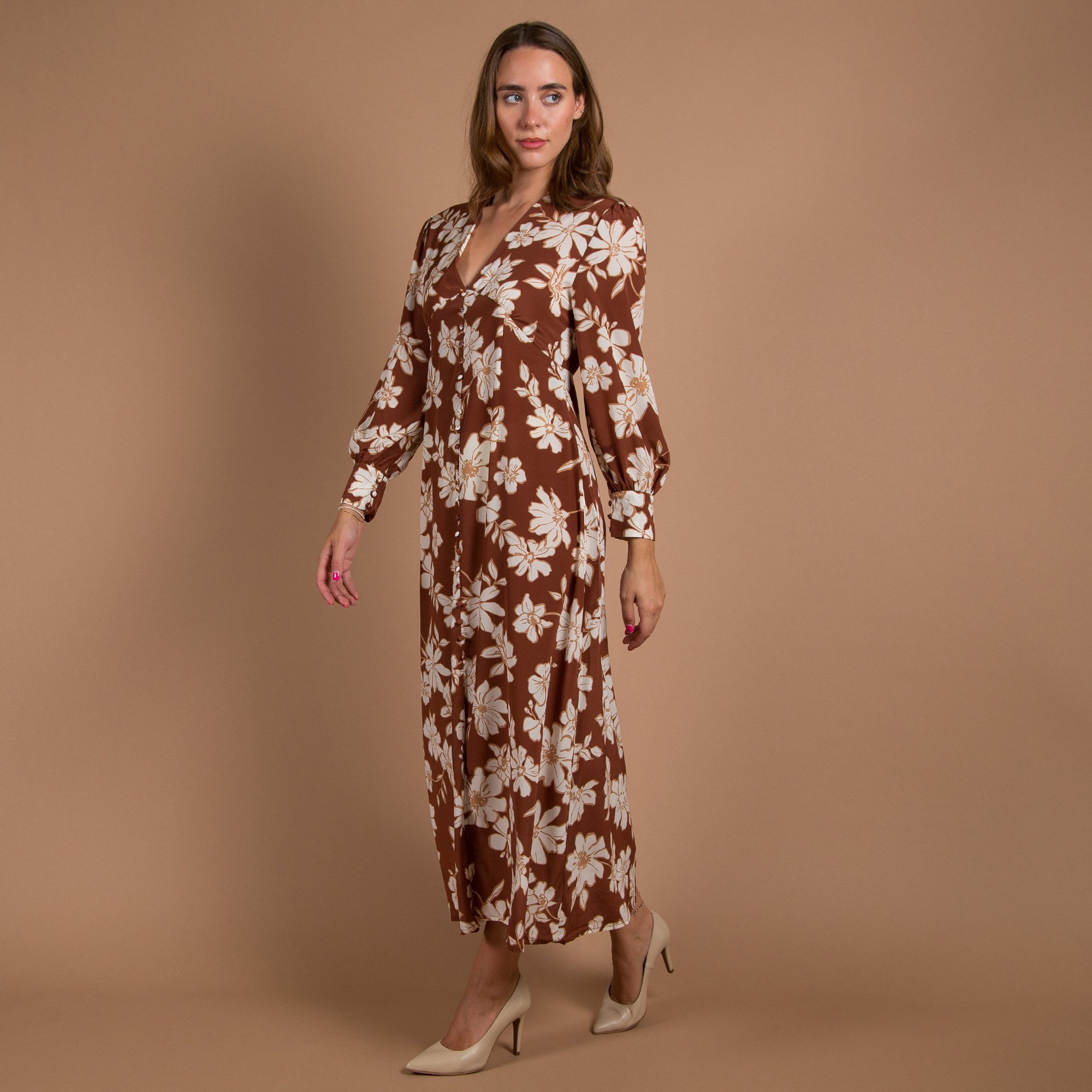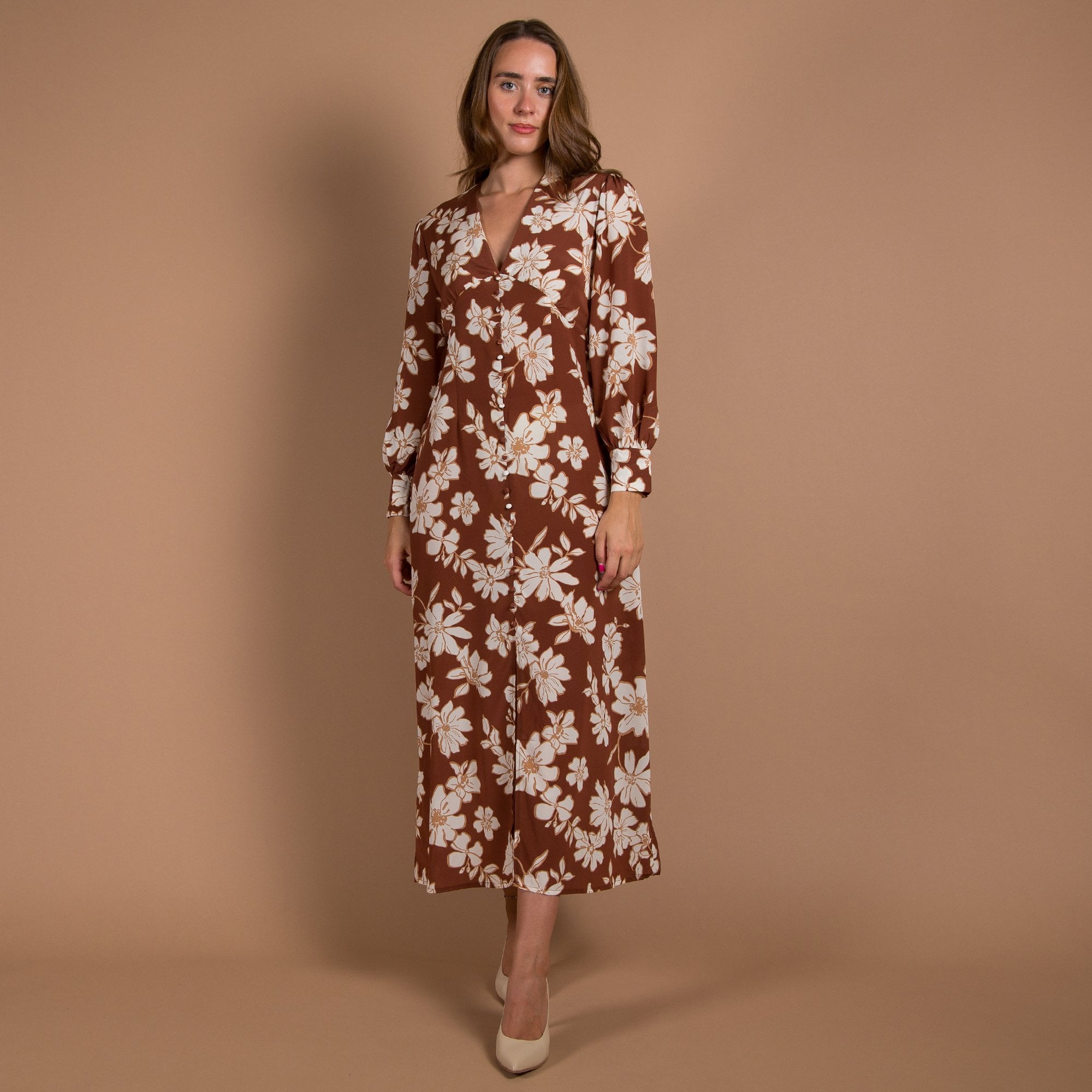 Primrose Park Opal V Neck Button Down Blown Floral Print Dress Brown/cream