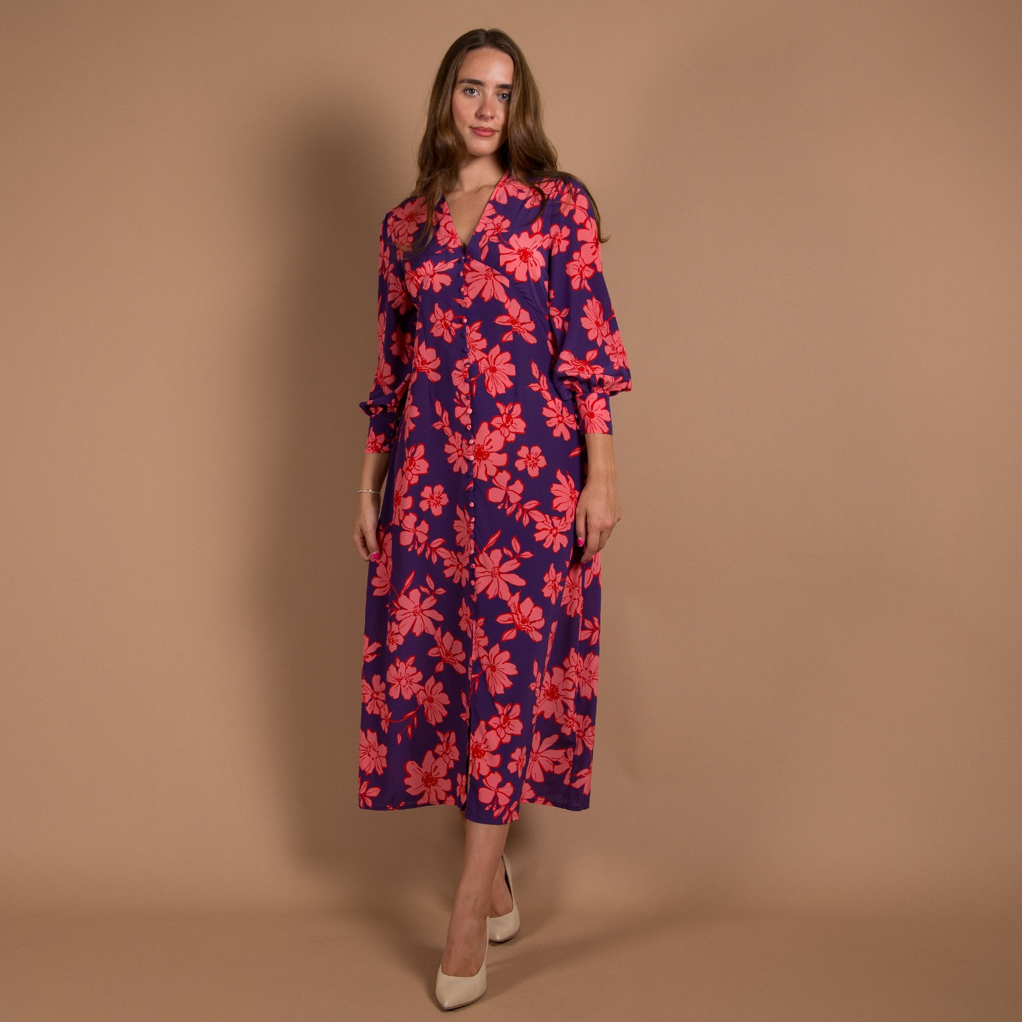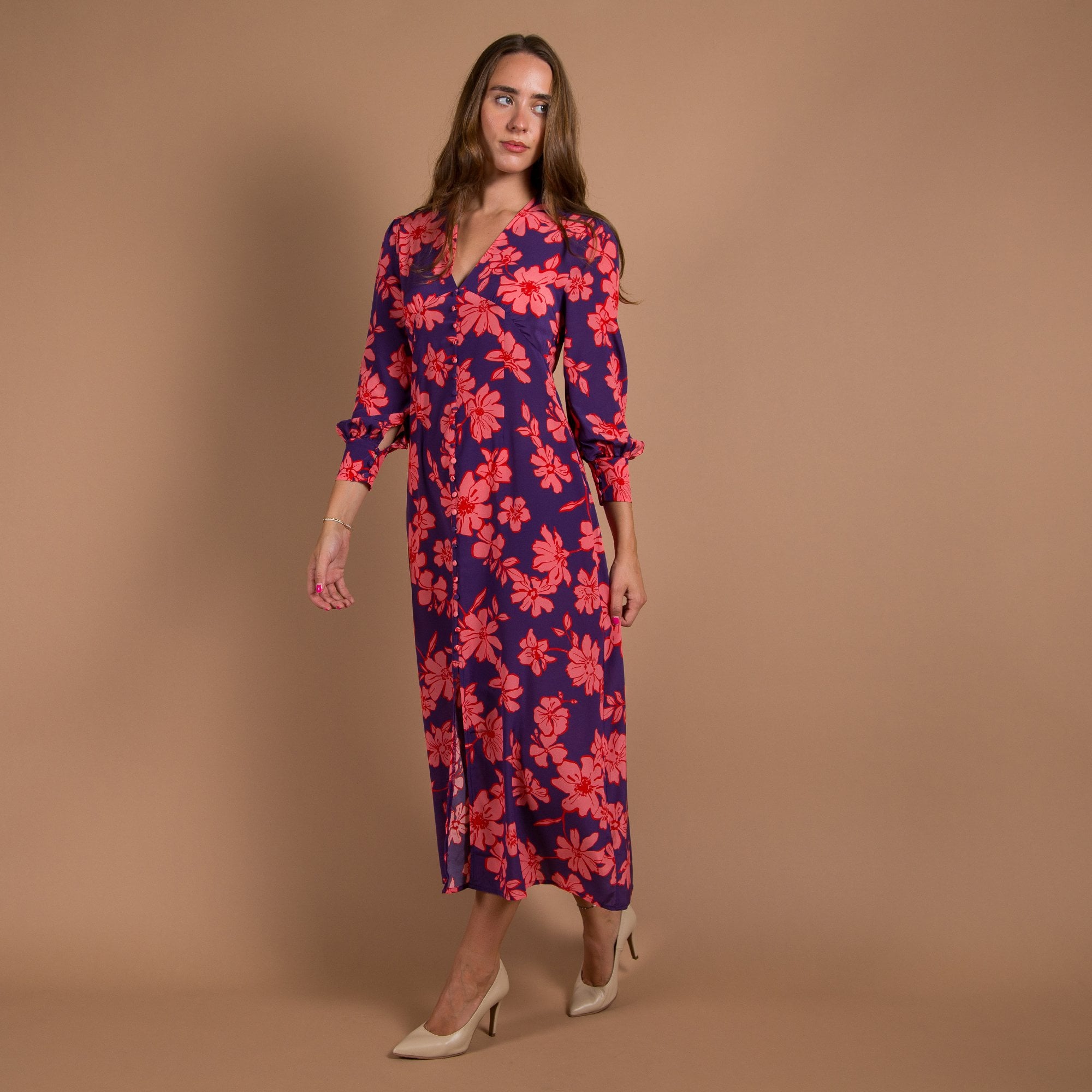 Primrose Park Opal V Neck Button Down Blown Floral Print Dress Purple/pink