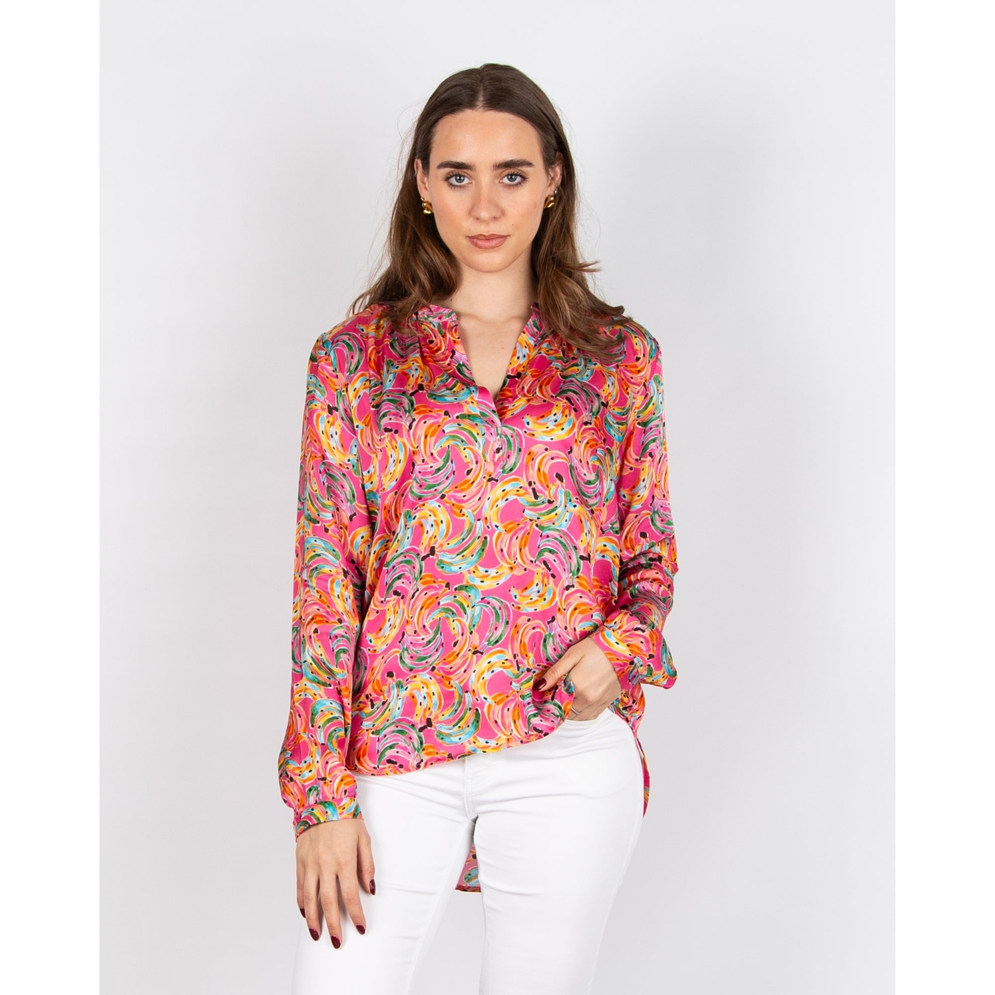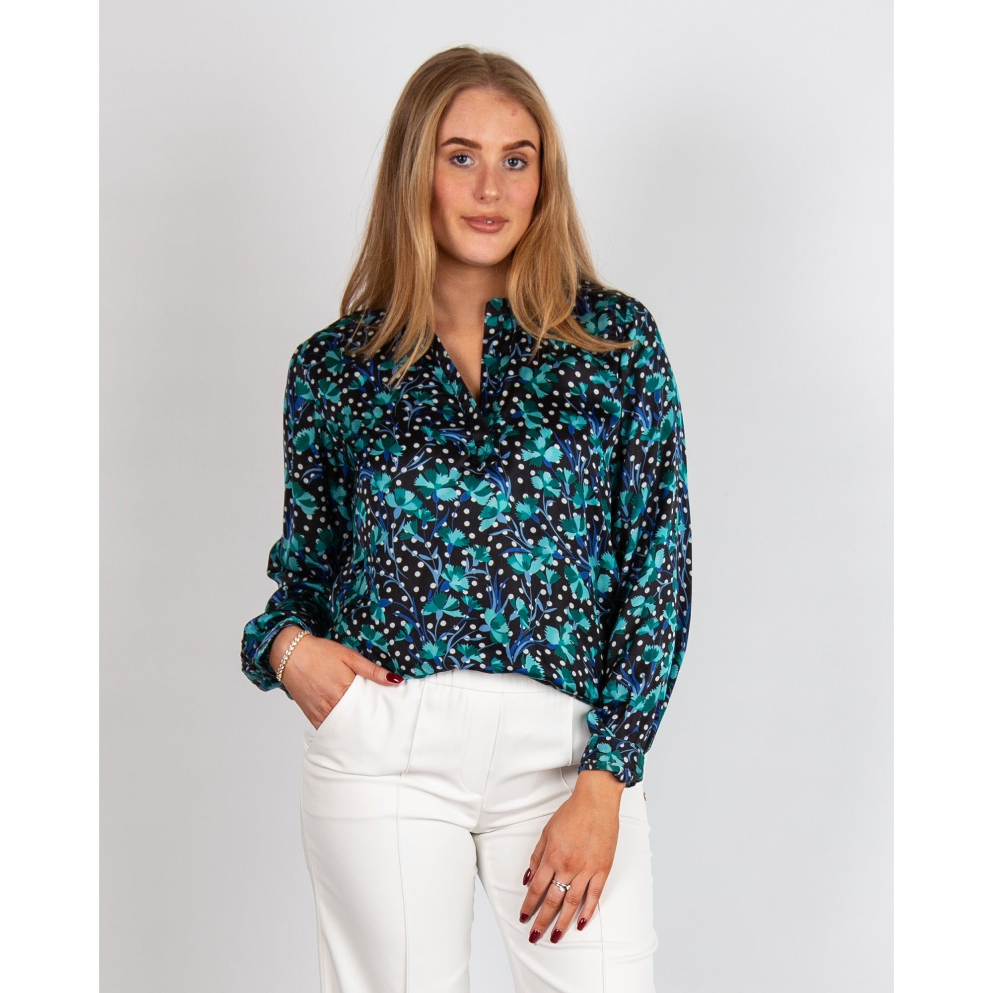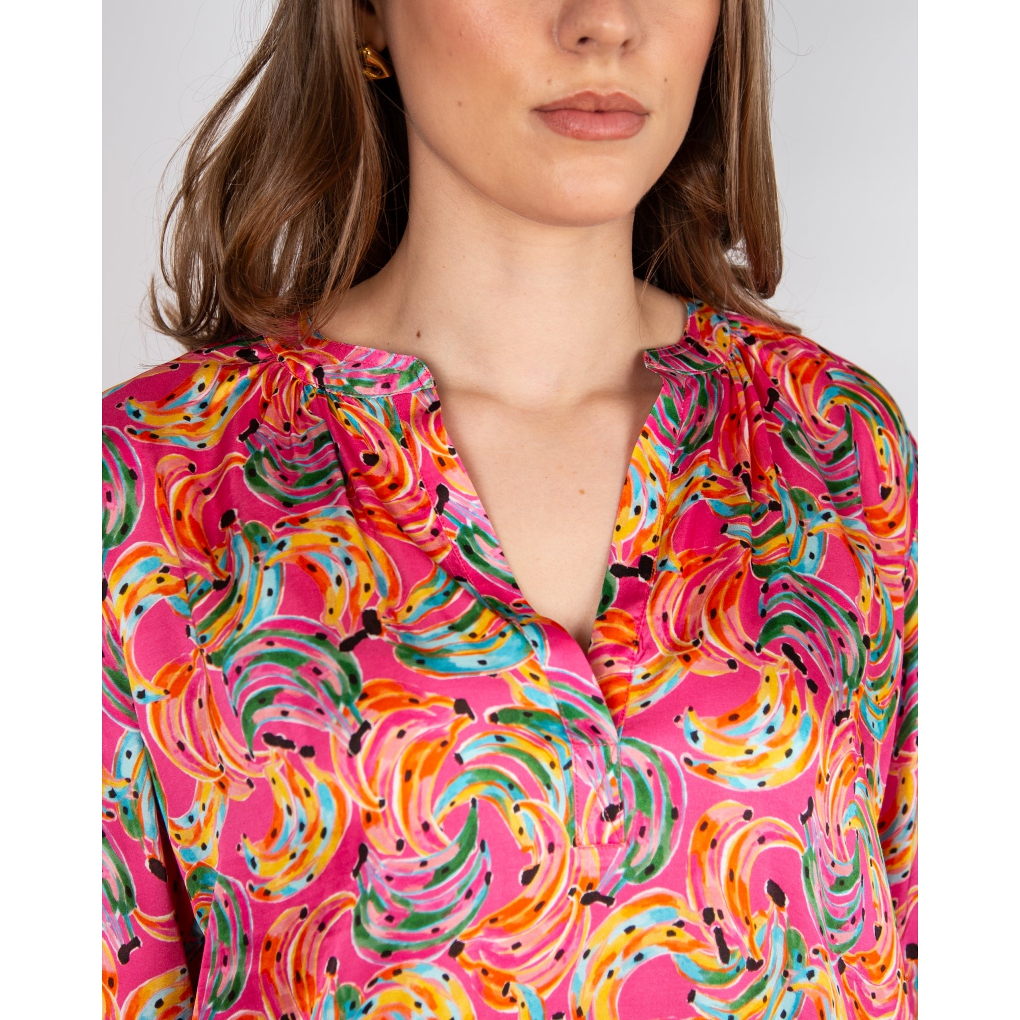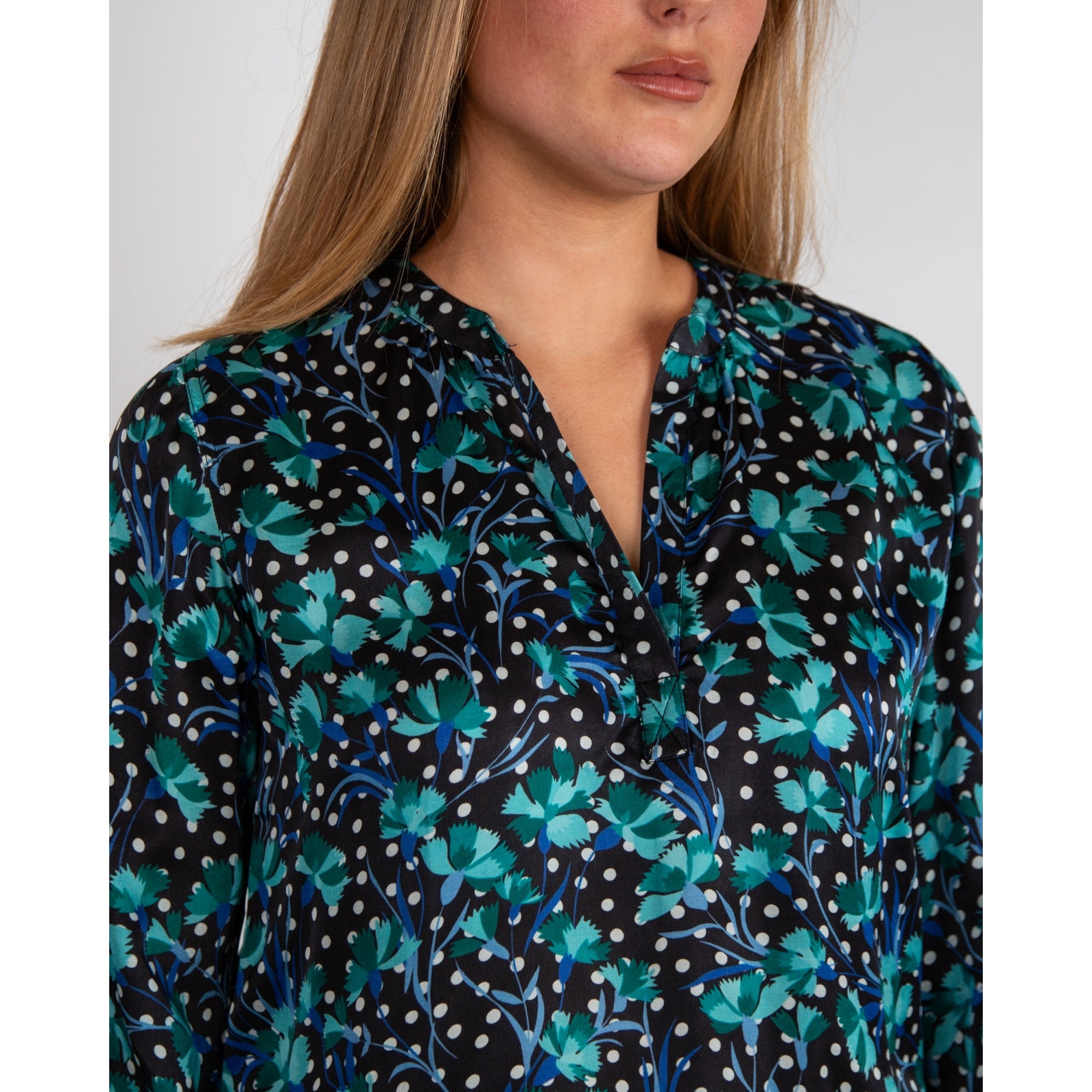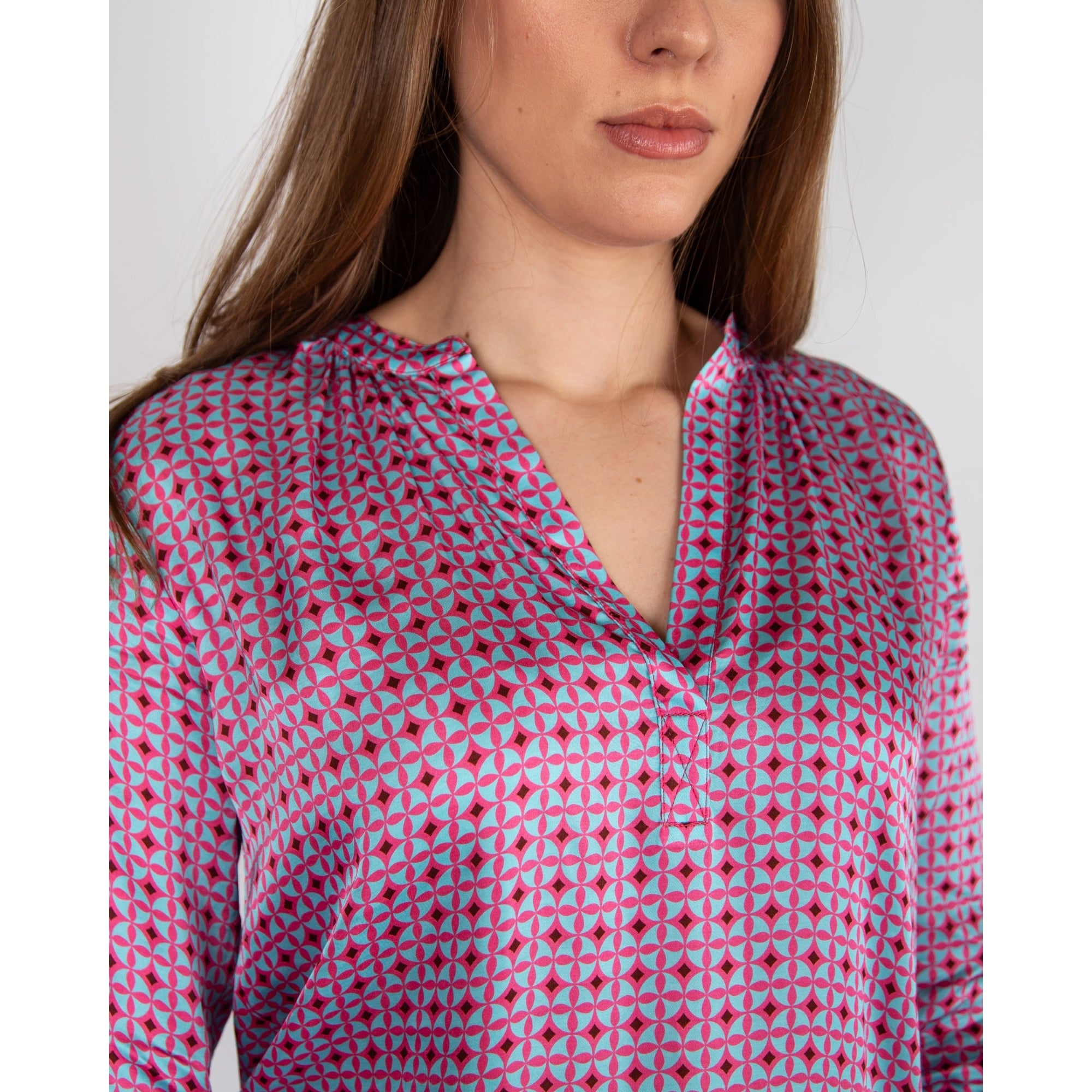 Primrose Park Sandy Tropical Print Slit Neck Blouse Carnation Turquoise