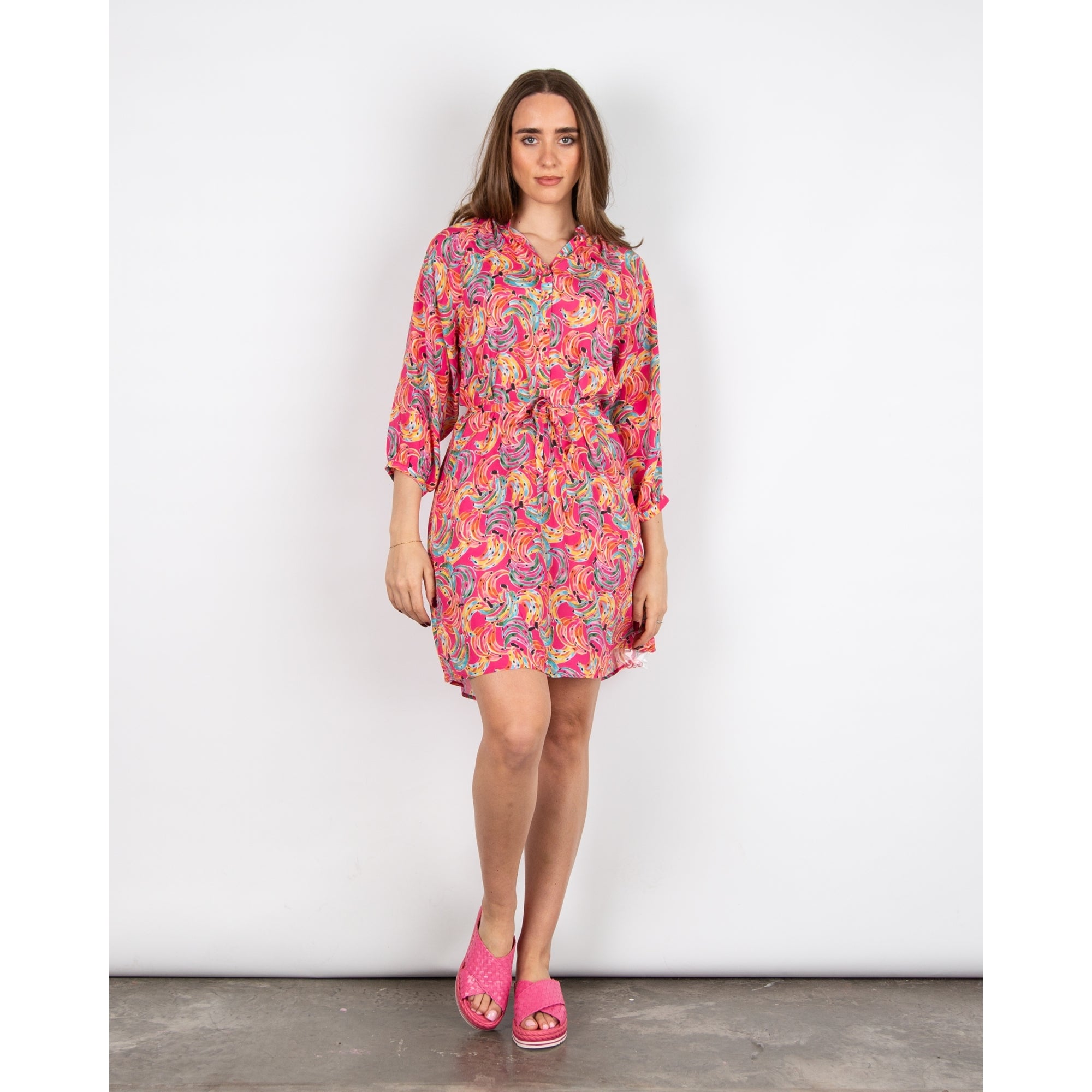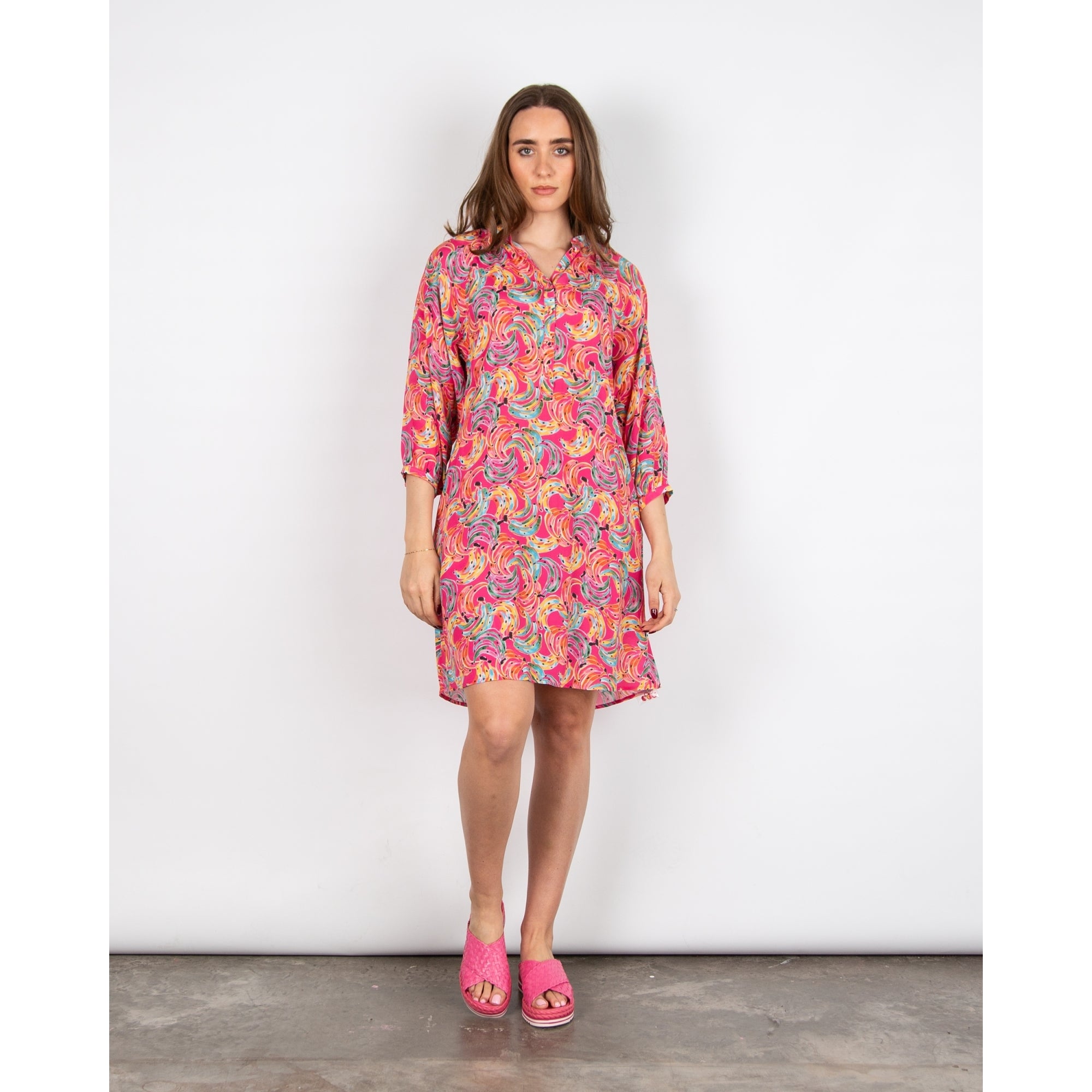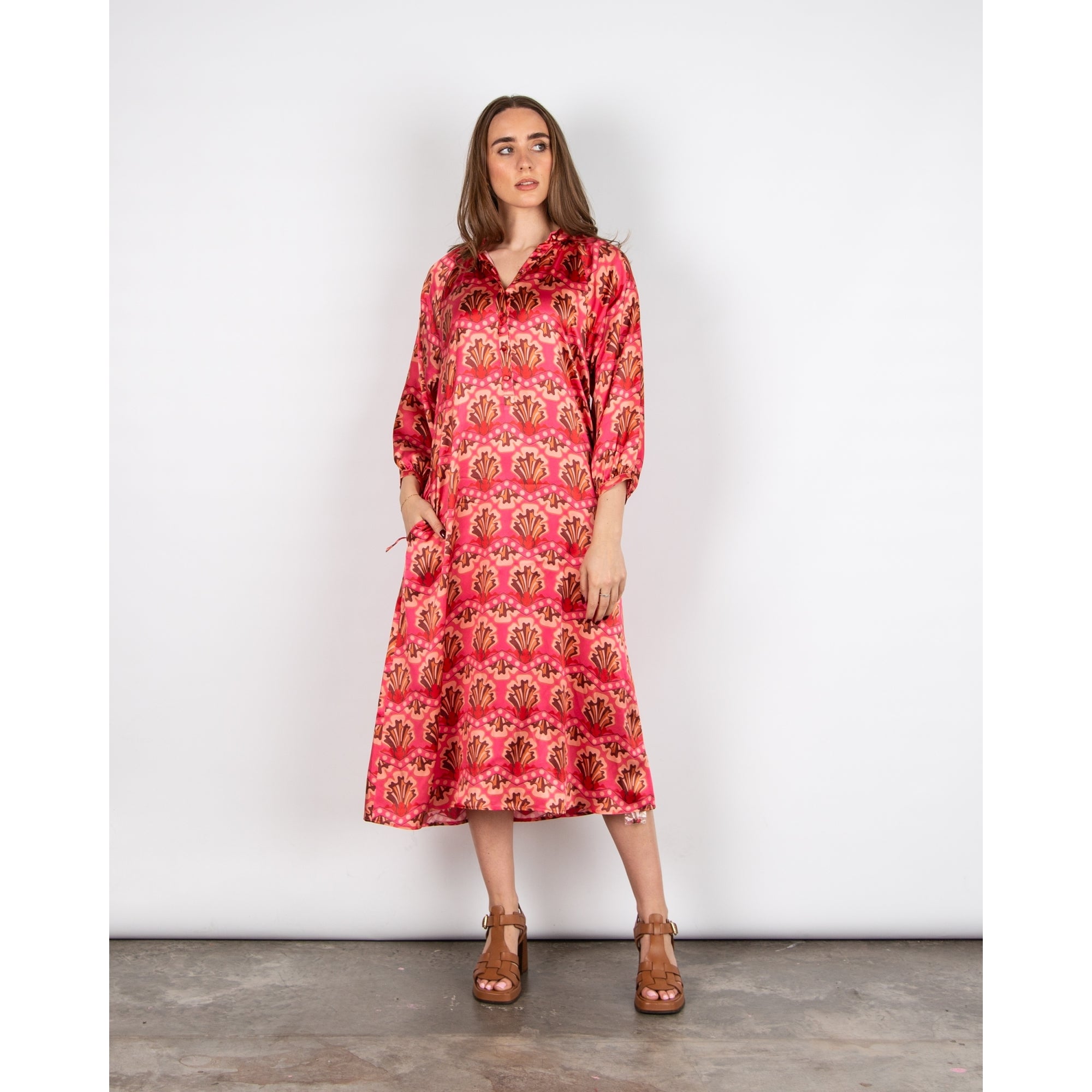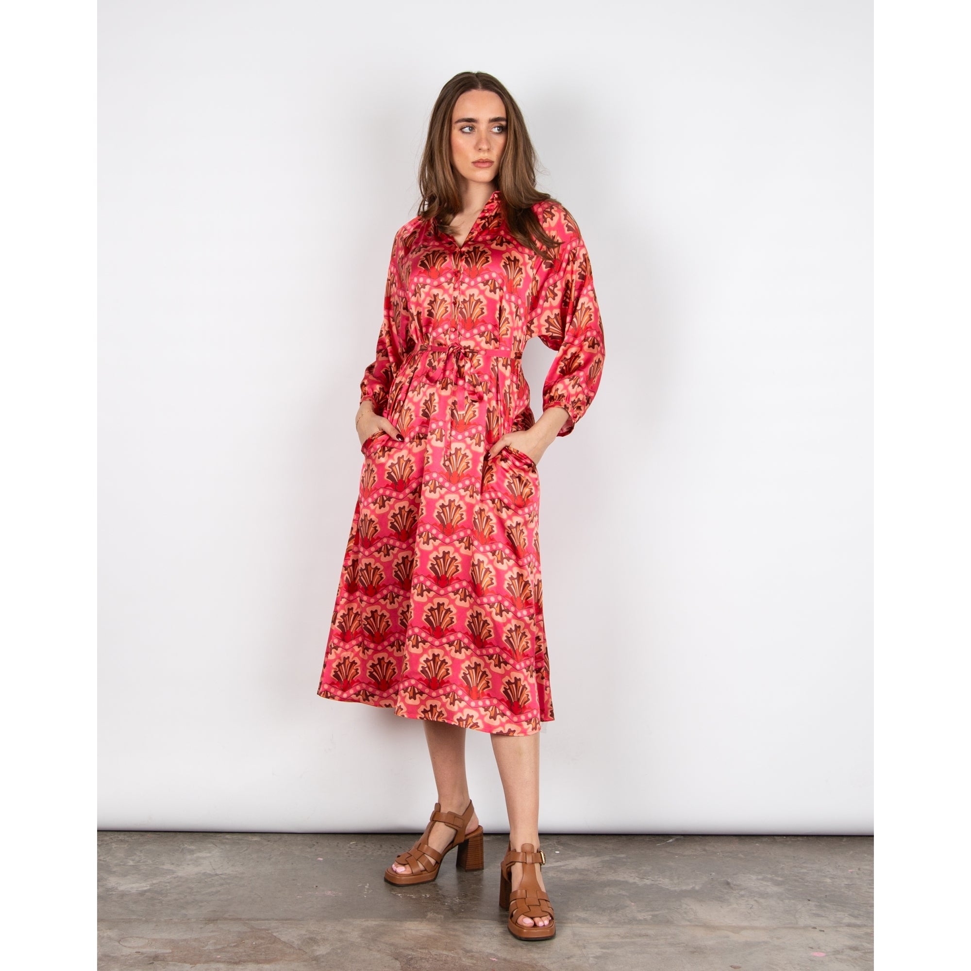 Primrose Park Zion Zigzag Shell Print Button Down Silk Dress Zigzag Pink
