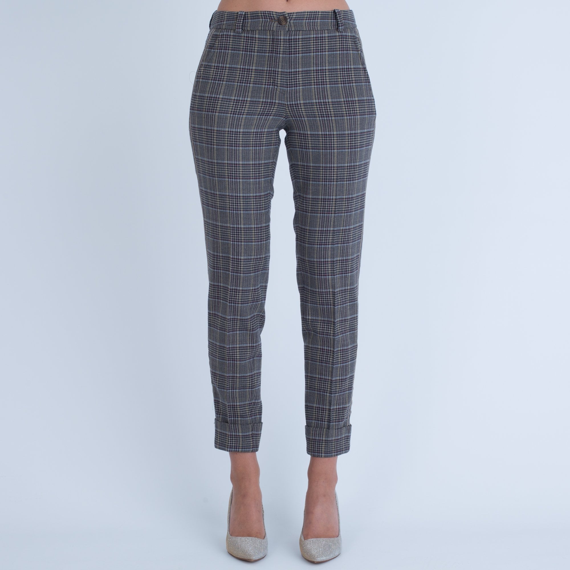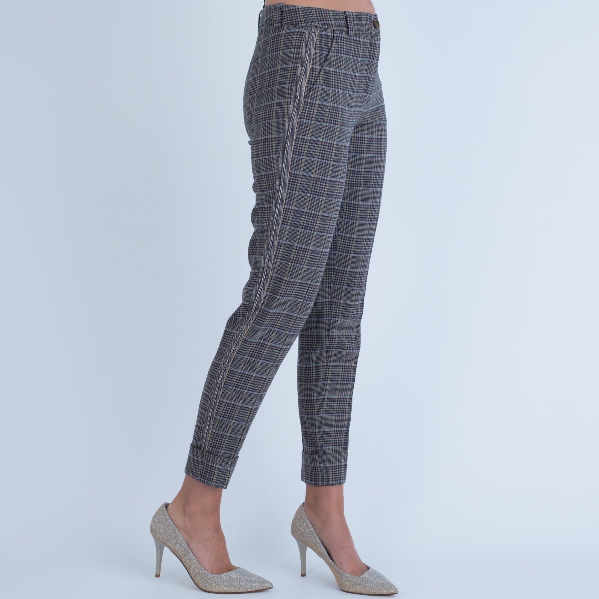 Riani Check Trouser With Metal Tape Side Bronze Check