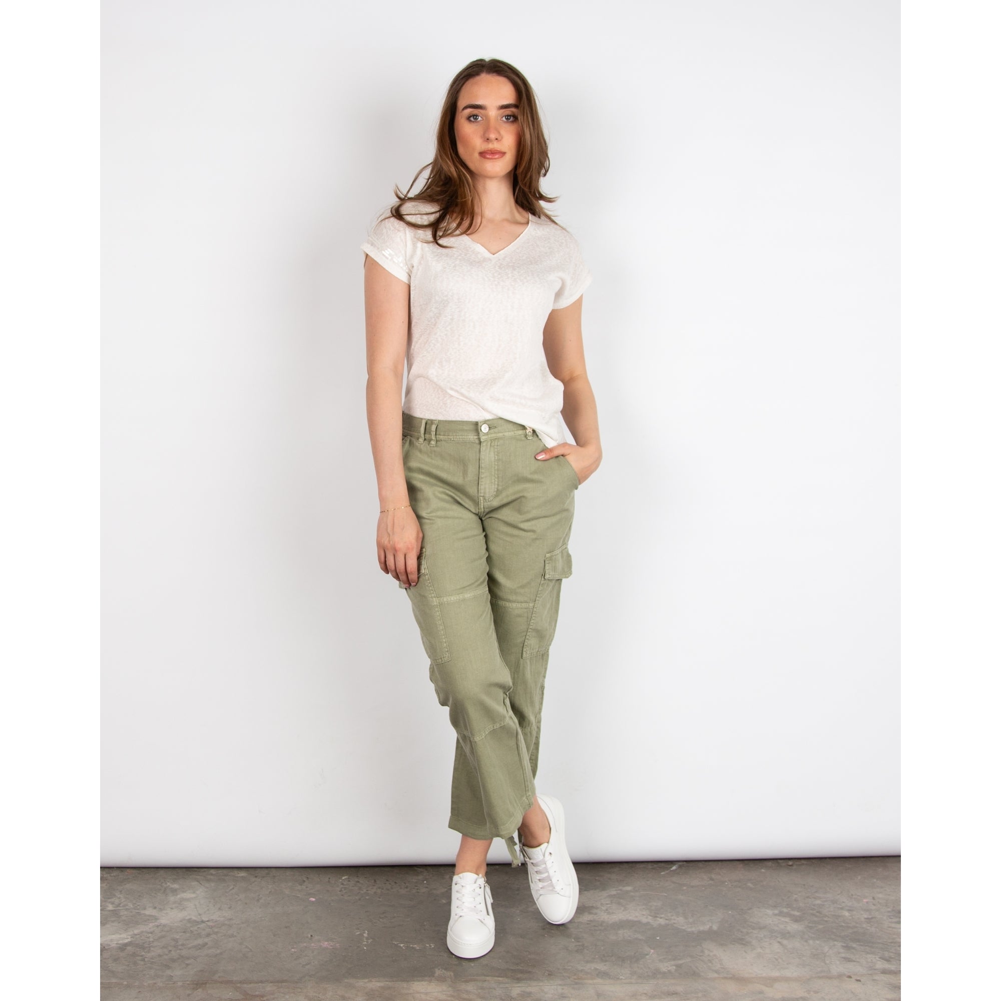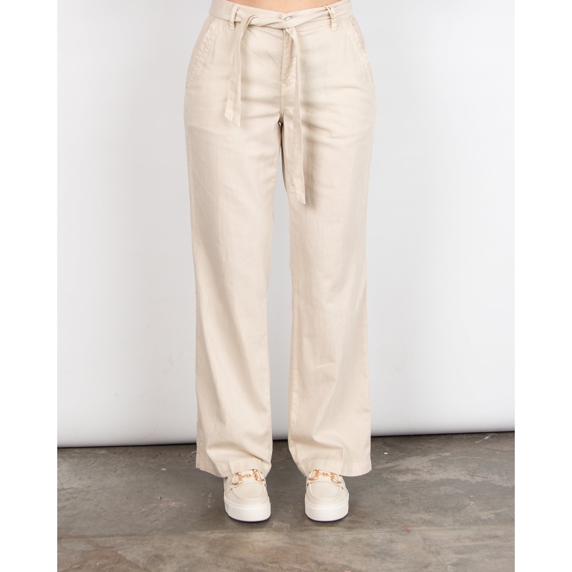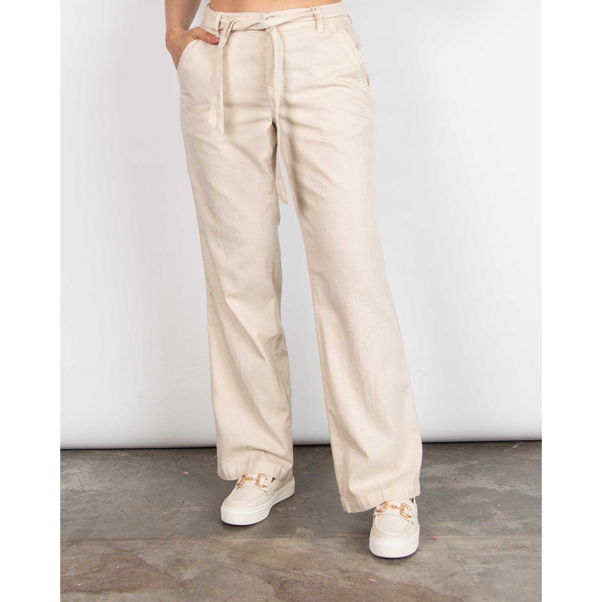 Red Button Tie Waist Wide Leg Linen Trouser Stone