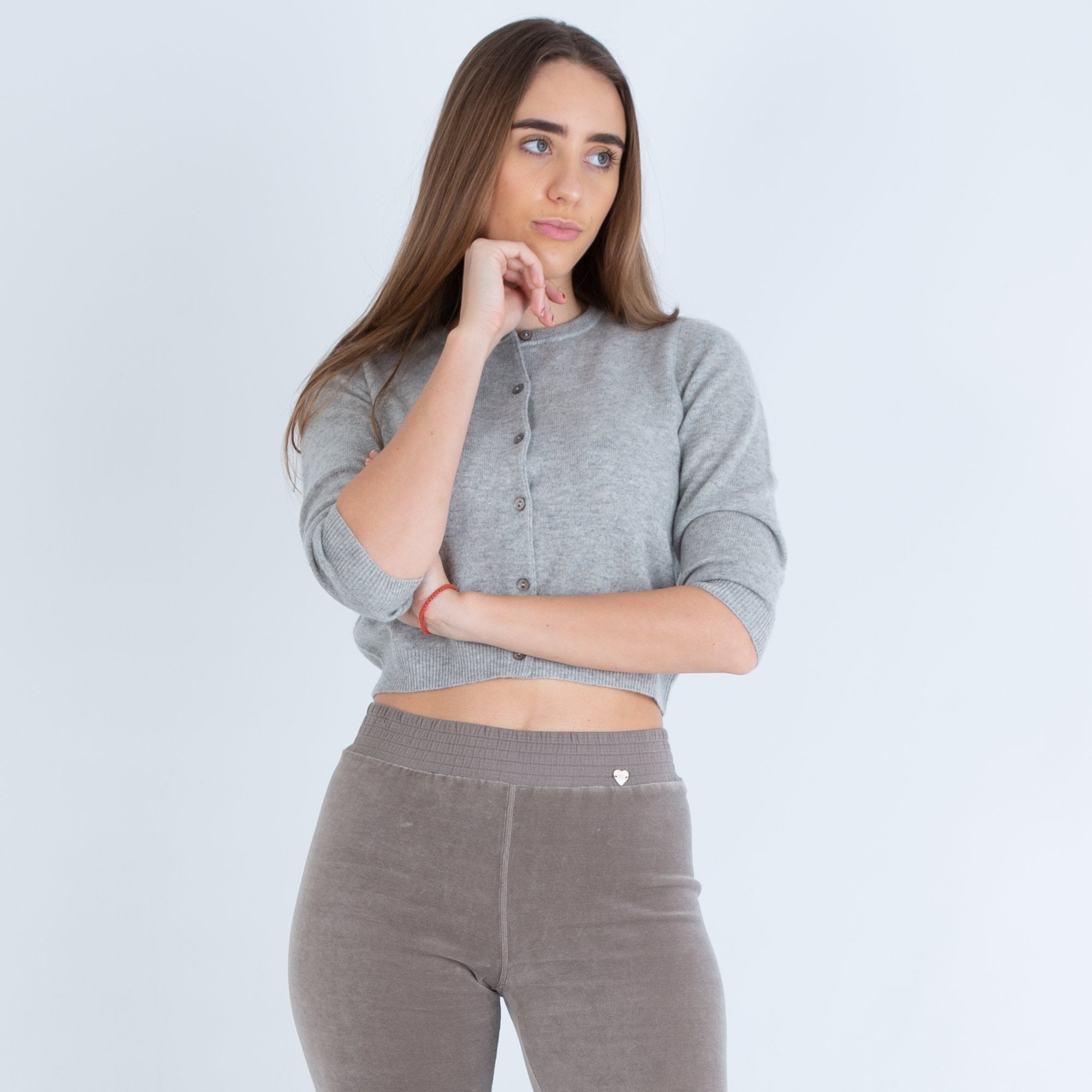 Repeat Cashmere Short Cashmere Cardigan Light Grey