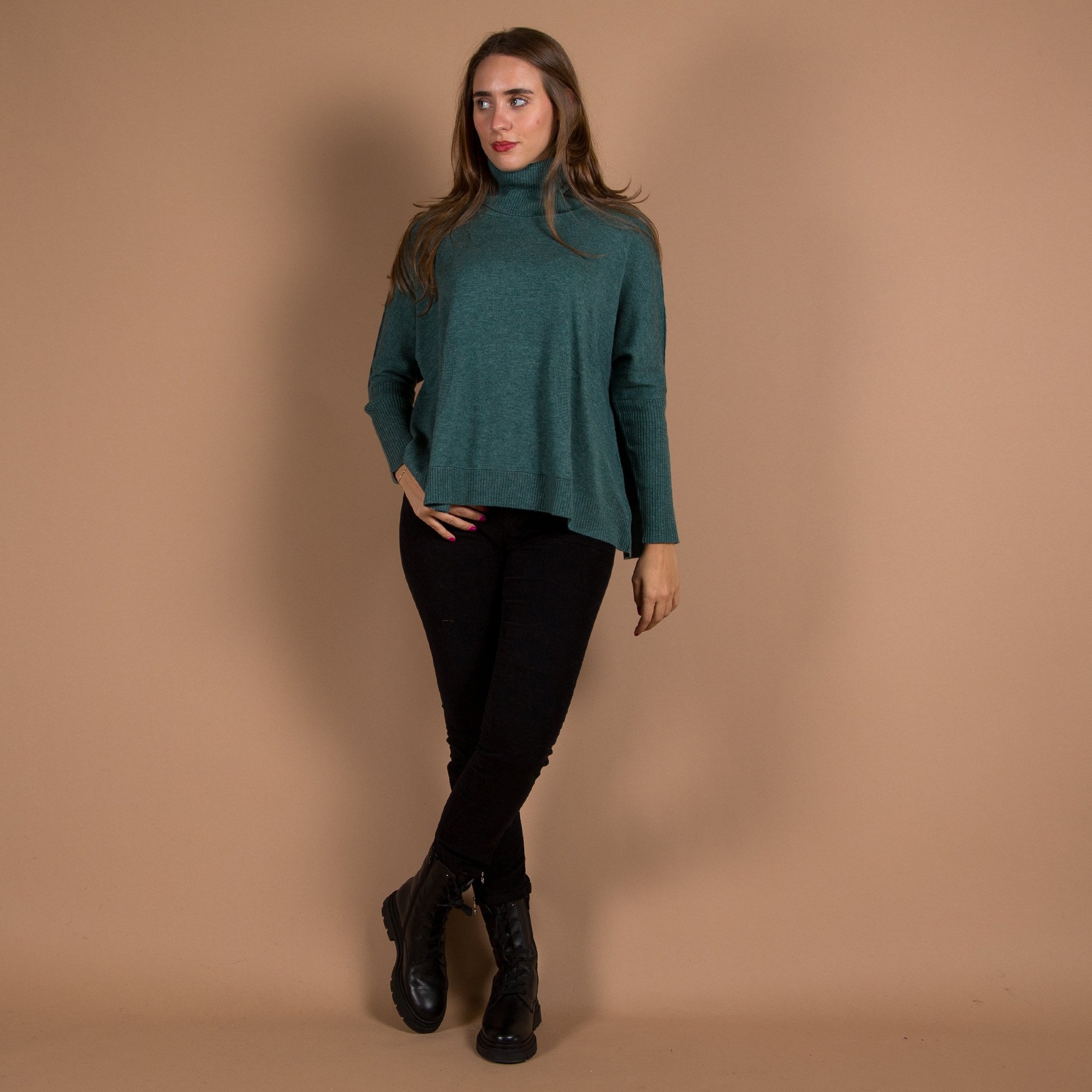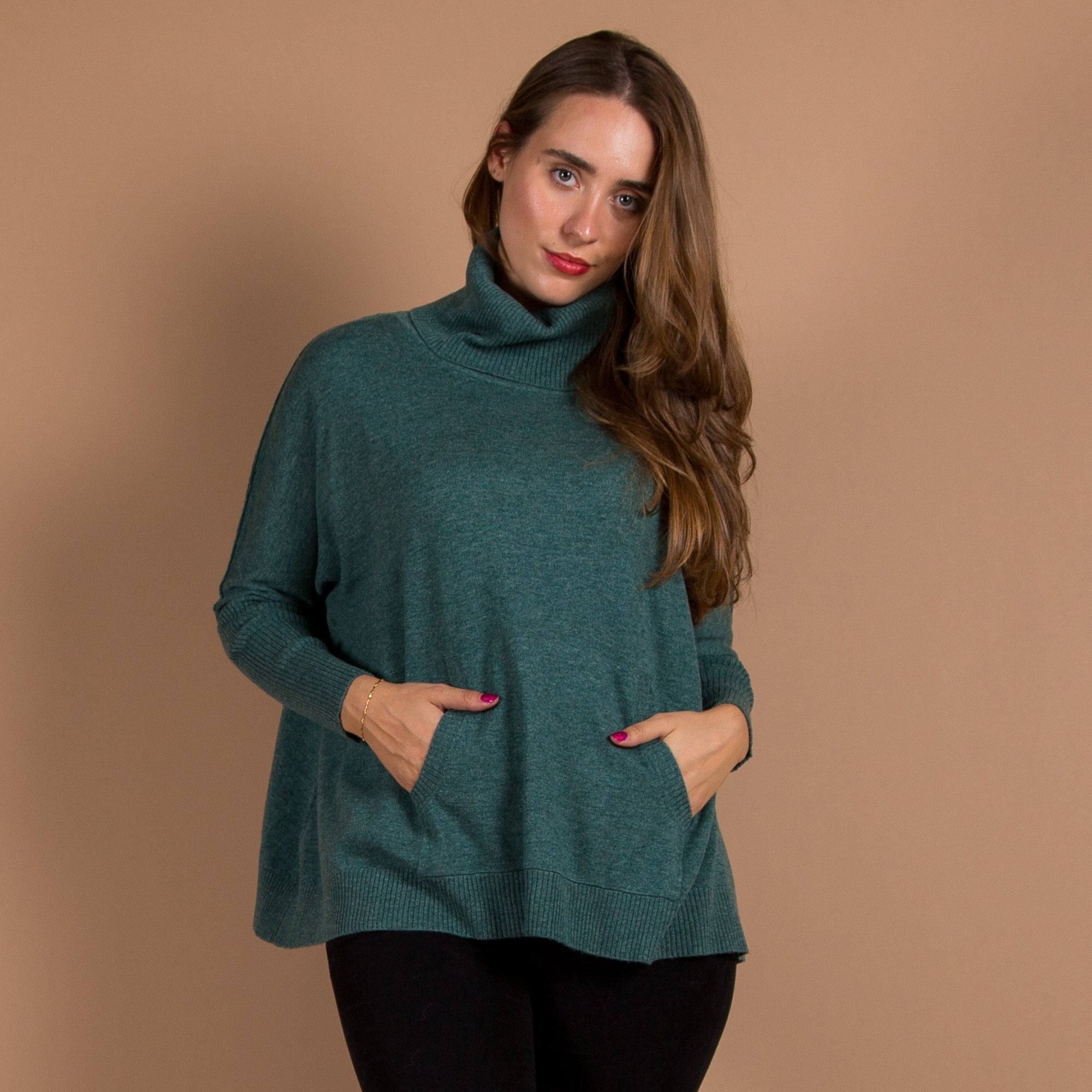 Repeat Cashmere Roll Neck A Line Pocket Front Cashmere Jumper Moss Green