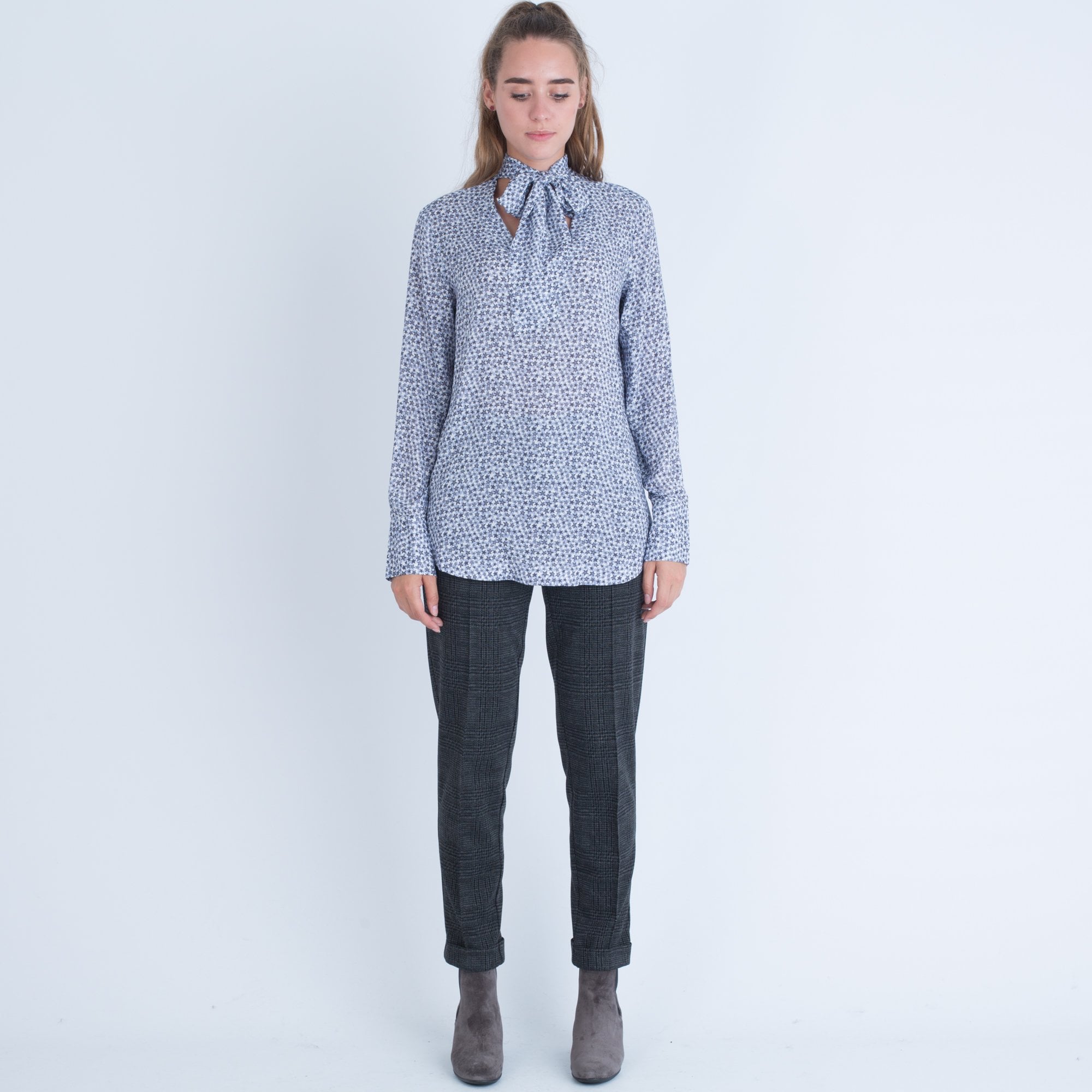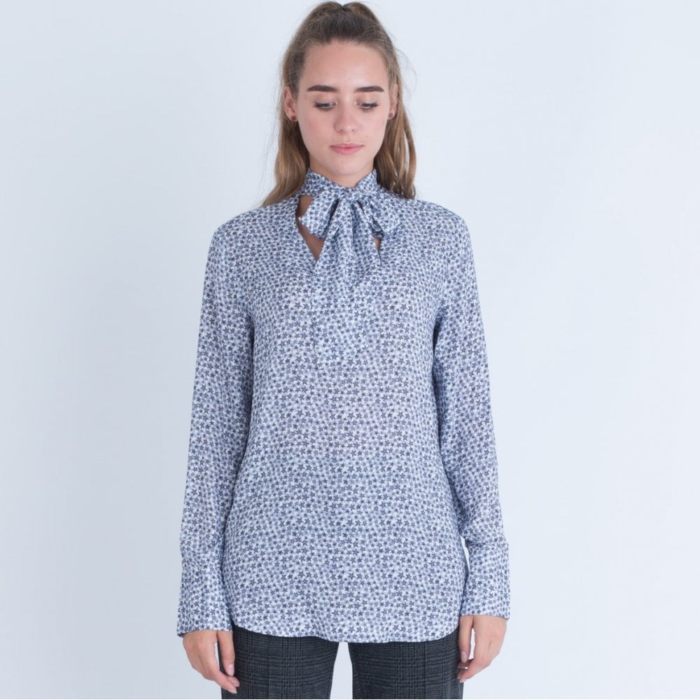 Riani Star Pattern Tie Neck Blouse Blue