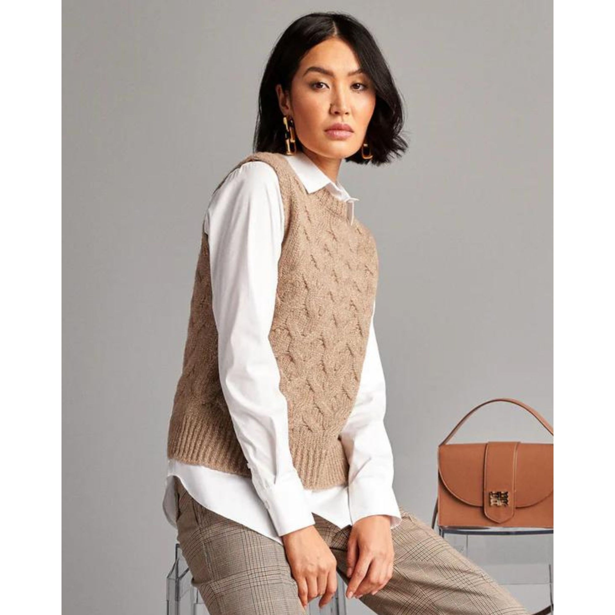 Riani Soft Cable Knit Gold Lurex Tank Top Caramel