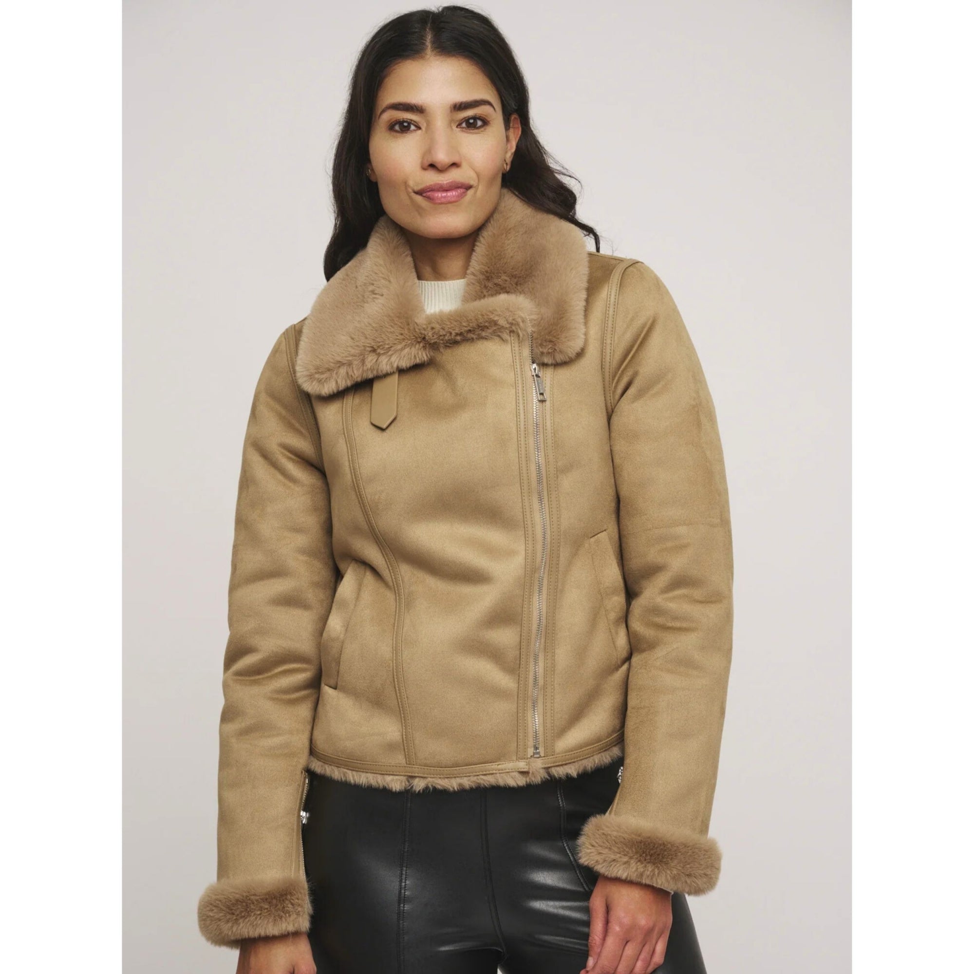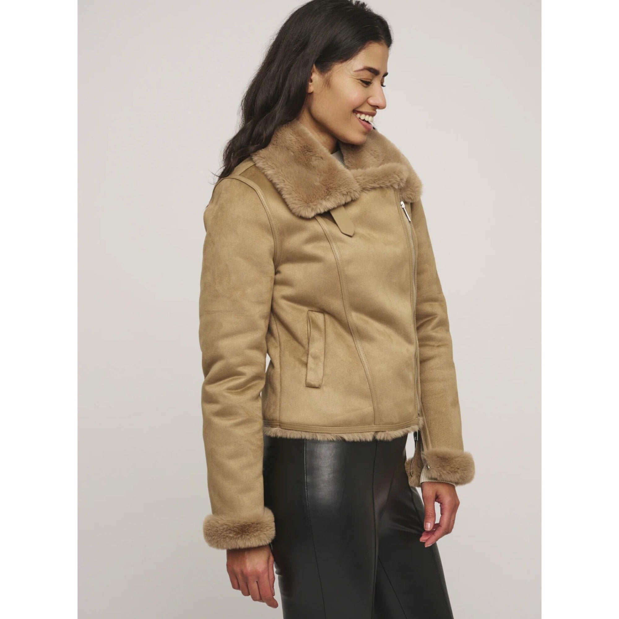 Rino & Pelle Bacia Faux Fur Biker Jacket Sand
