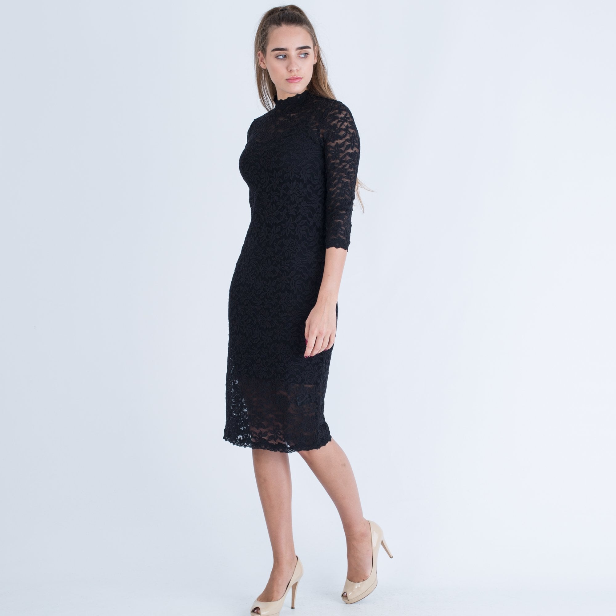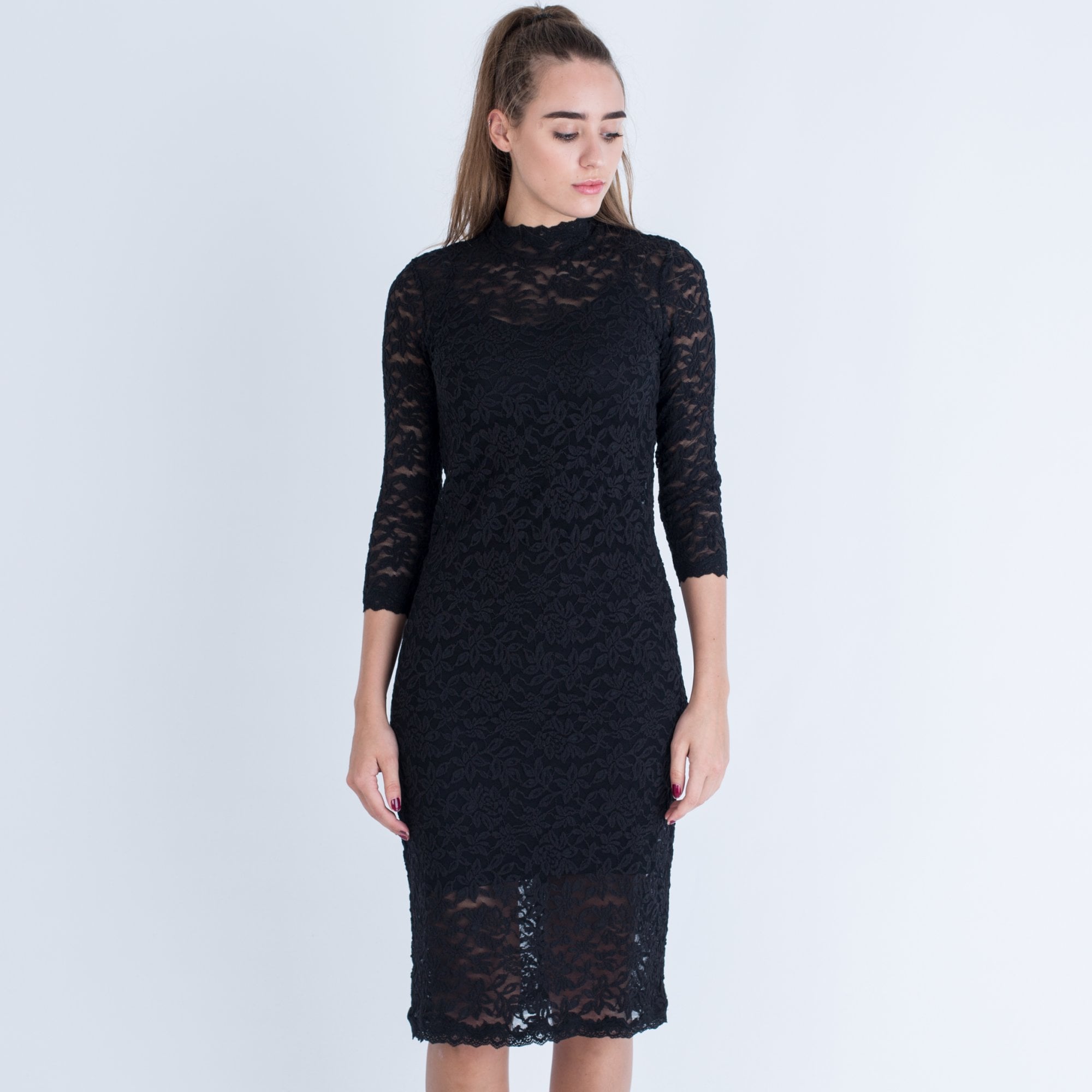 Rosemunde Fitted Lace Dress With Nerhu Neck And 3/4 Sleeve Black