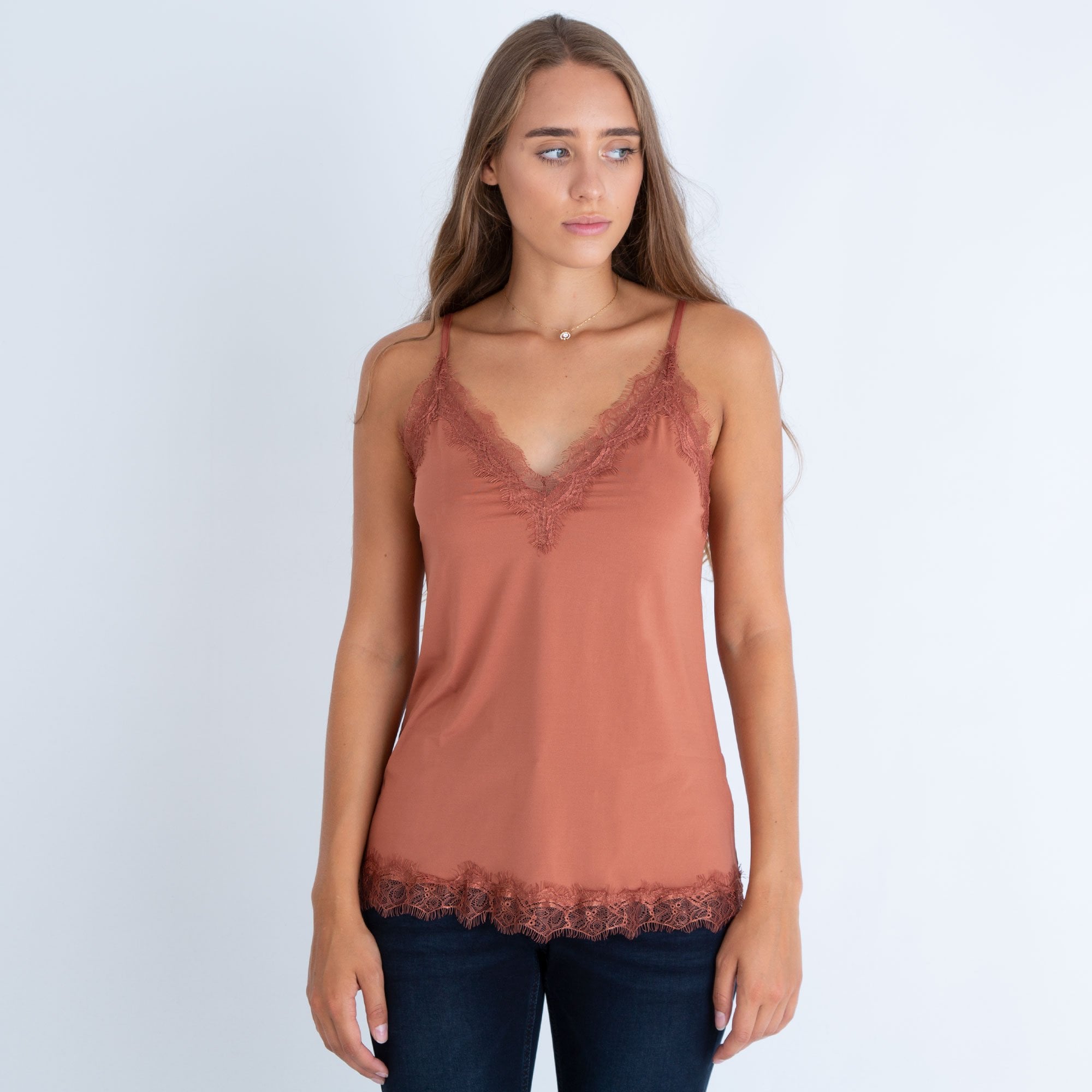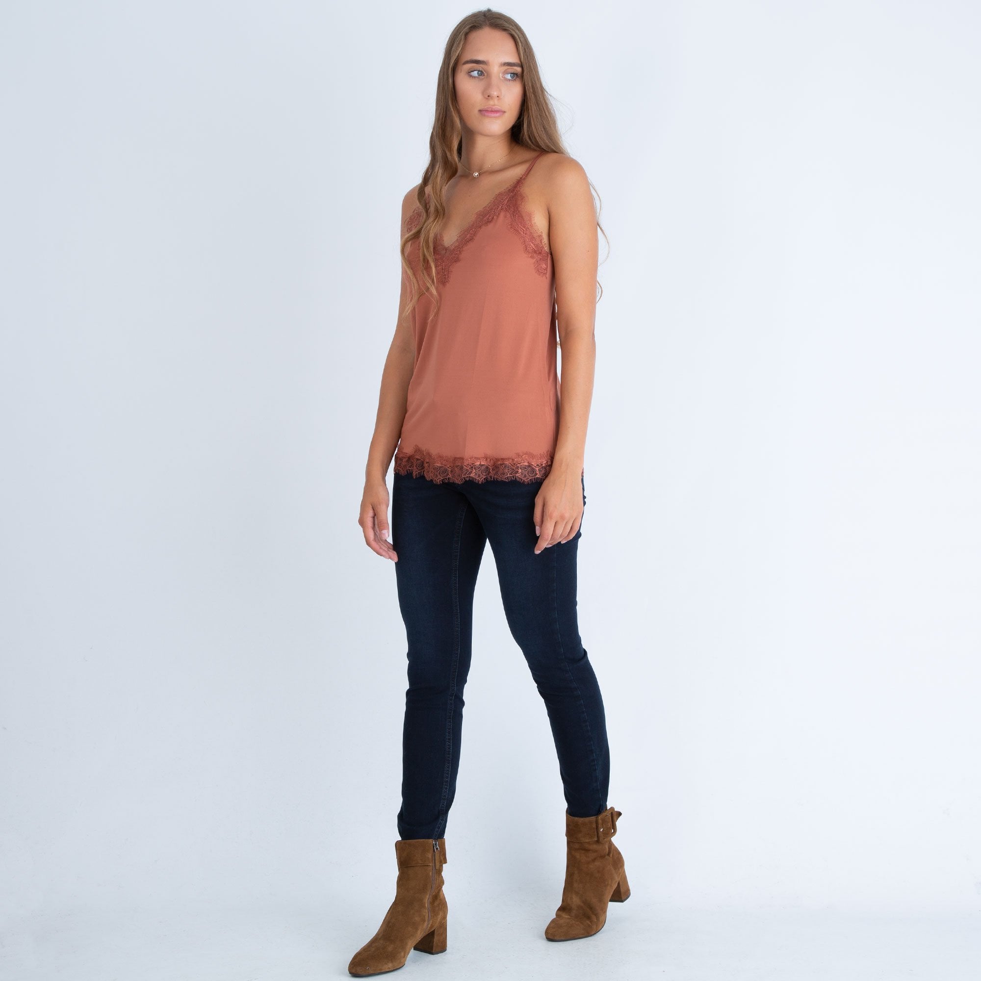 Rosemunde A Line Adjustable Strap Lace Trim Vest Copper
