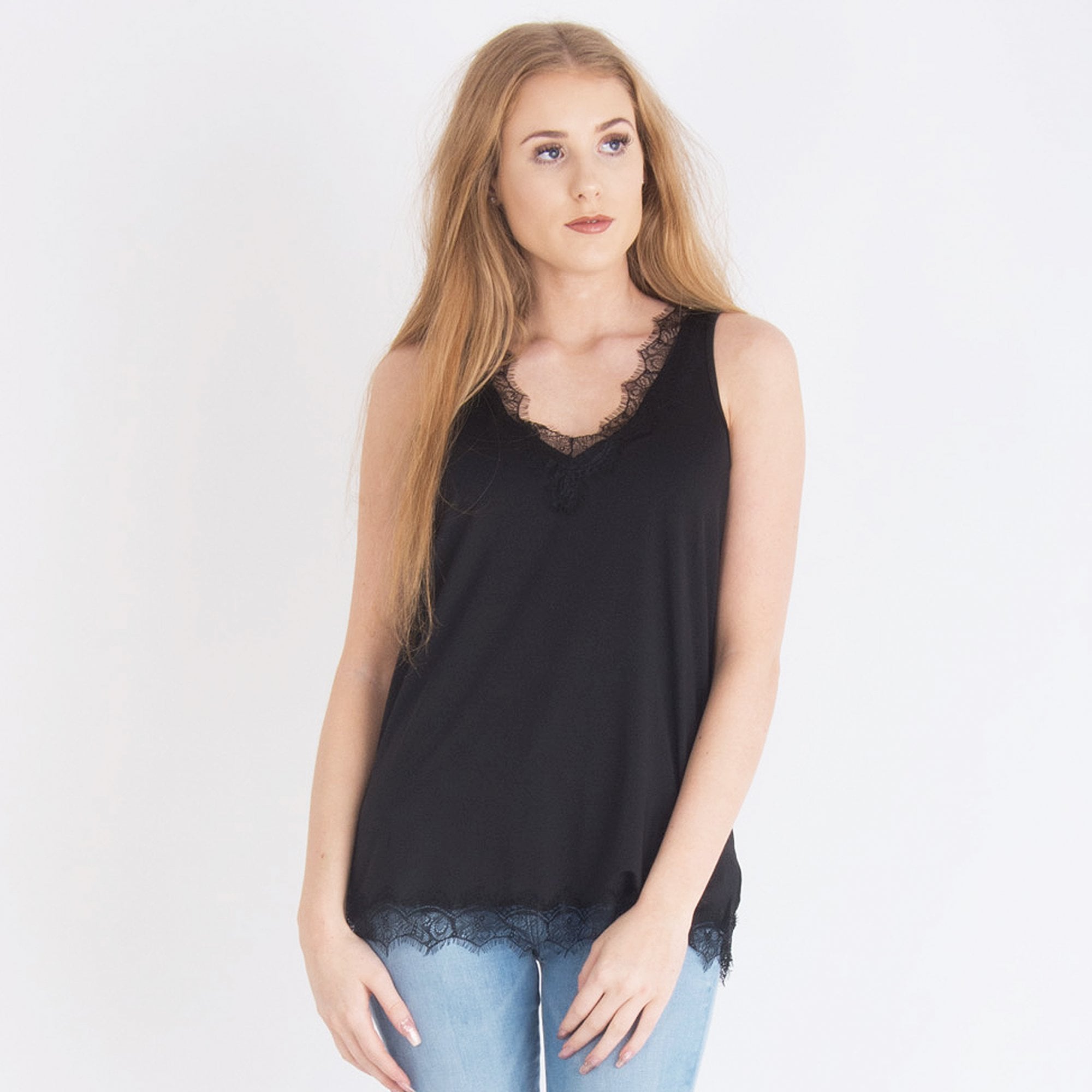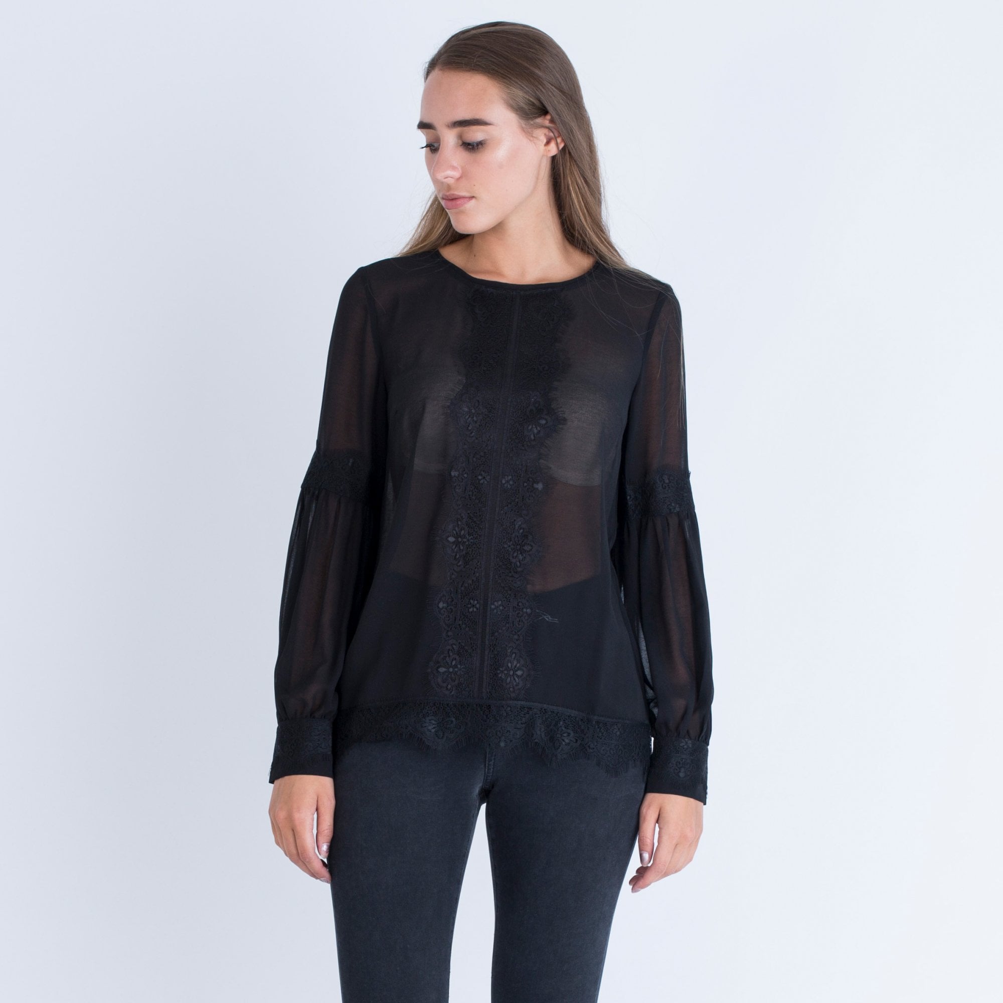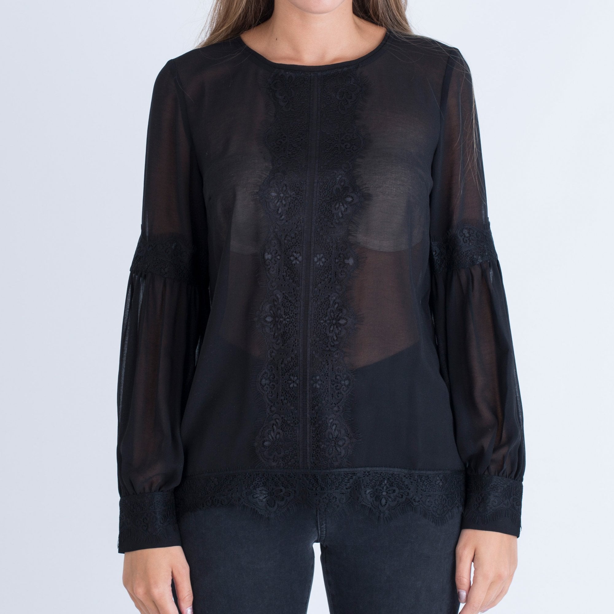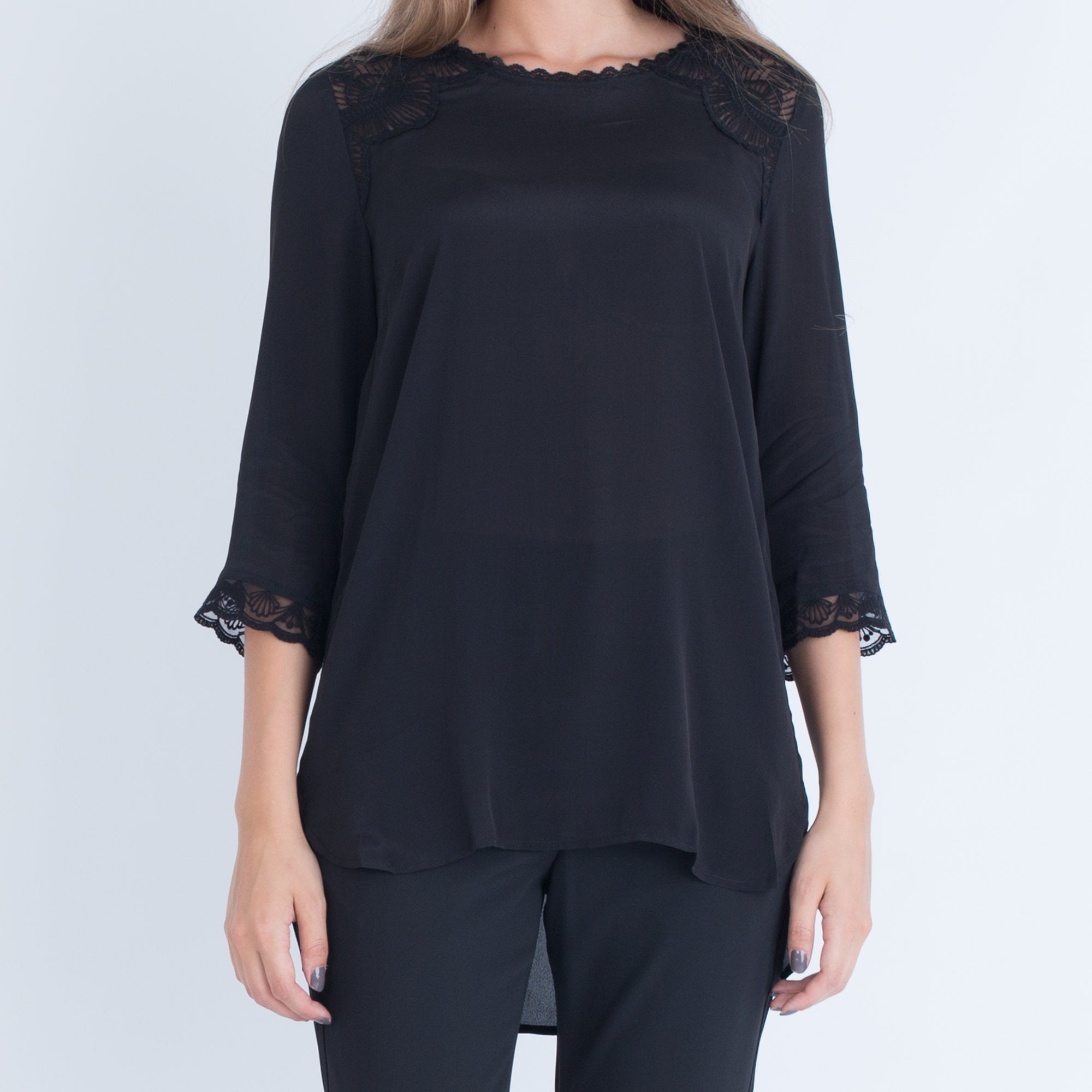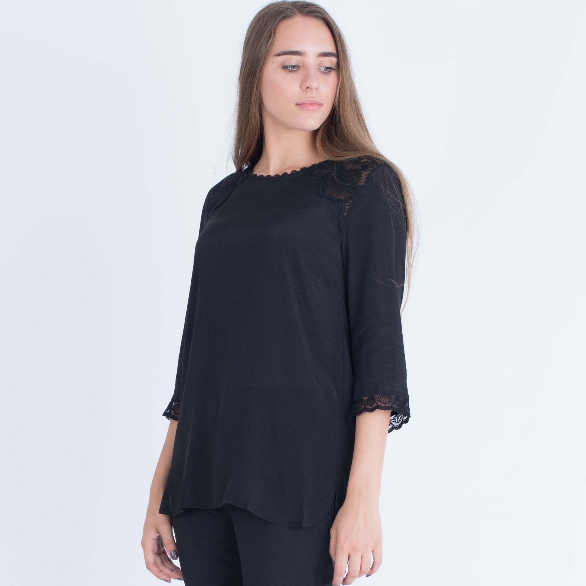 Rosemunde Firenze Lace Top Dip Back Blouse Black