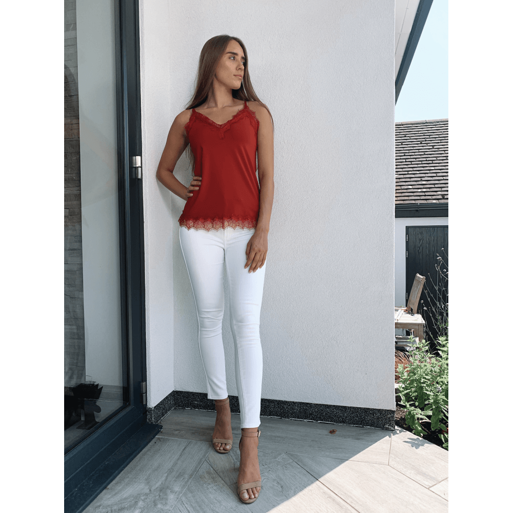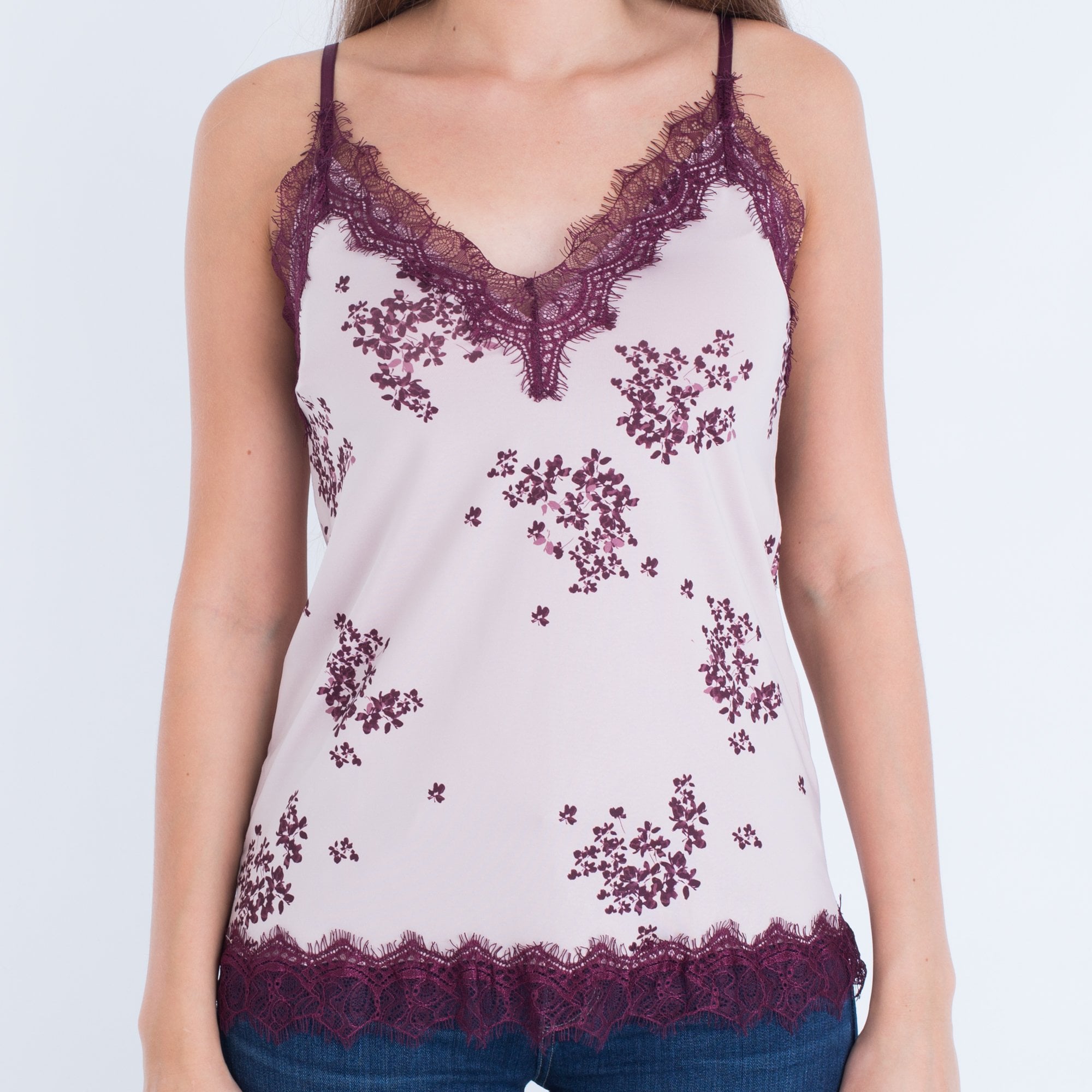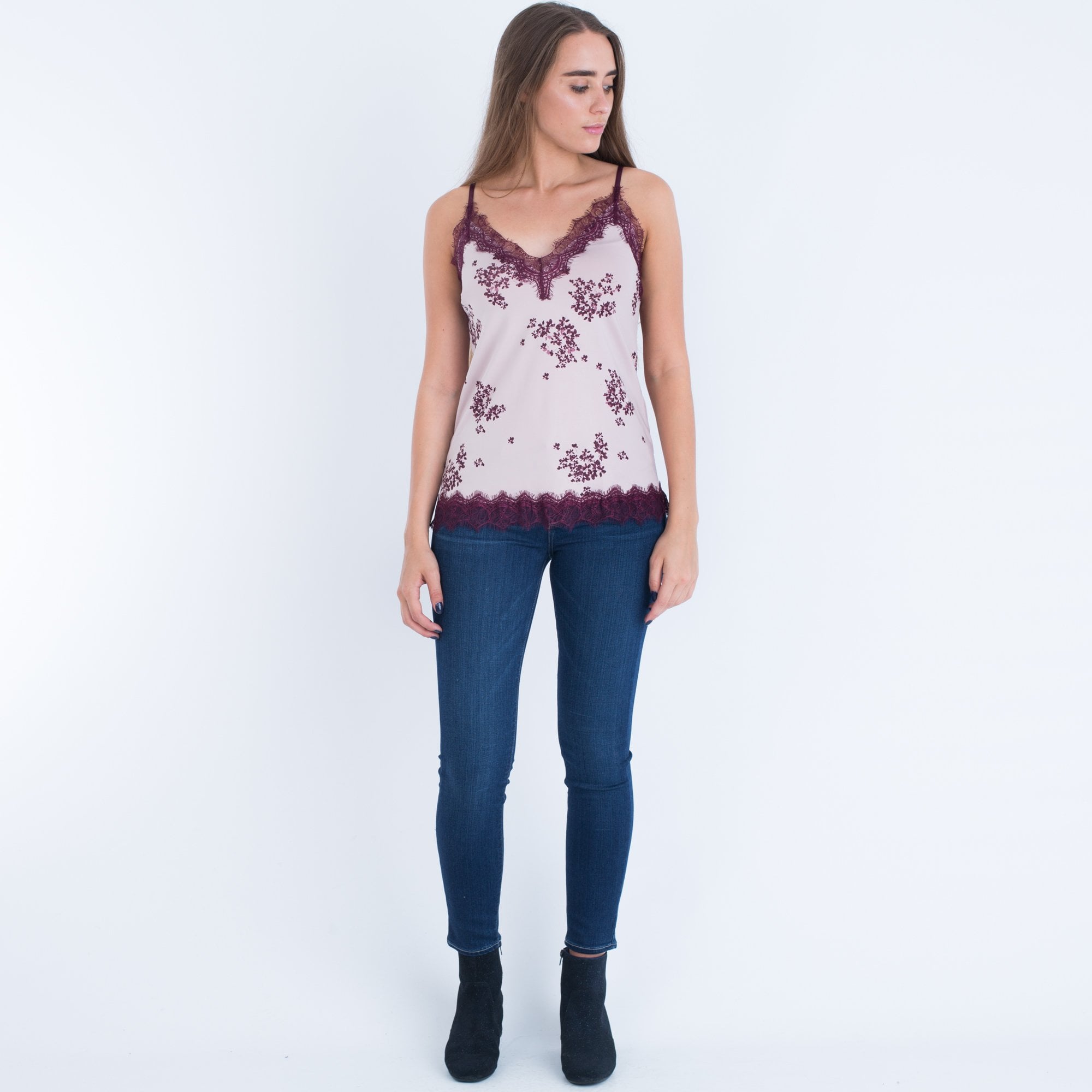 Rosemunde A Line Adjustable Strap Lace Trim Vest Pink/Burgundy