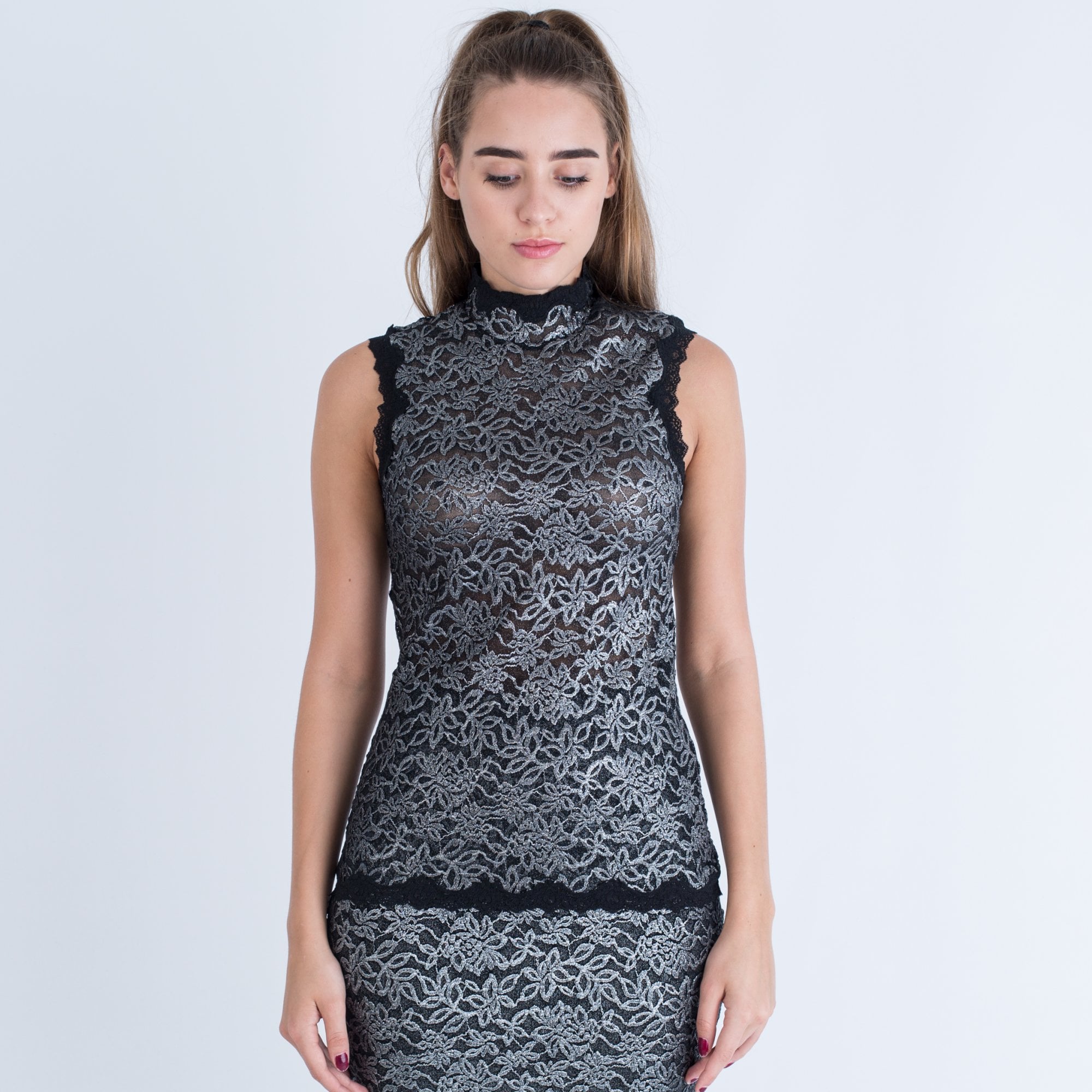 Rosemunde Metallic Sleeveless Lace Top Black/Silver