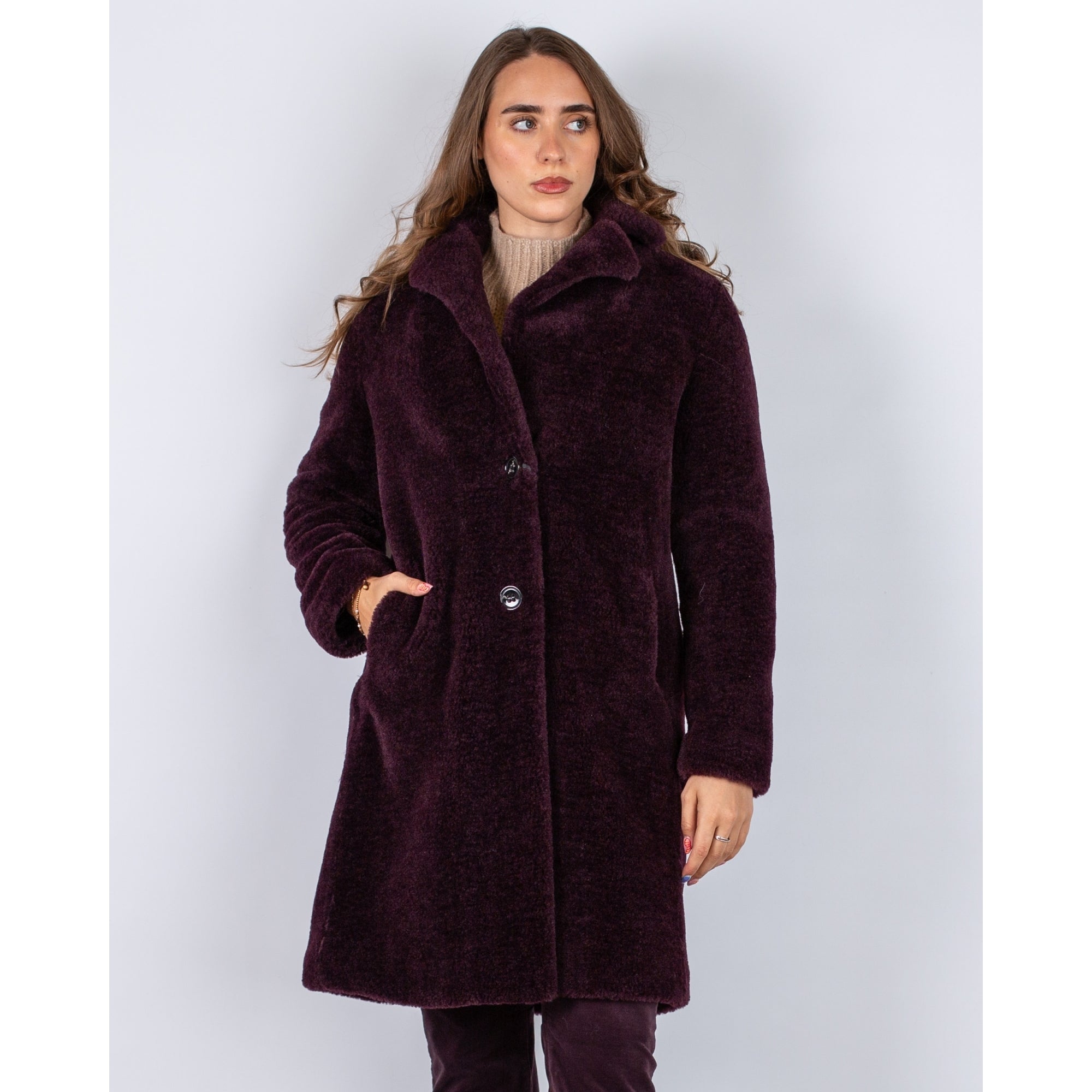 Luisa Cerano Supersoft Teddy Long Line Coat Aubergine