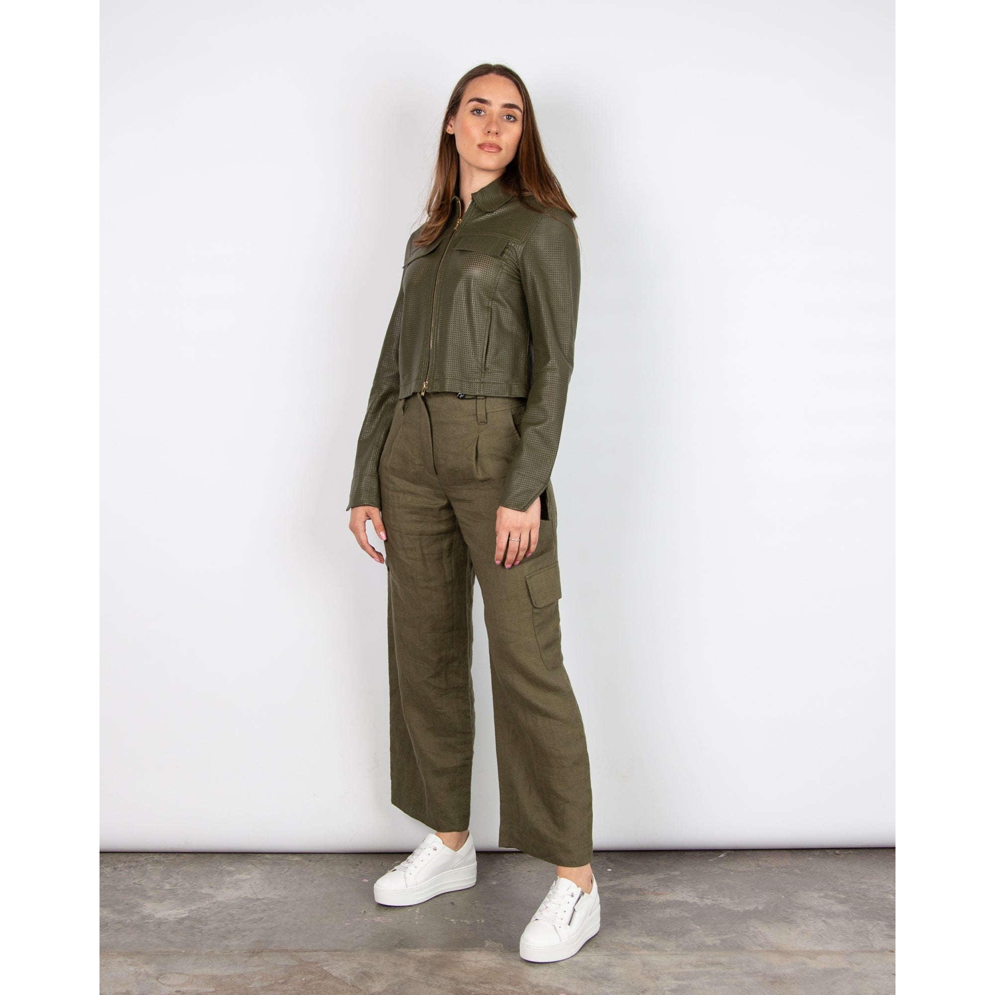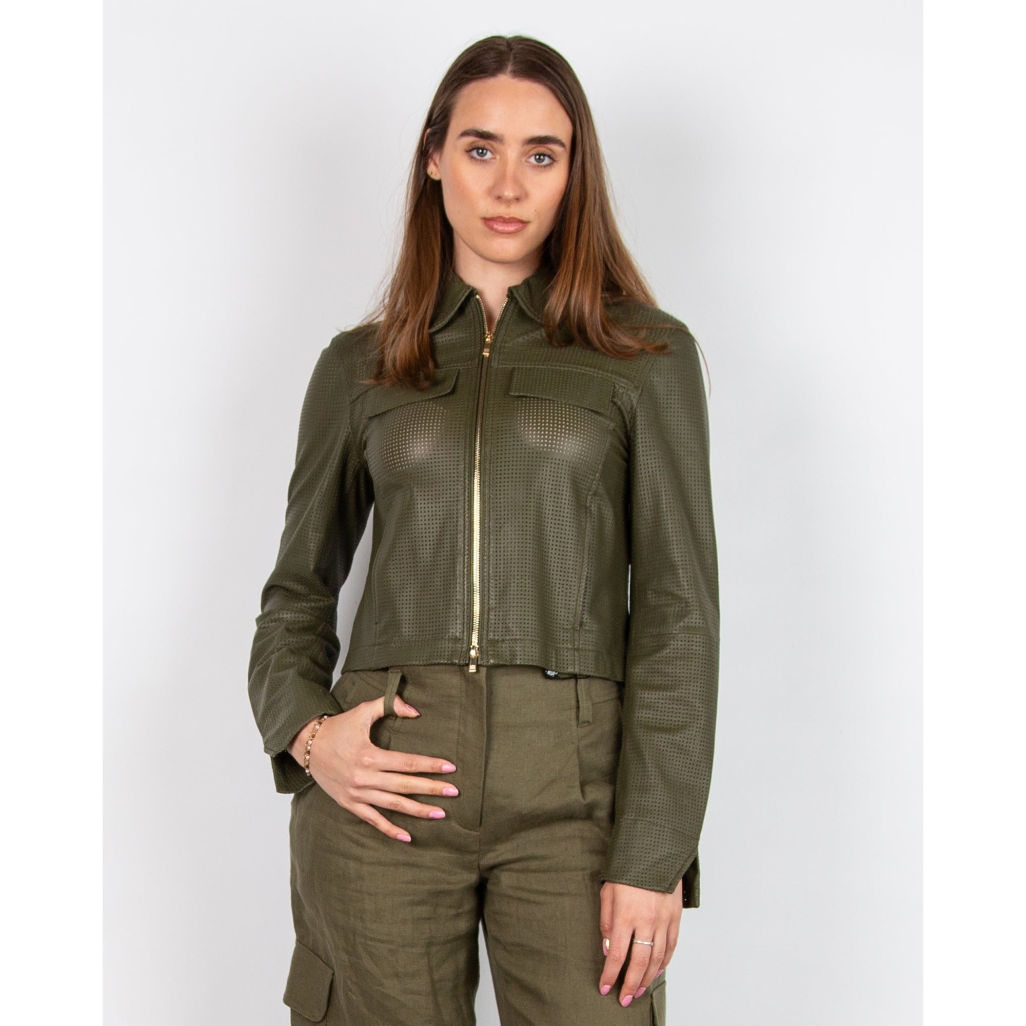 Riani Perforated Leather Short Zip Jacket Khaki 549