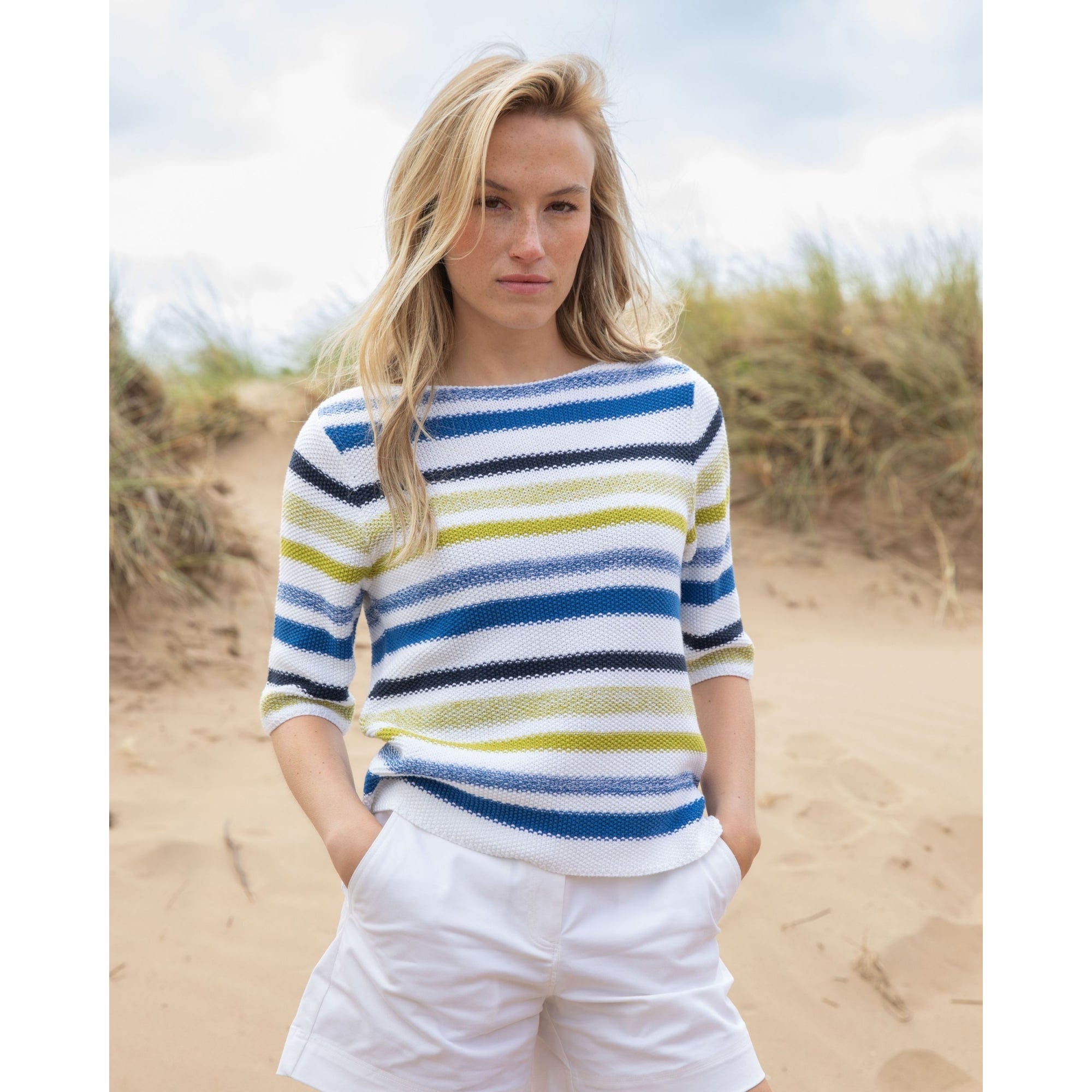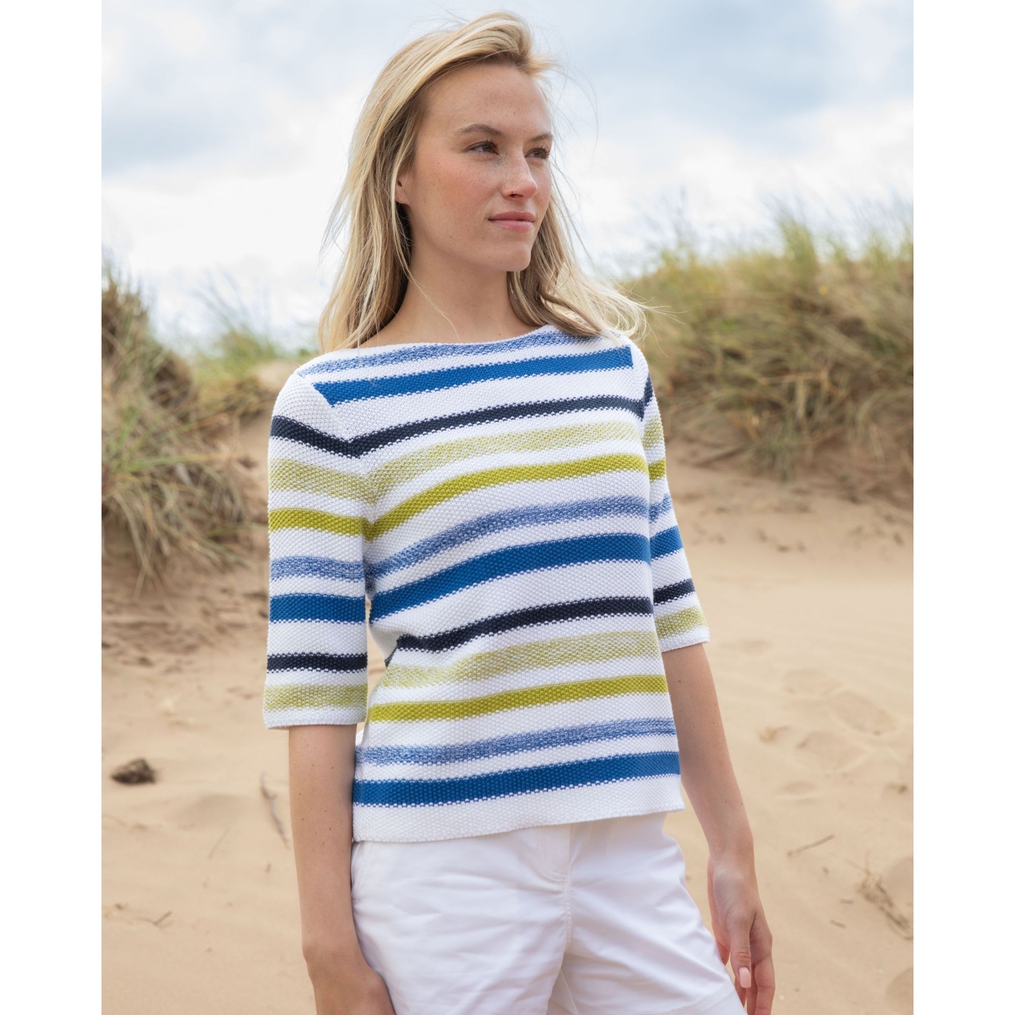 Marble Fashions Asymmetric Stripe Fine Knit Jumper White/cobalt 227