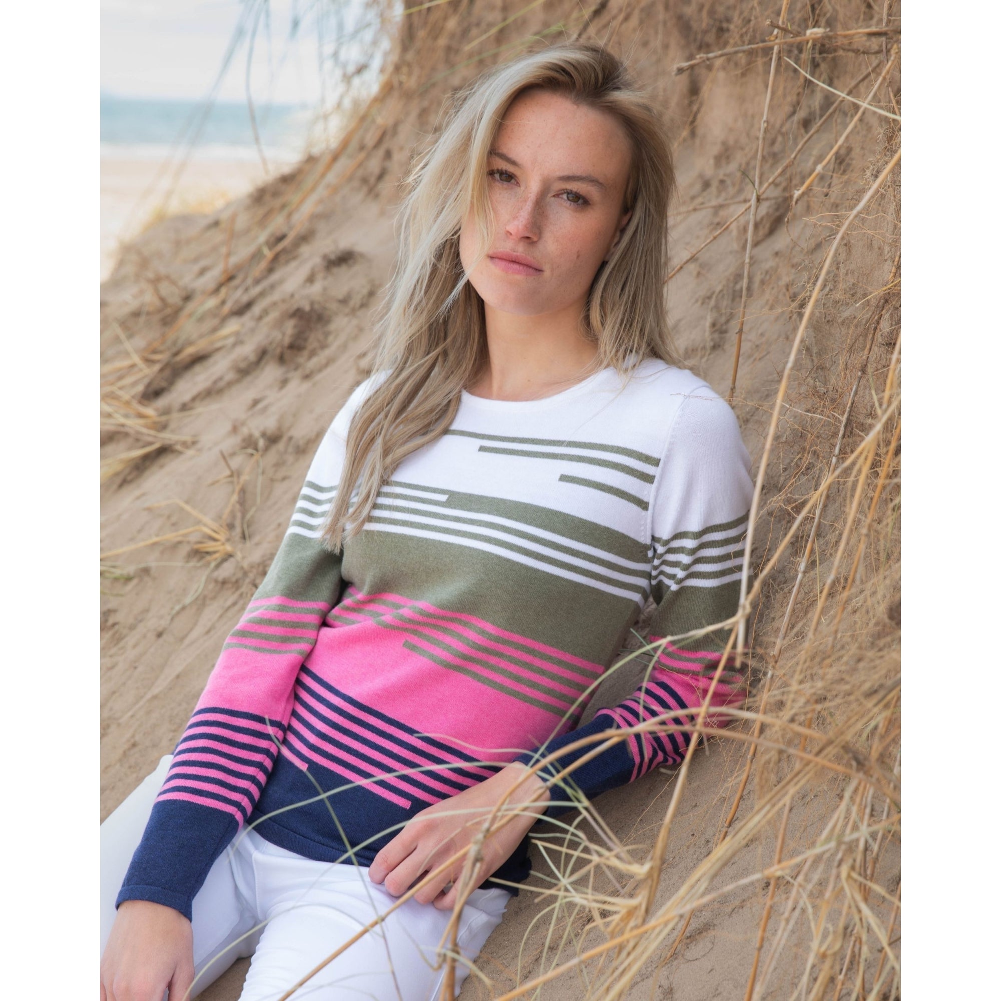 Marble Fashions Stripe Long Sleeve Knit Jumper Khaki/navy/pink 123