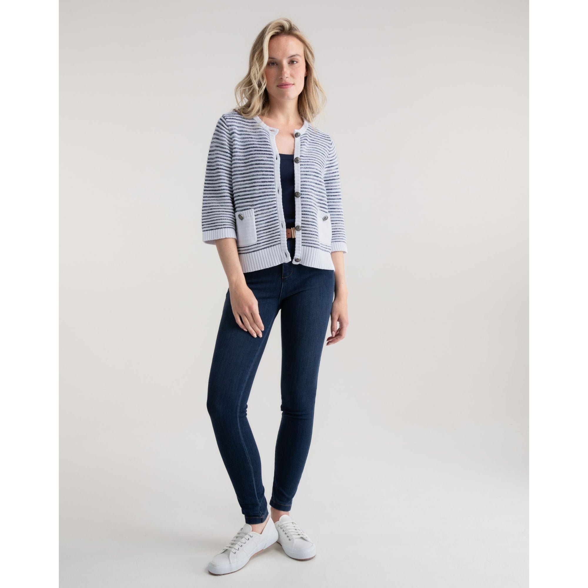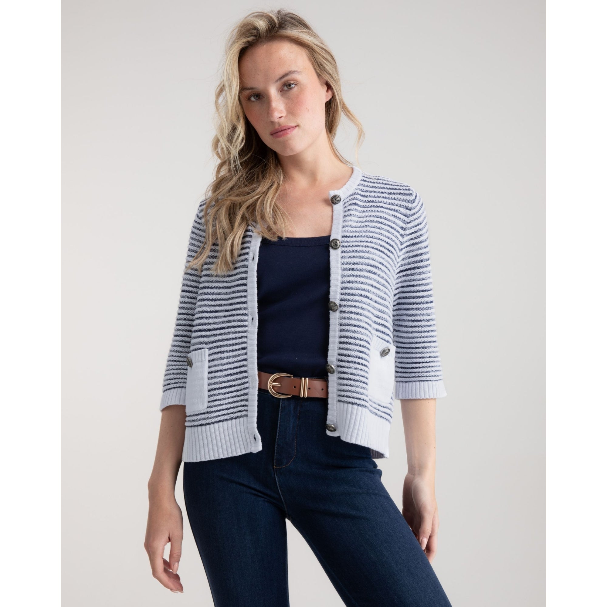 Marble Fashions Stripe Rib Knit Patch Pocket Cardigan White 102