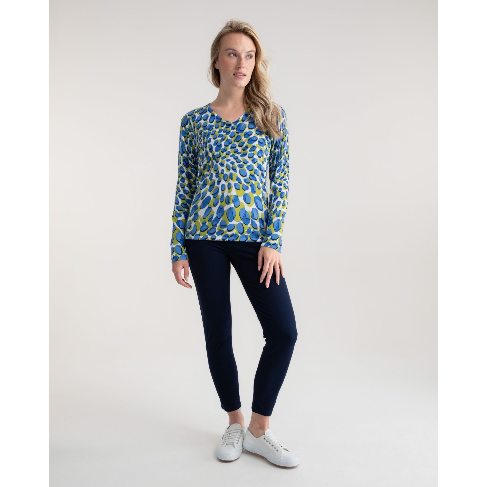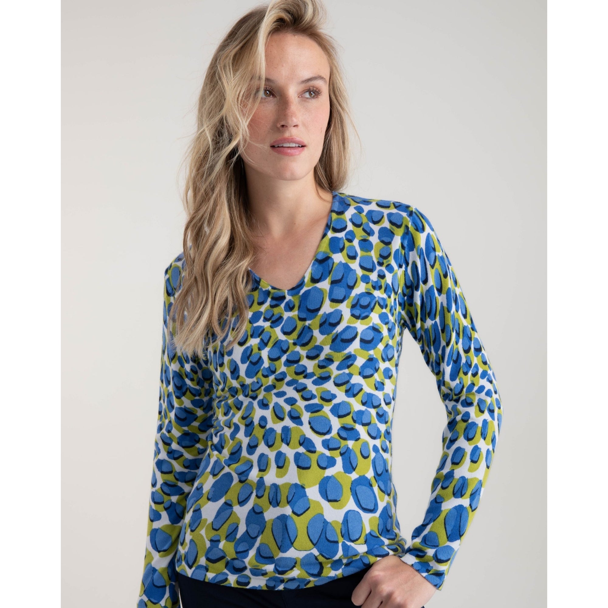 Marble Fashions V Neck Pebble Print Fine Knit Jumper Cobalt/lime 153