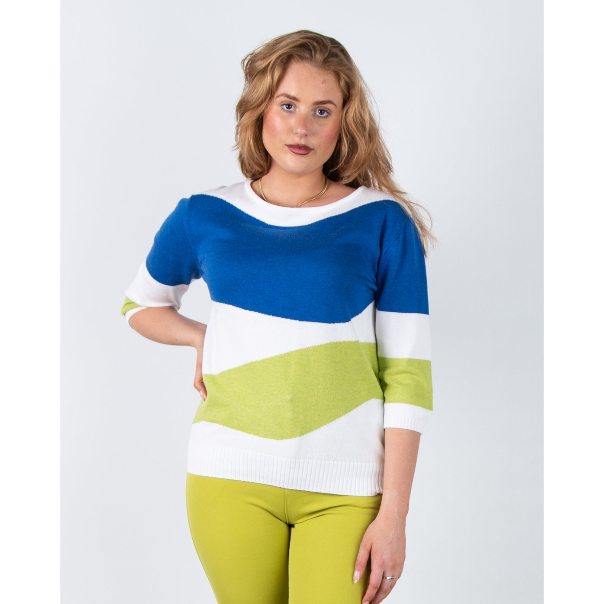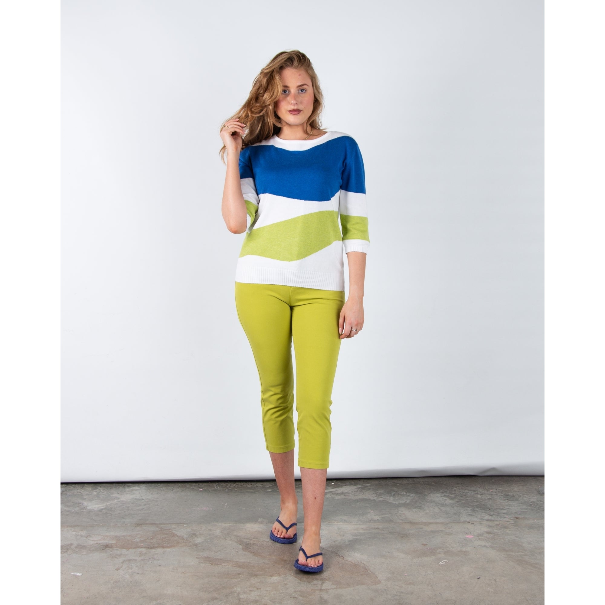 Marble Fashions Waffle Knit Stripe Jumper With 3/4 Sleeve Lime/blue 153