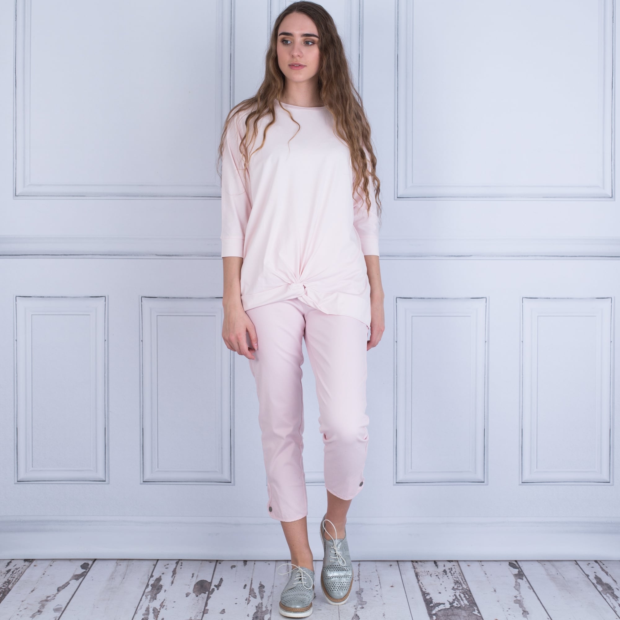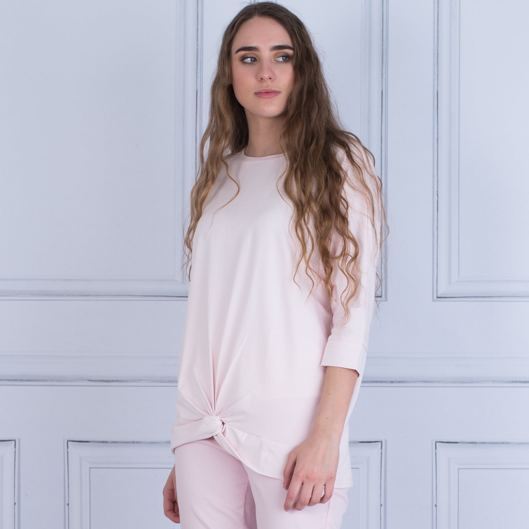 Masai Doritta Round Neck Bat Wing Knotted Front Top Baby Pink