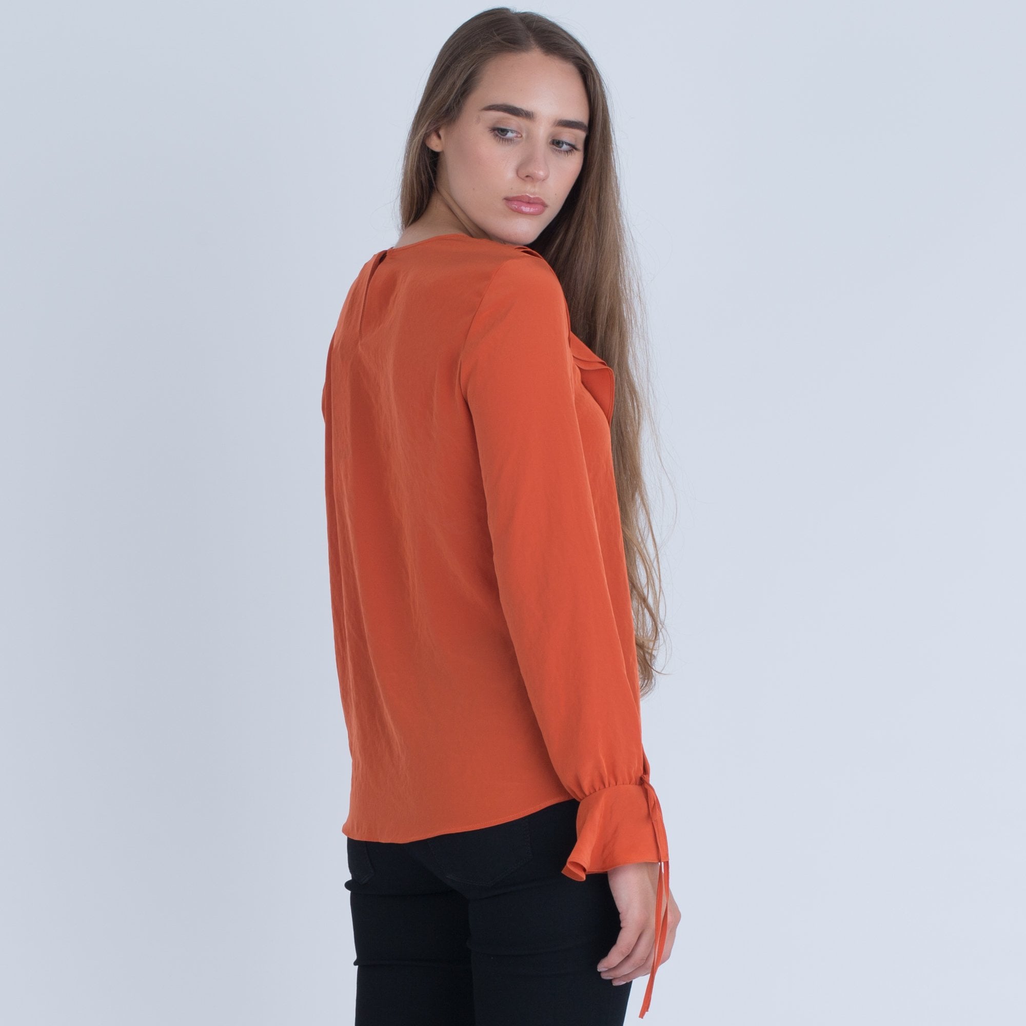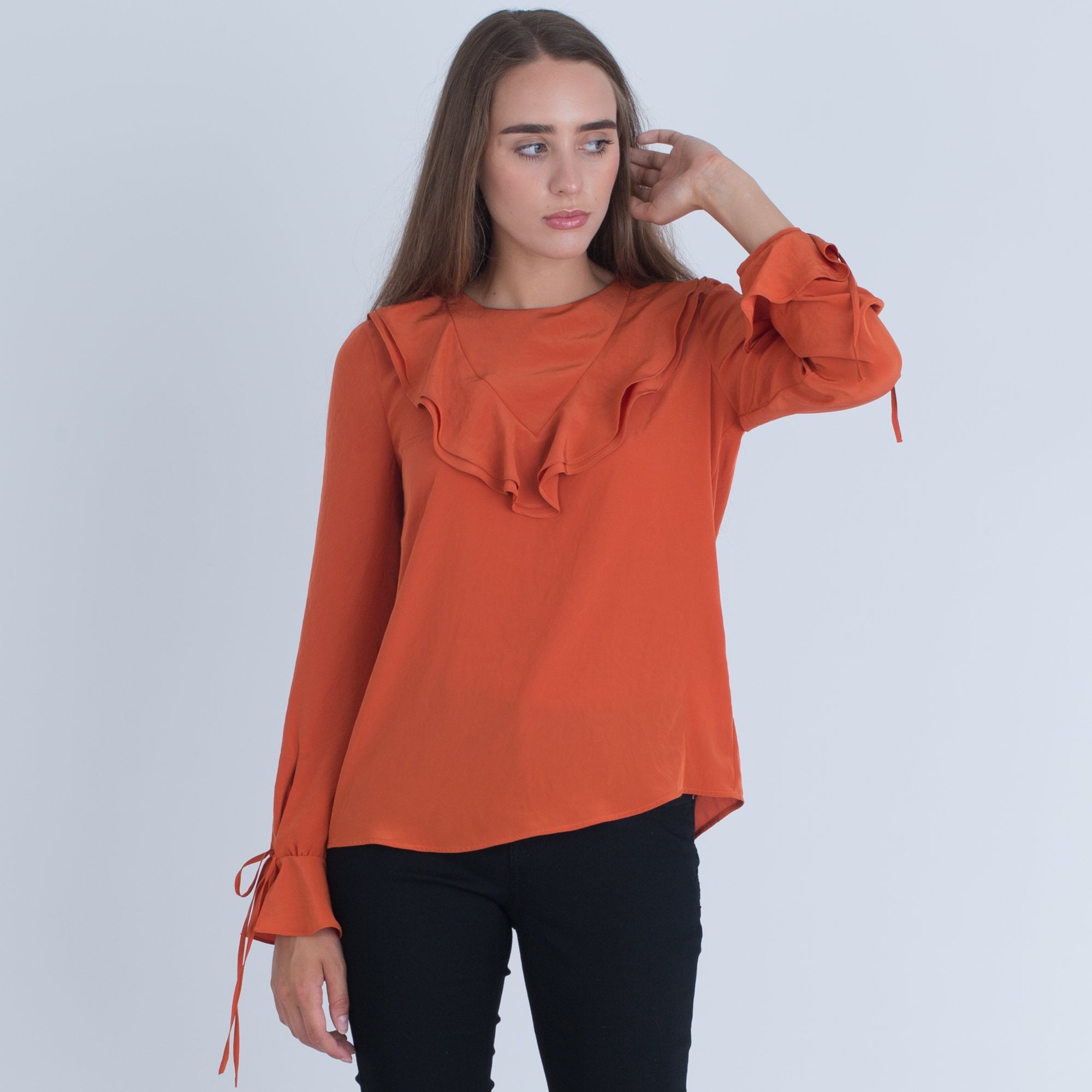 Luisa Cerano Viscose Blouse With Frill Front And Tie Sleeve Orange