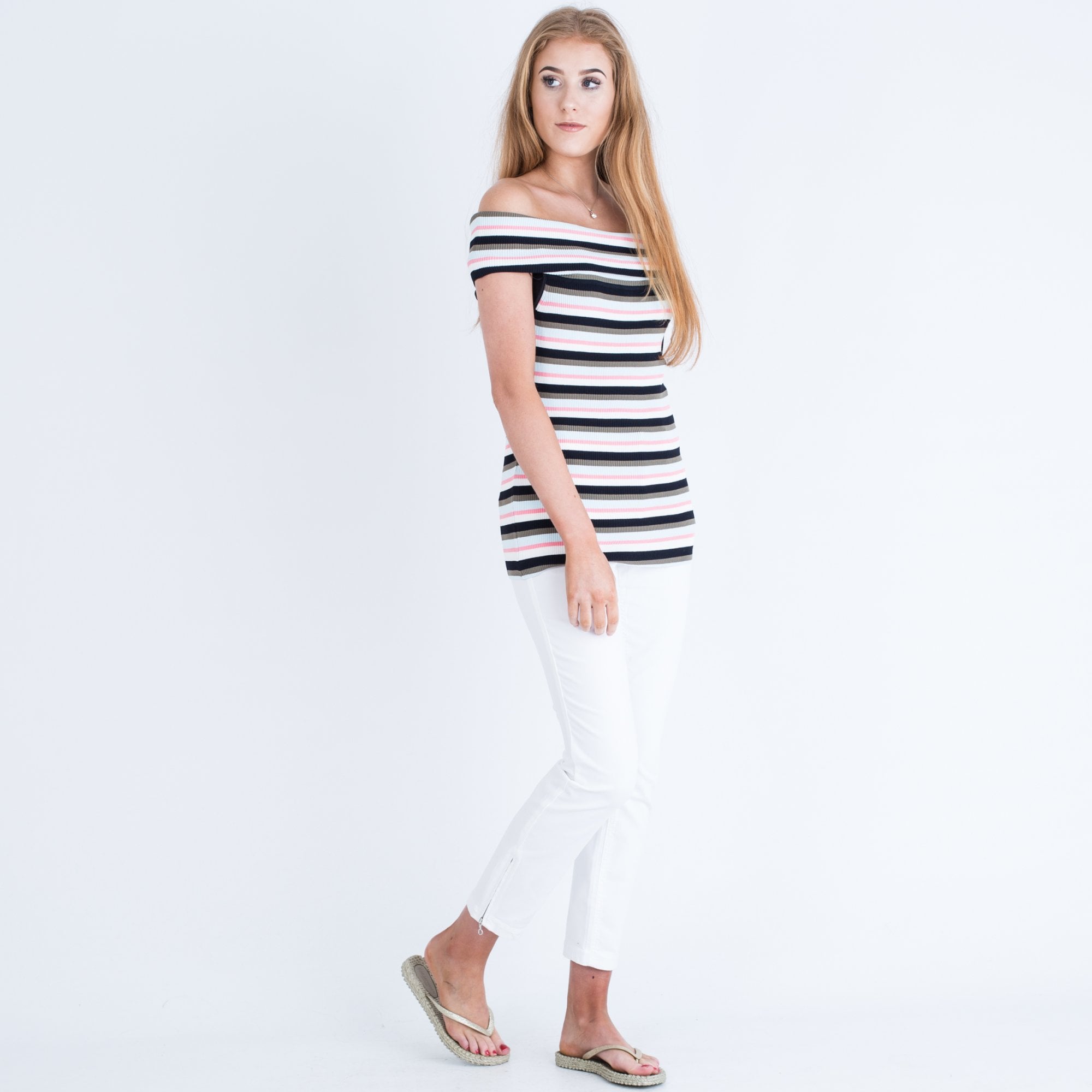 Marc Cain Stripe Ribbed Bardot Top Multi