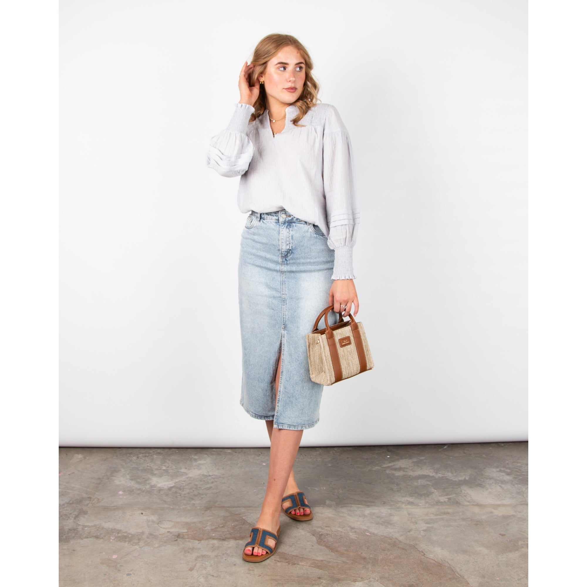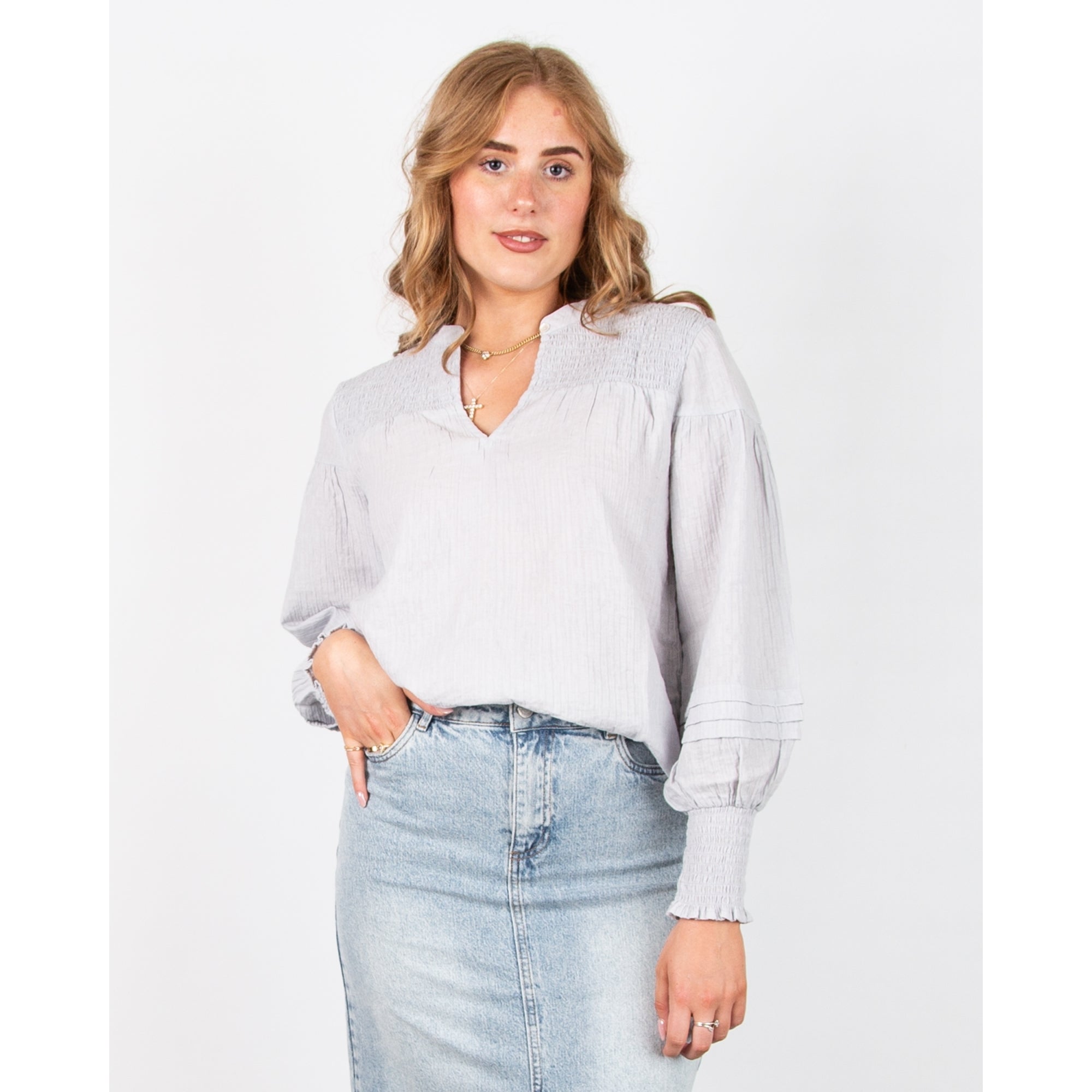 Part Two Cafias Smock Top And Cuff Crinkle Blouse Dusty Blue