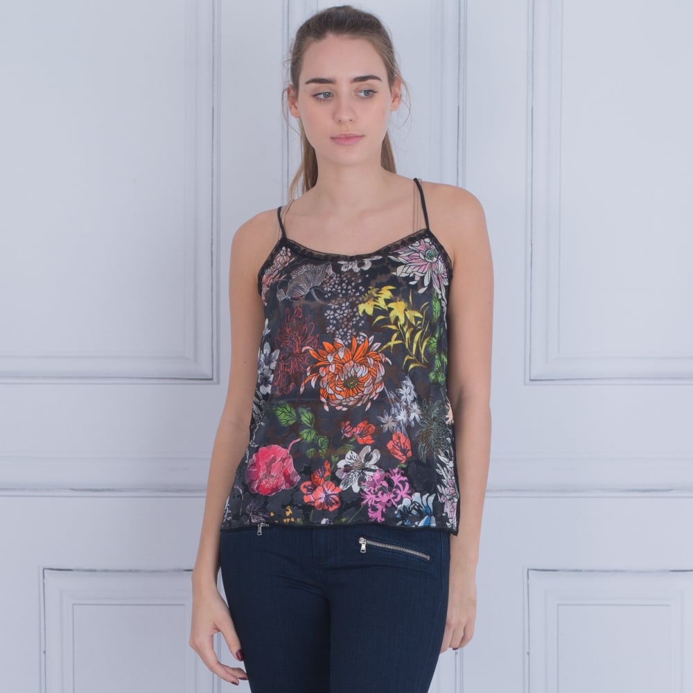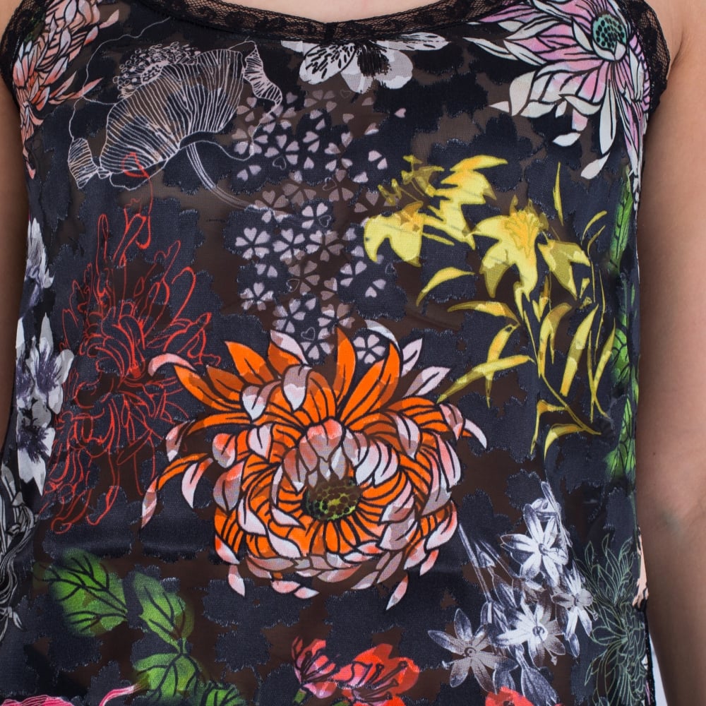 Marc Cain Spaghetti Strap Floral Vest Top Black Multi