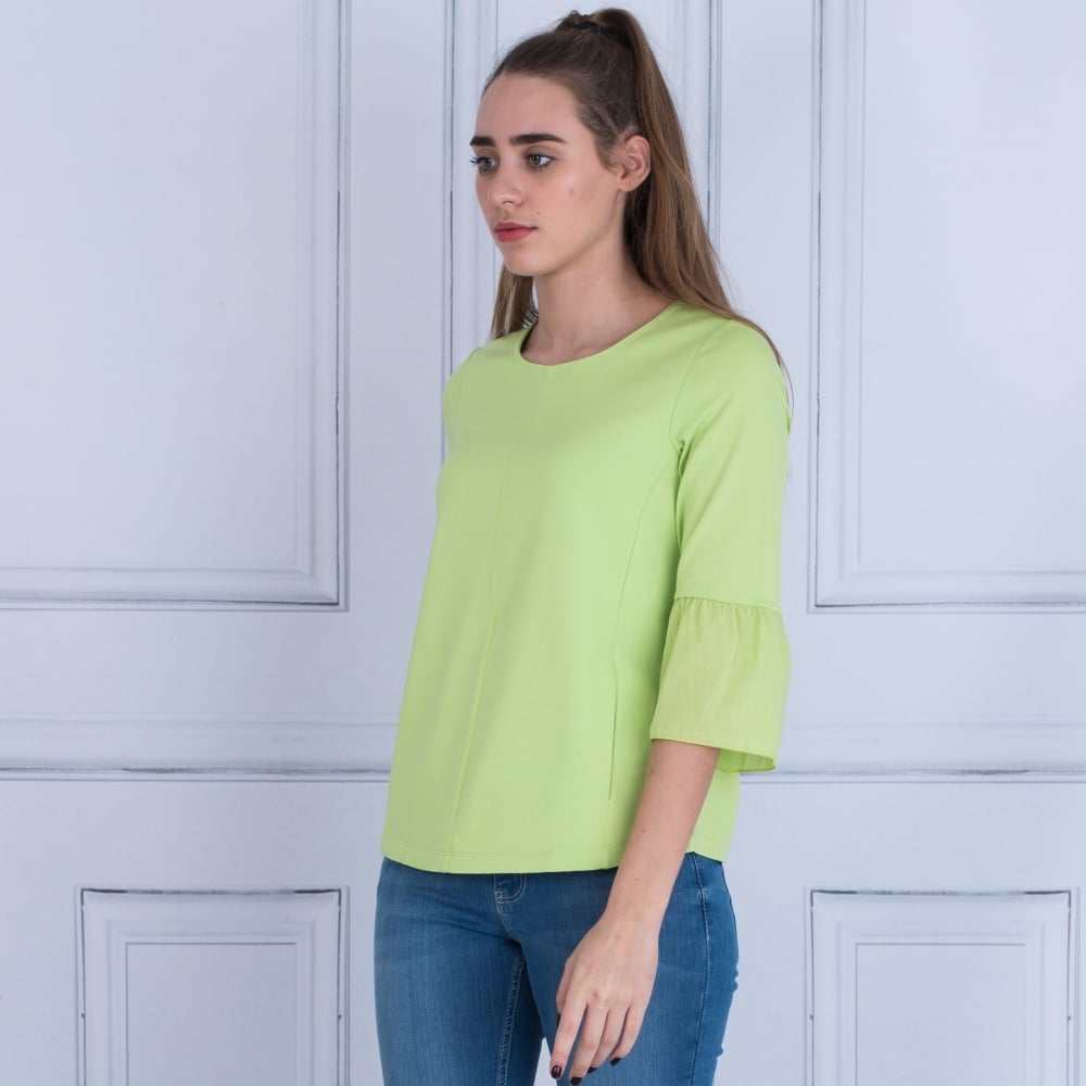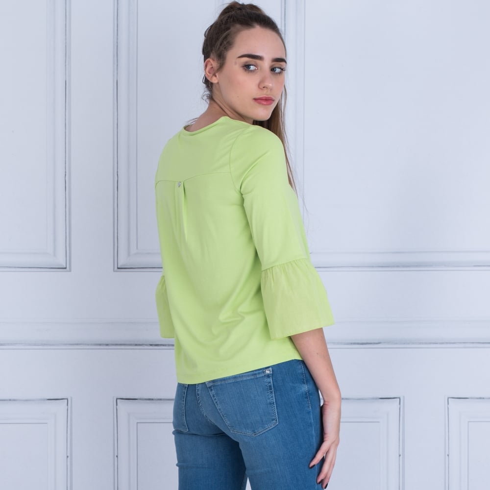 Riani Round Neck Pocket Front Peplum Sleeve Top Green