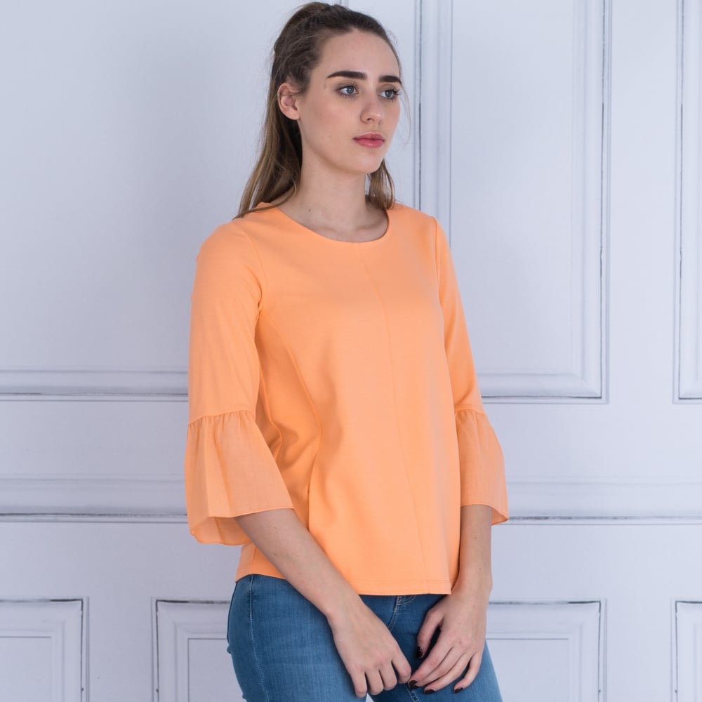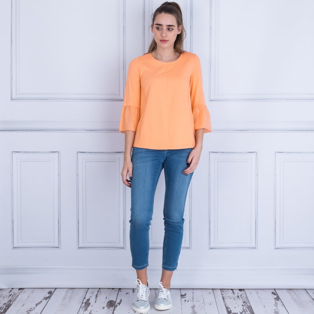 Round Neck Pocket Front Peplum Sleeve Top In Orange