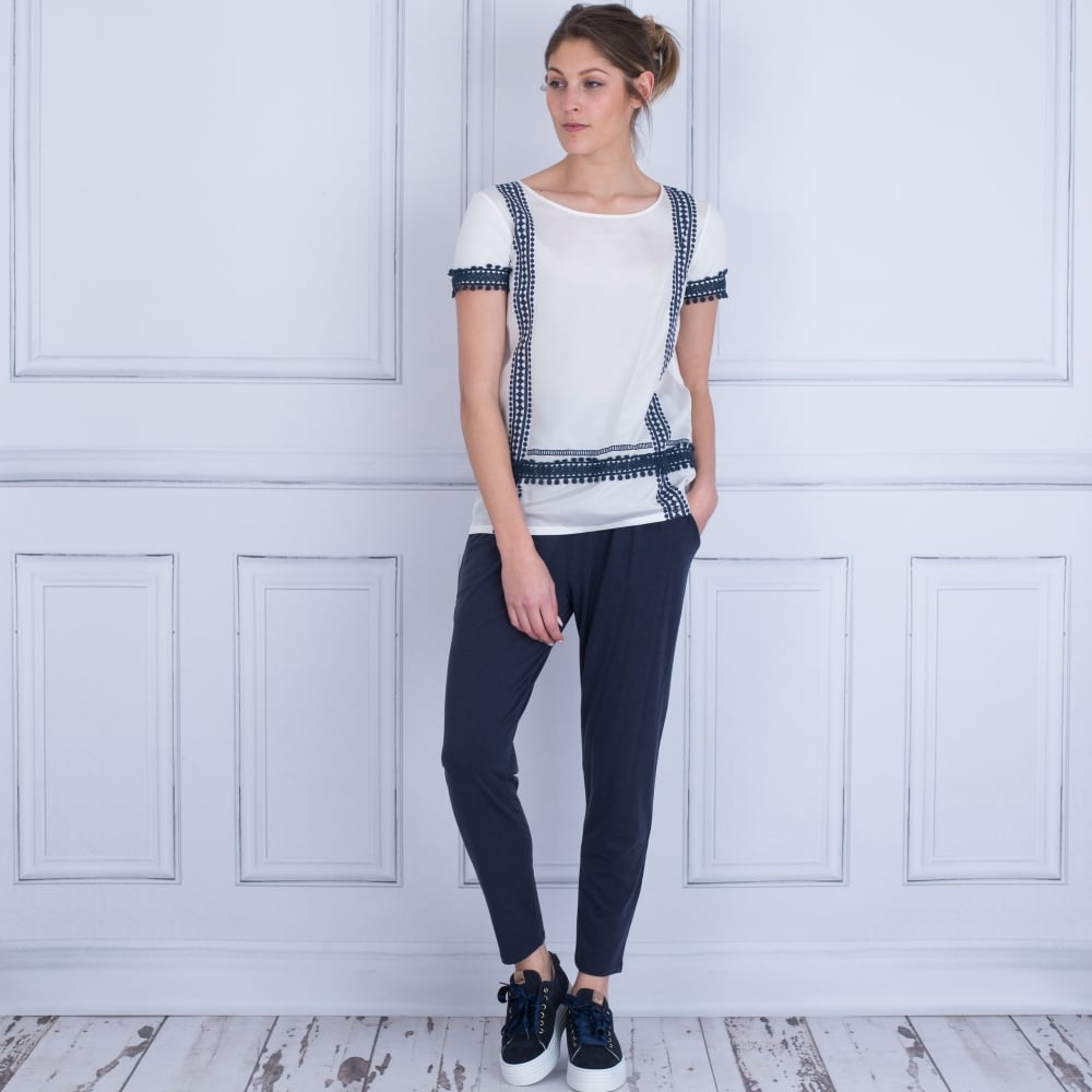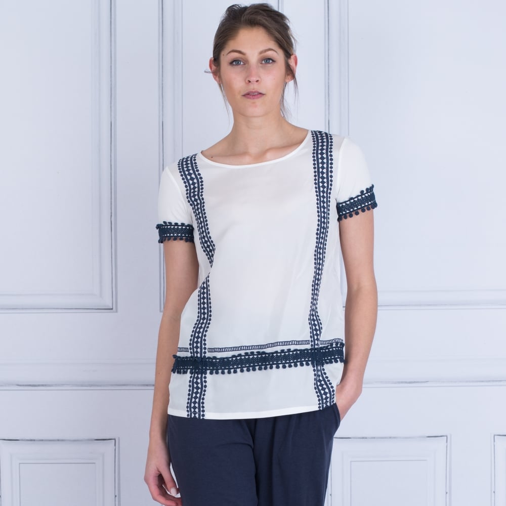 Weekend By Maxmara Moda Embroidered Bobble Trim Top White