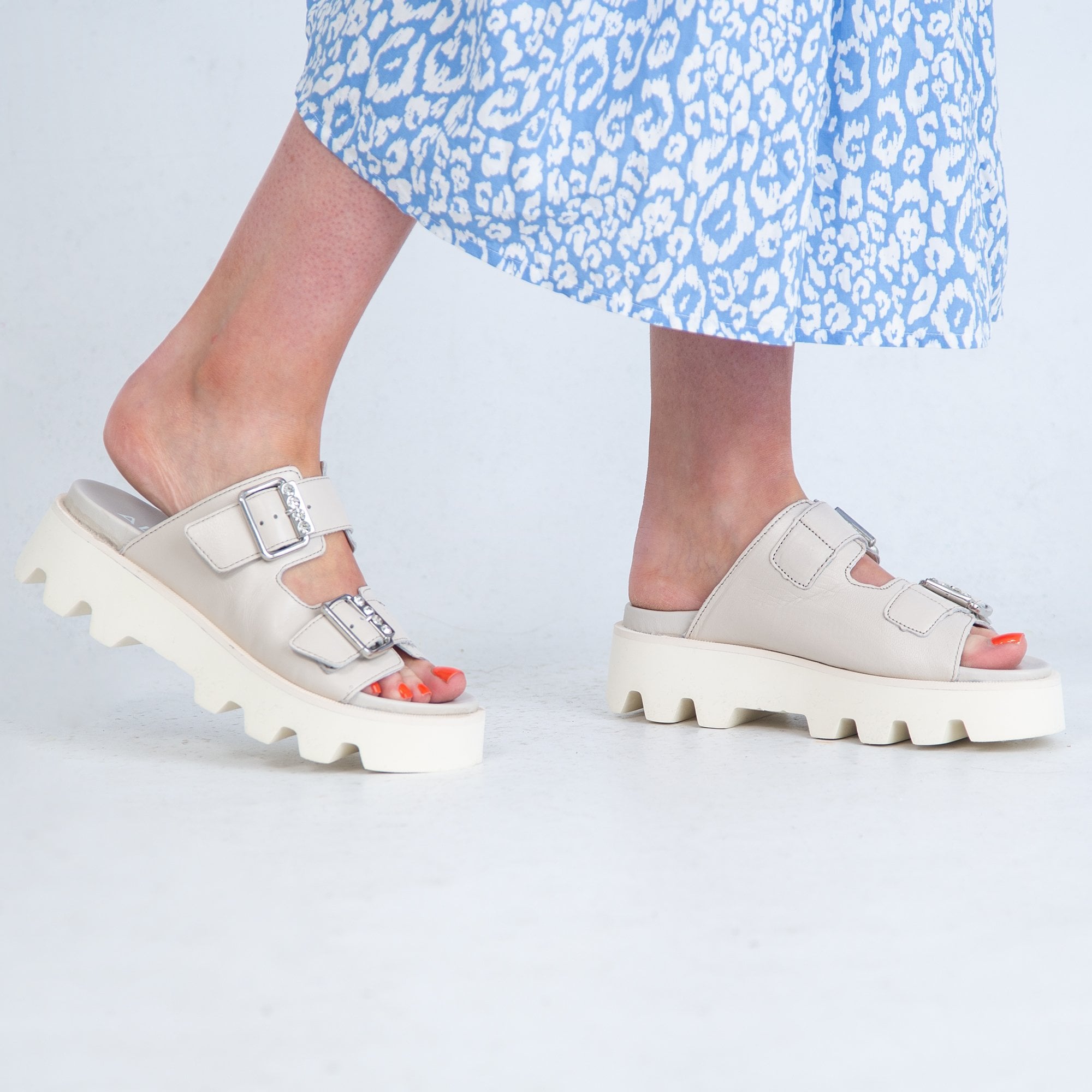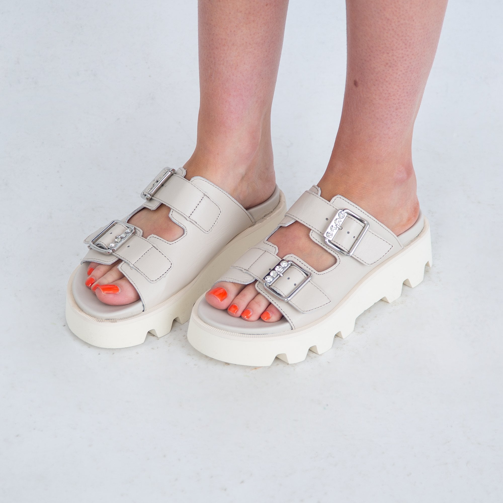 Alpe Leather Arizona Sandal With Diamante Buckles Off White