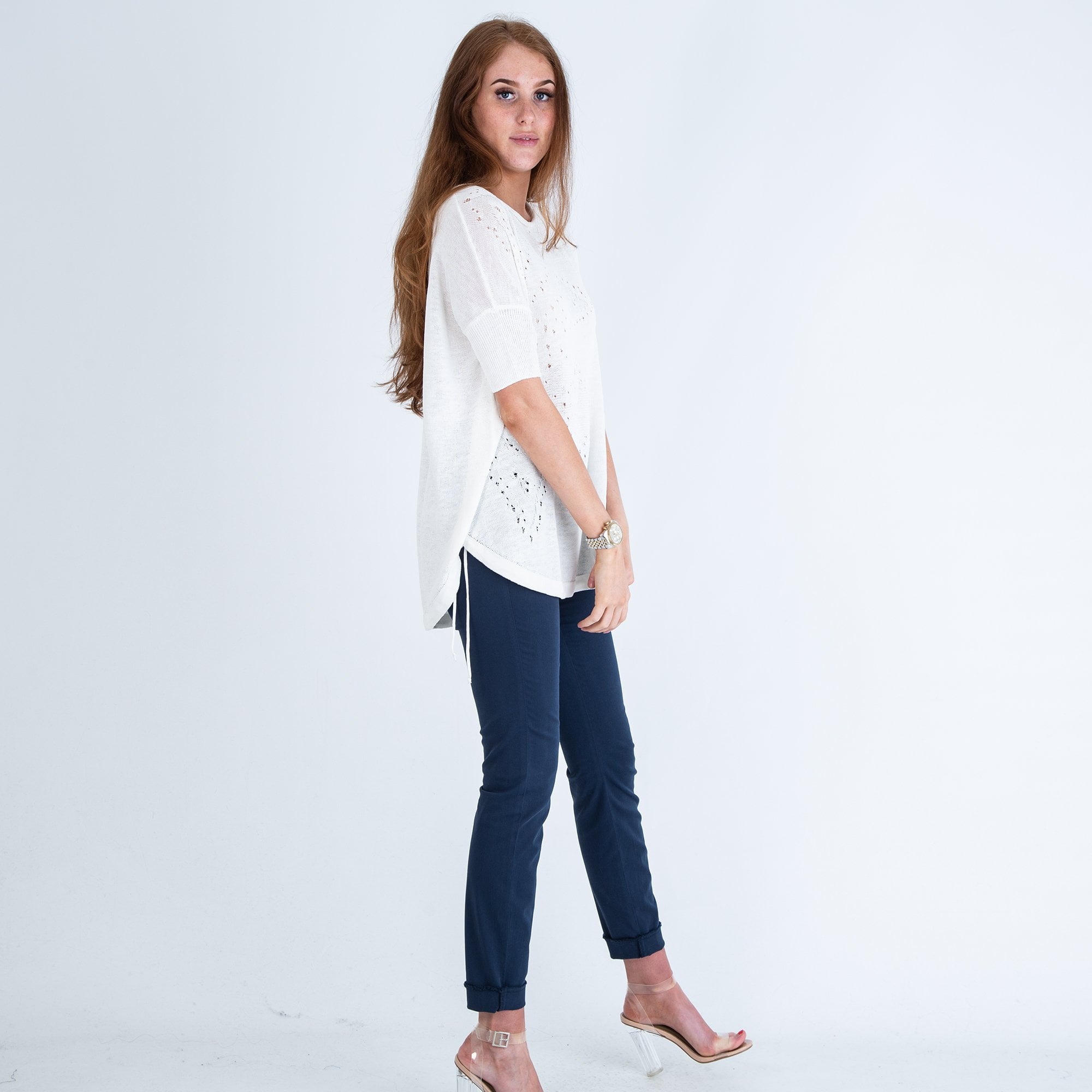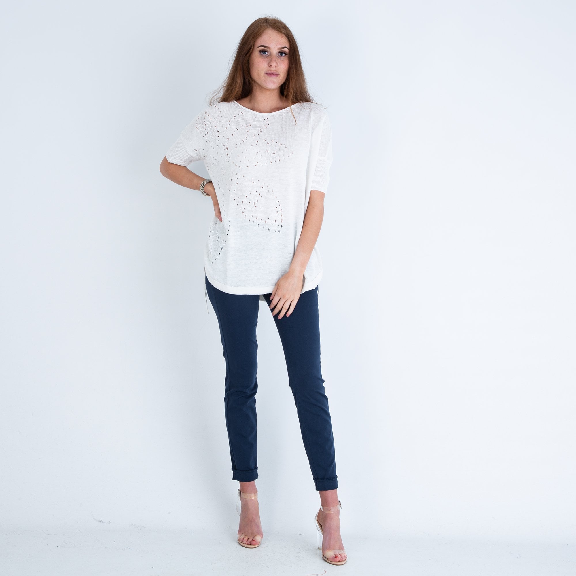 Sarah Pacini Round Neck Loose Knit Detail Jumper Off White