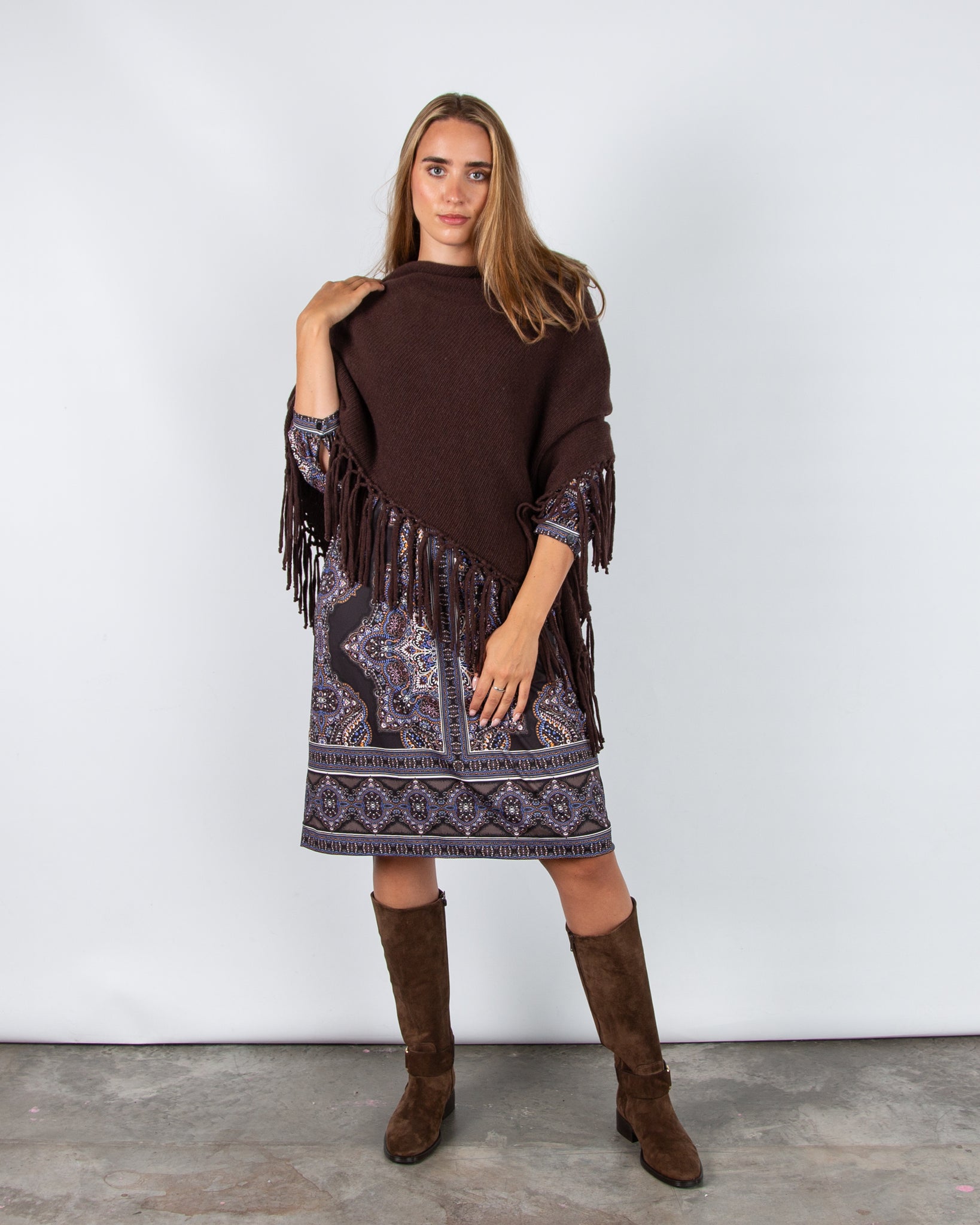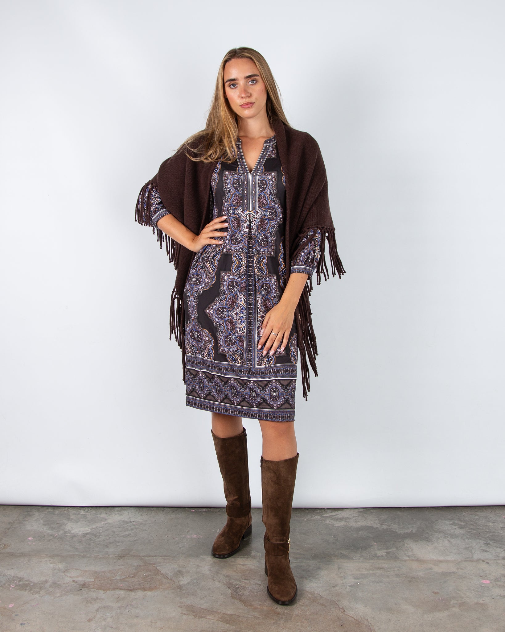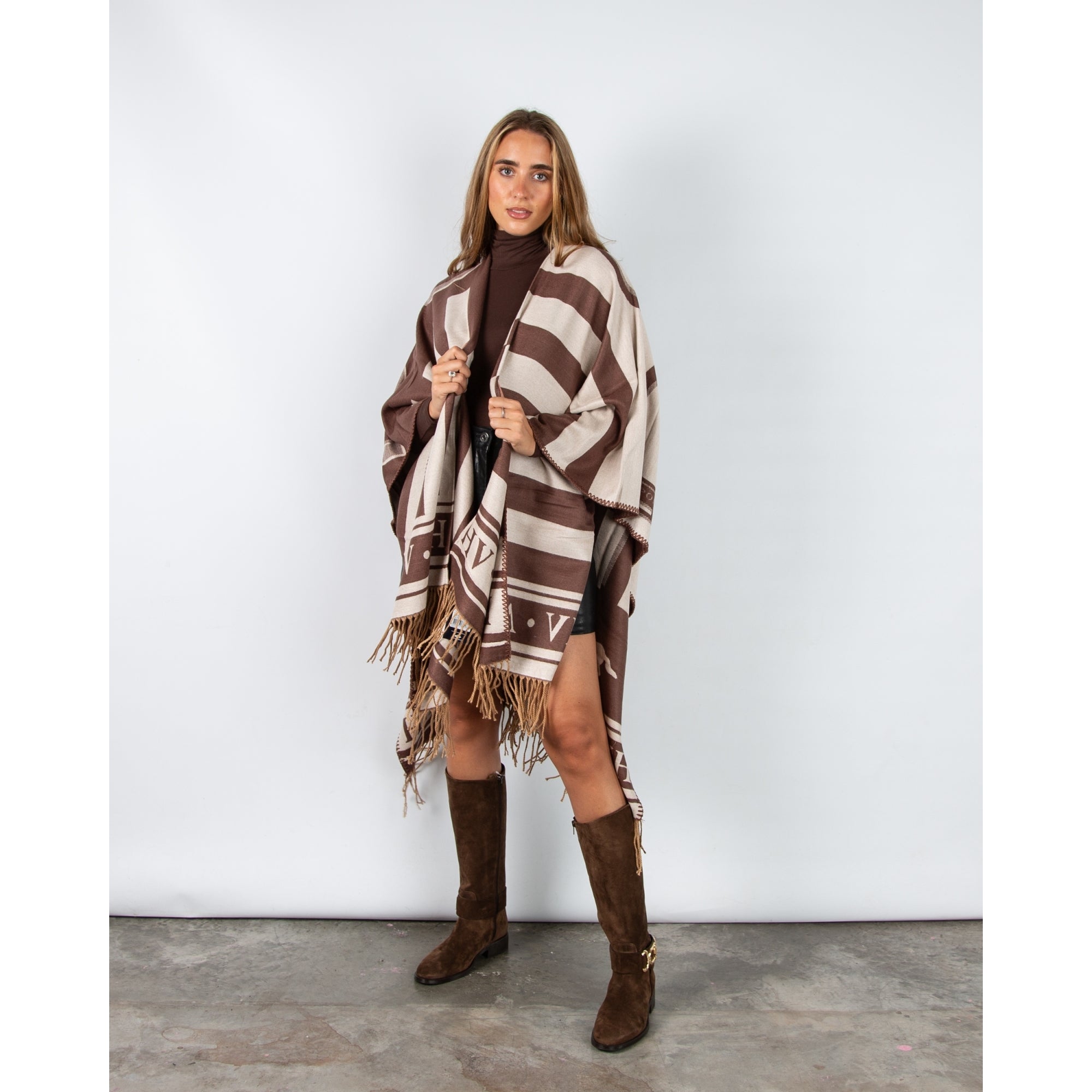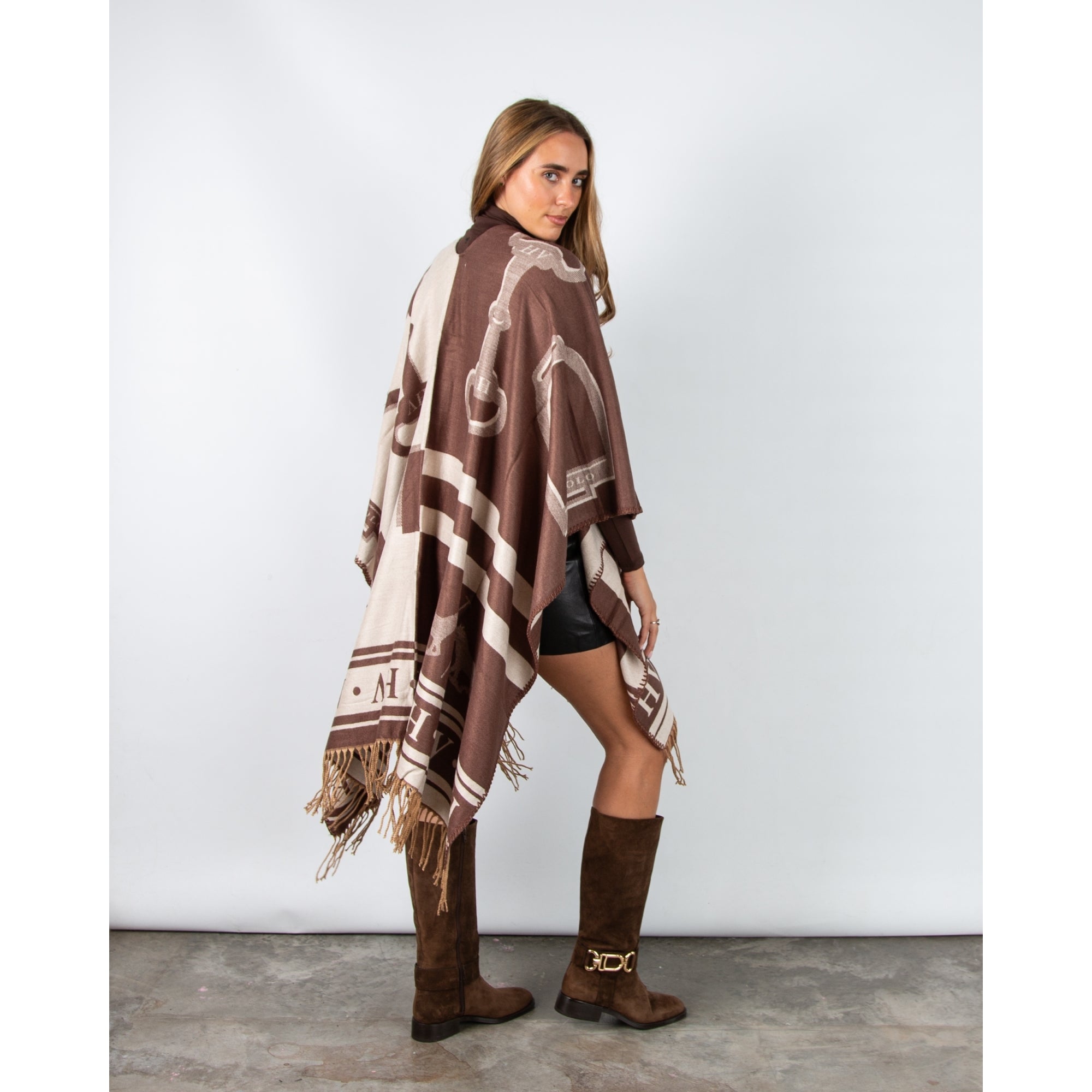 Herzens Angelegenheit Tassel Trim Knit Shawl Caramel/Light Blue